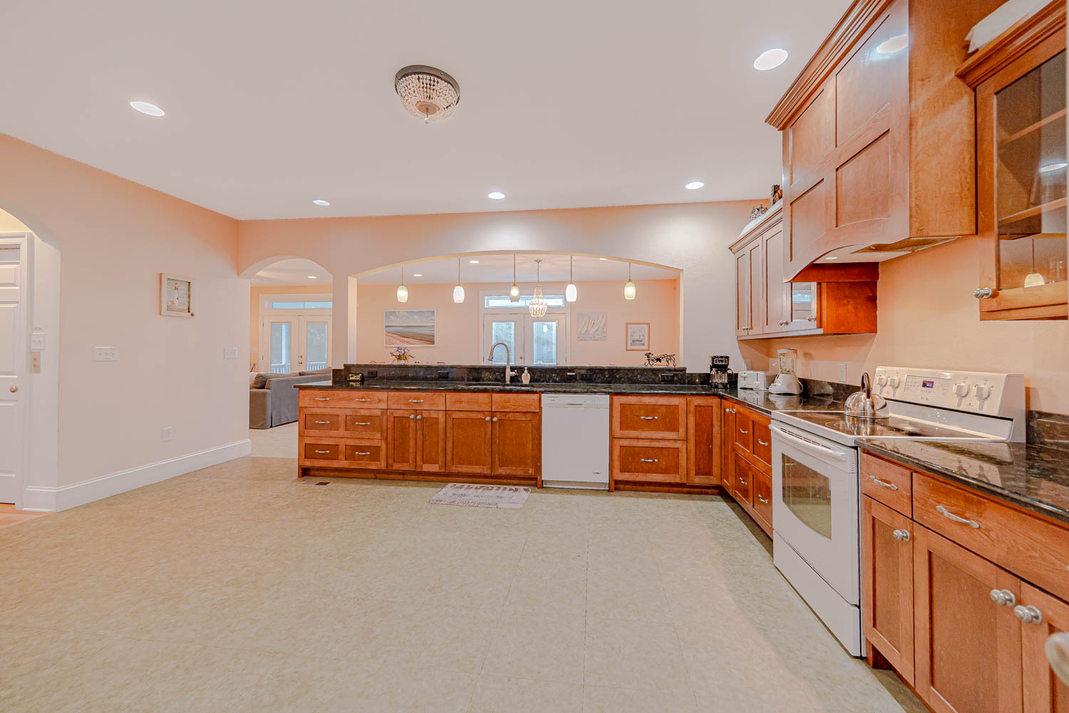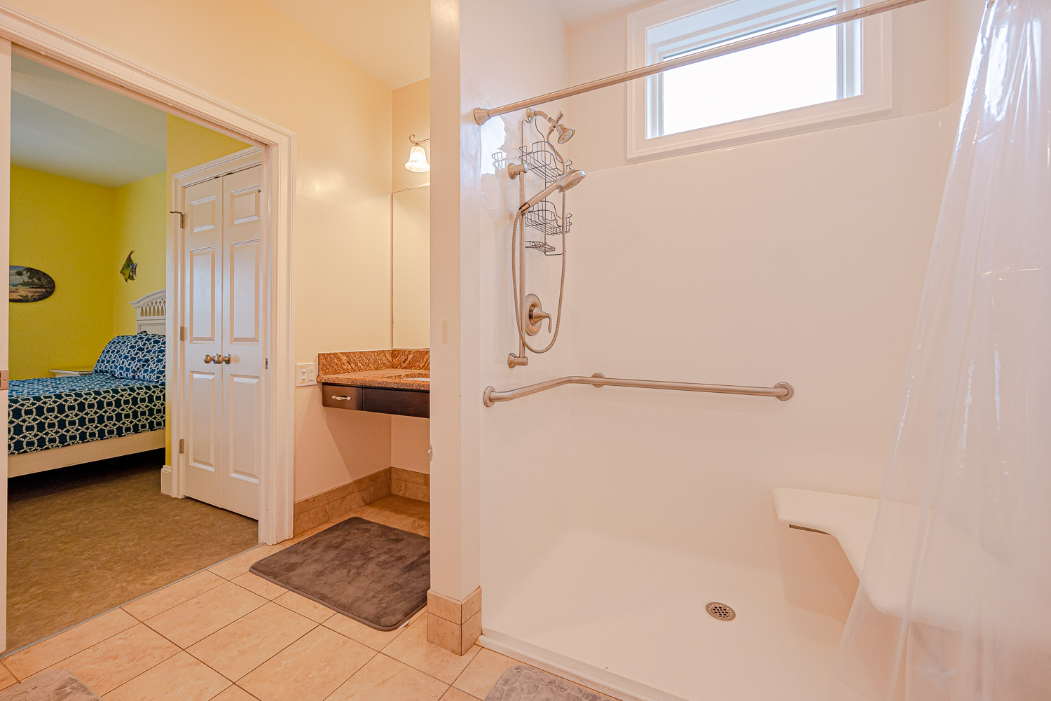 Mid Level: Entry, Living Area, 60 Inch TV, Queen Sleep Sofa, Gas Fireplace, Beautiful Kitchen, Breakfast Bar Seating for Six (6), Dining Area Seating for Eight (8), Laundry Area, Office, Half Bath, Handicap Accessible Private Suite w/Queen, TV, & Full Bath w/Roll-In Shower & Hand Rails, Access w/Ramp to Screen Porch w/Table & Chairs & Sun Deck.