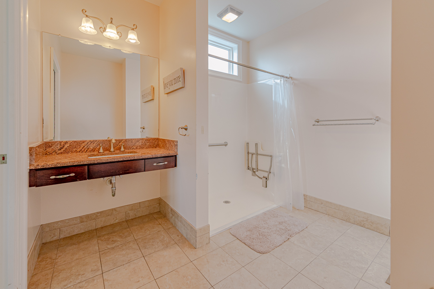 Mid Level: Entry, Living Area, 60 Inch TV, Queen Sleep Sofa, Gas Fireplace, Beautiful Kitchen, Breakfast Bar Seating for Six (6), Dining Area Seating for Eight (8), Laundry Area, Office, Half Bath, Handicap Accessible Private Suite w/Queen, TV, & Full Bath w/Roll-In Shower & Hand Rails, Access w/Ramp to Screen Porch w/Table & Chairs & Sun Deck.
