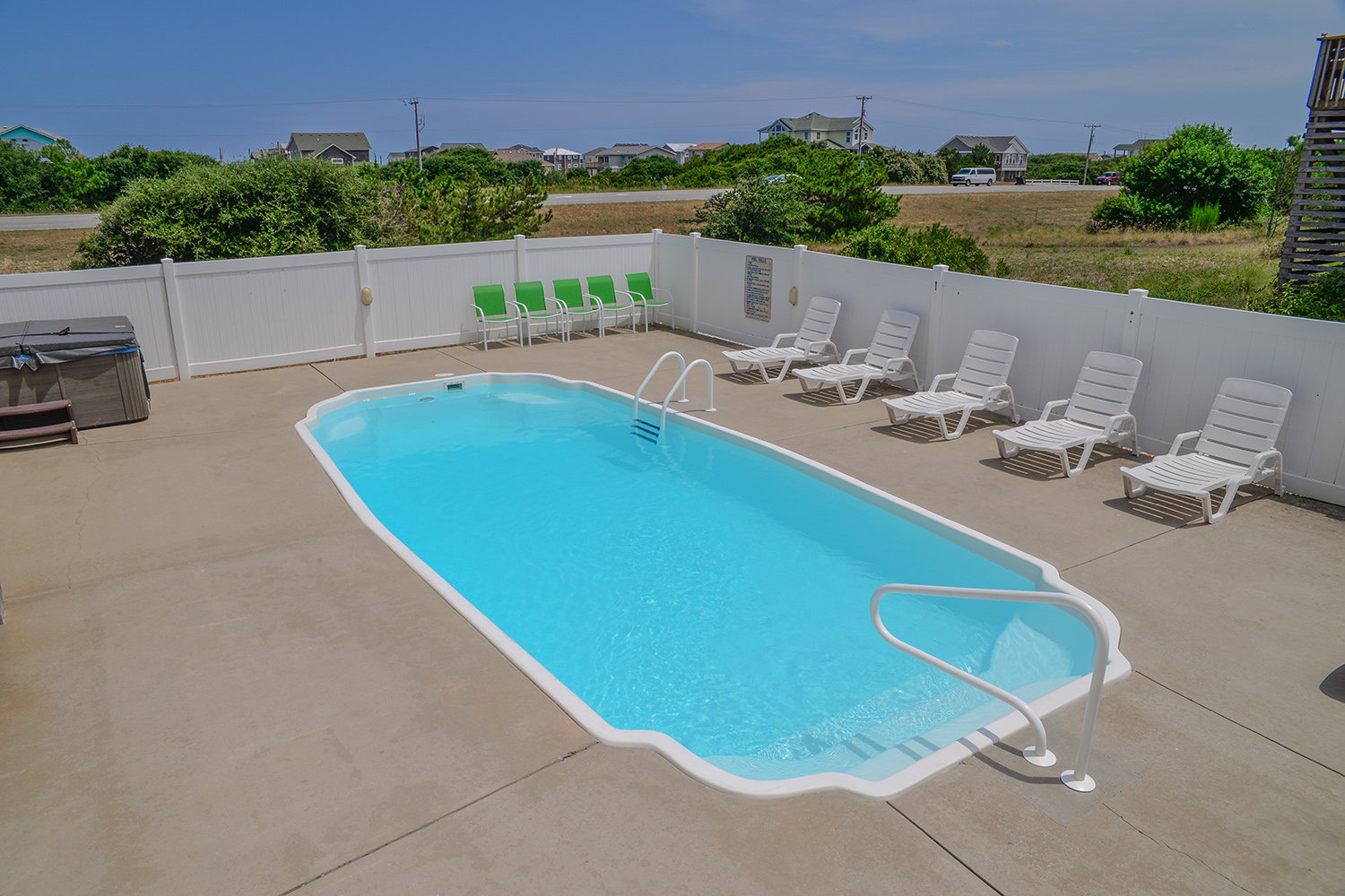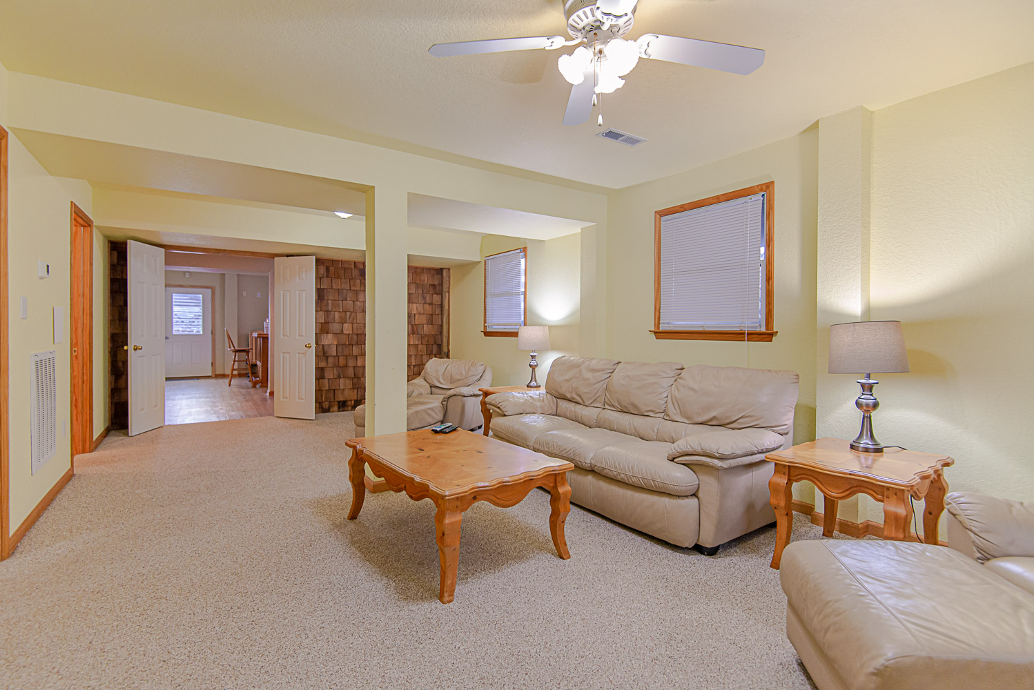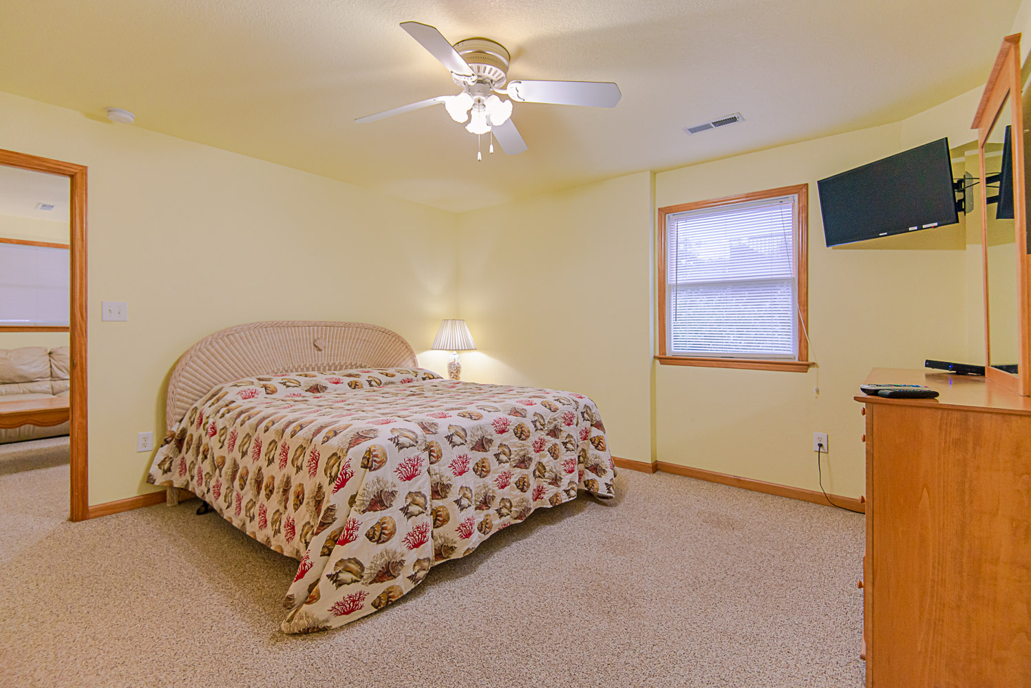 Ground Level: Parking for 4 Cars, Sports Bar/Rec. Room w/Pool Table, TV, Wet Bar, Full Size Refrigerator, Half Bath, Large Den w/TV, Bedroom w/King, TV, & Full Bath, Access to Patio Area w/Private 12 x 28 Swimming Pool - Open Seasonally , Hot Tub, Enclosed Outside Shower, & Charcoal Grill.