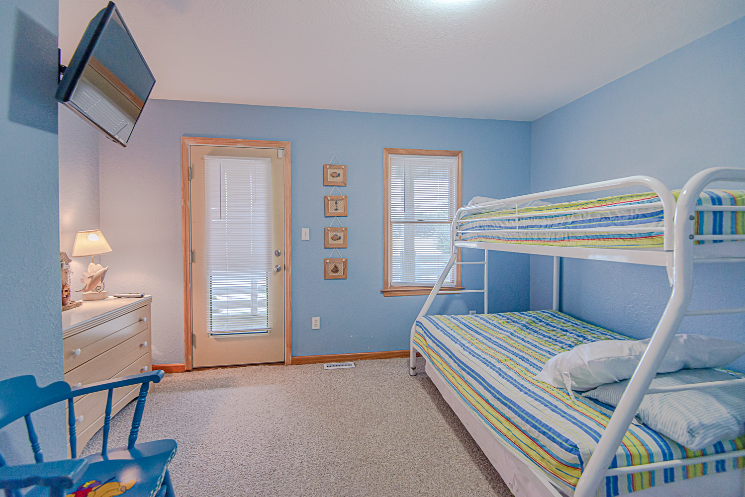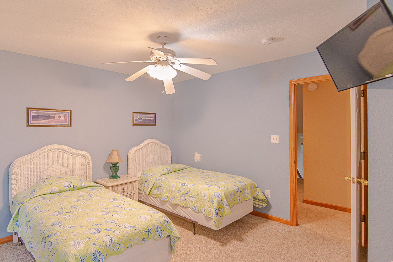 Mid Level: 4 Bedrooms (Private Suite w/King, TV, & Full Bath (Shower Only), Private Suite w/Queen, TV, & Full Bath (Shower Only), 1 w/Duo Bunk w/Trundle & TV, & 1 w/2 Singles & TV), Hall Bath, Laundry Area, 2 Covered Decks, & Ocean & Golf Course Views.