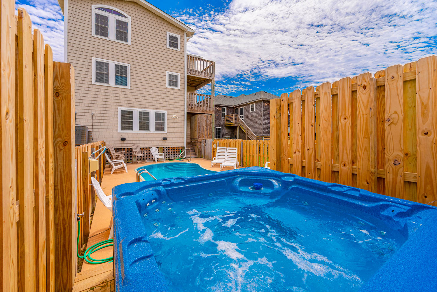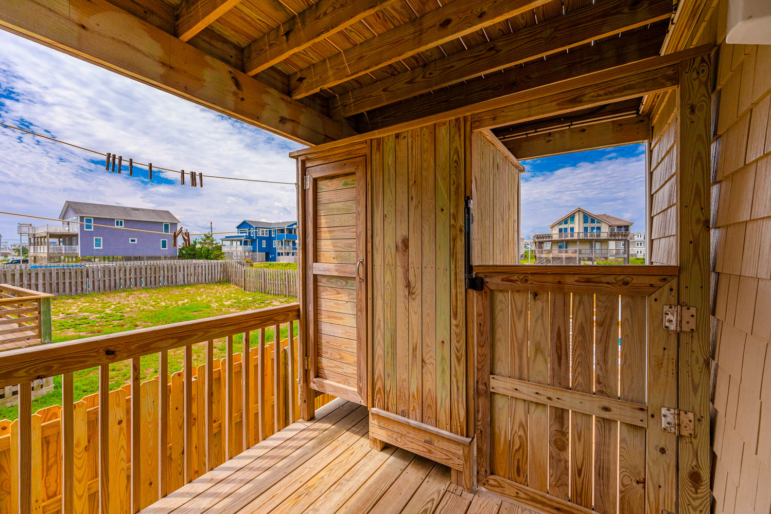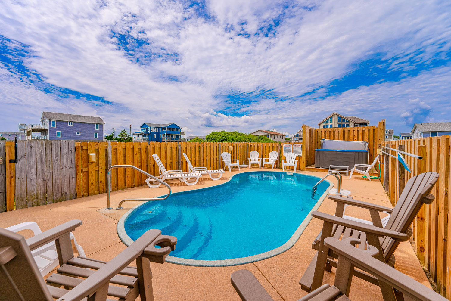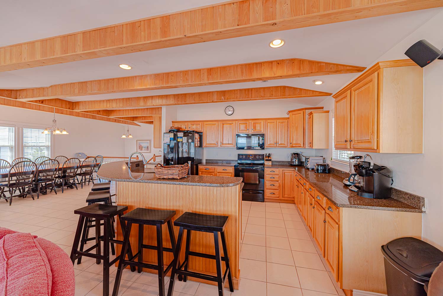 Top Level: Living/Dining/Kitchen Area, Cathedral Ceiling, Smart TV, DVD, Great Ocean Views, Private Suite w/King, TV, Full Bath w/Jacuzzi Tub, Half Bath, Sun Deck w/Furniture, Fantastic Ocean Views, and Sun Deck Overlooking Pool Area.