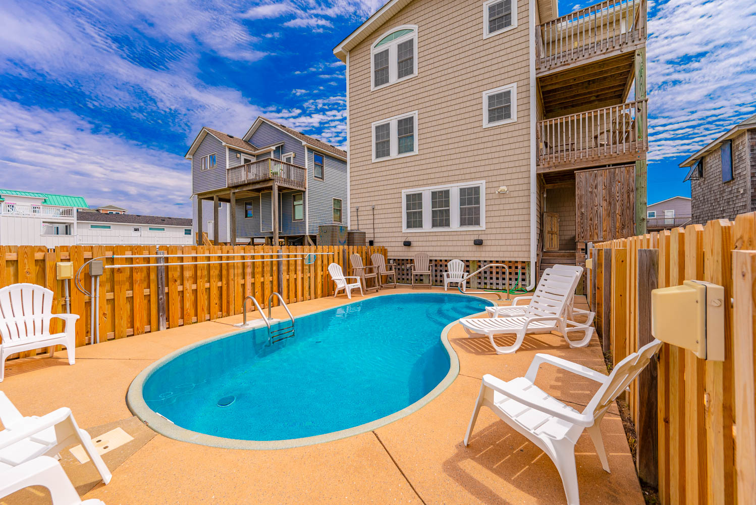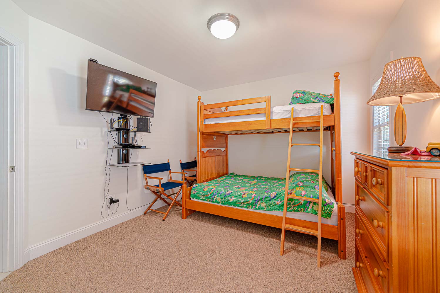 Mid Level: 4 Bedrooms (2 Private Suites w/Queens, TVs, Full Baths; 1 w/Queen, TV; 1 w/Duo Bunk, TV, DVD), Full Bath, Covered Deck w/Furniture, Ocean Views, and Covered Deck w/Furniture Overlooking Pool Area.