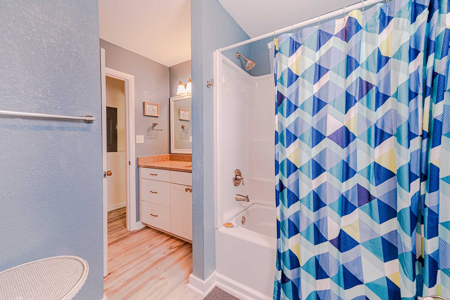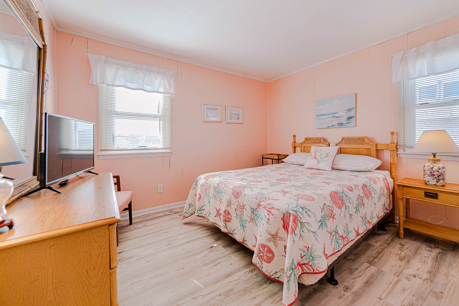 Top Level: Split-Level Design with Steps Up to 2 Bedrooms (2 w/Kings) and Full Hall Bath.