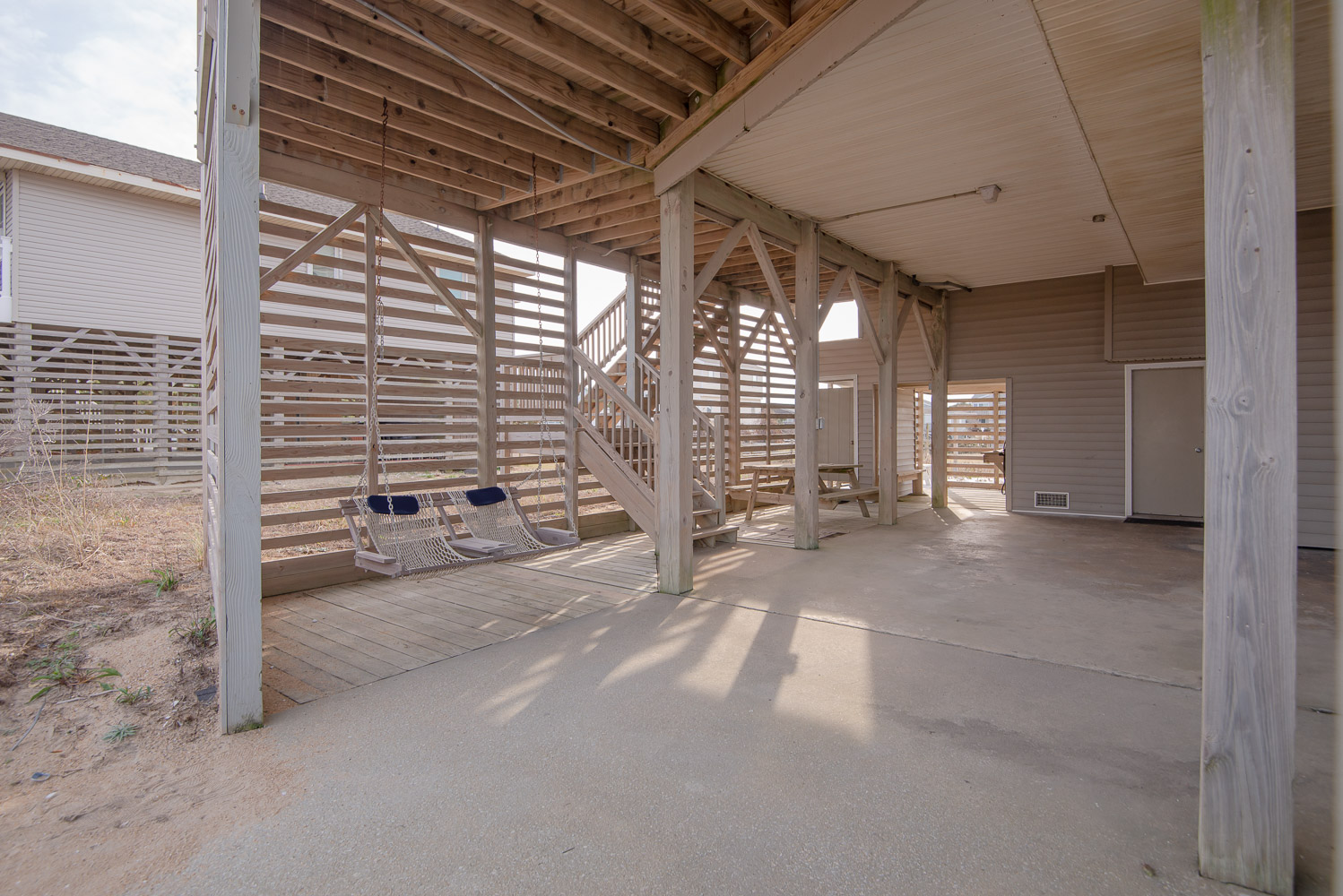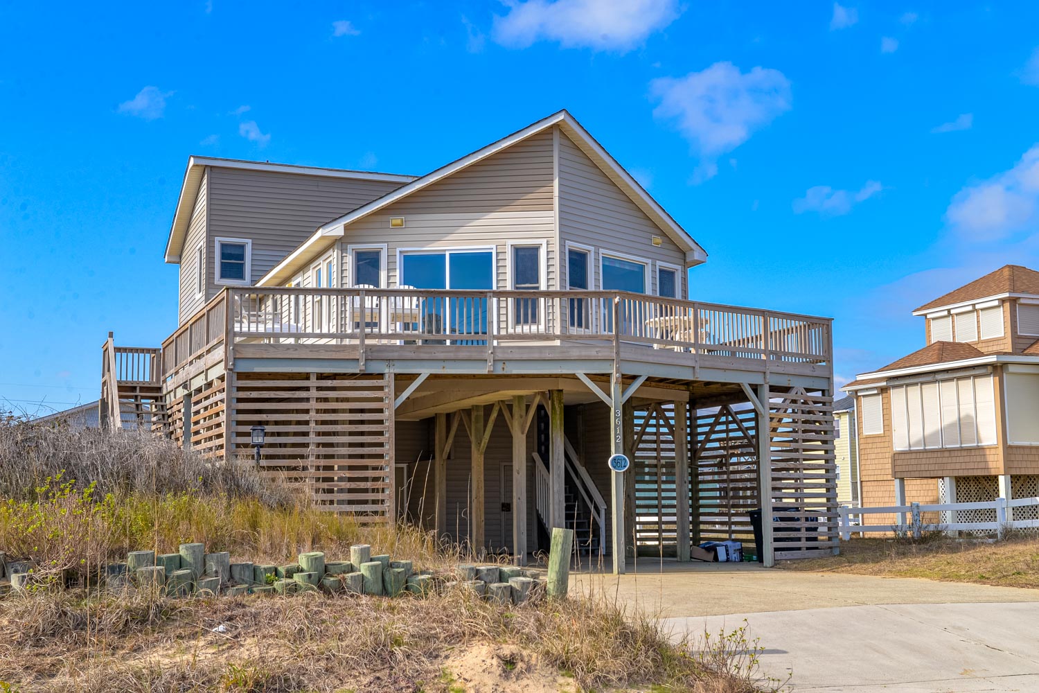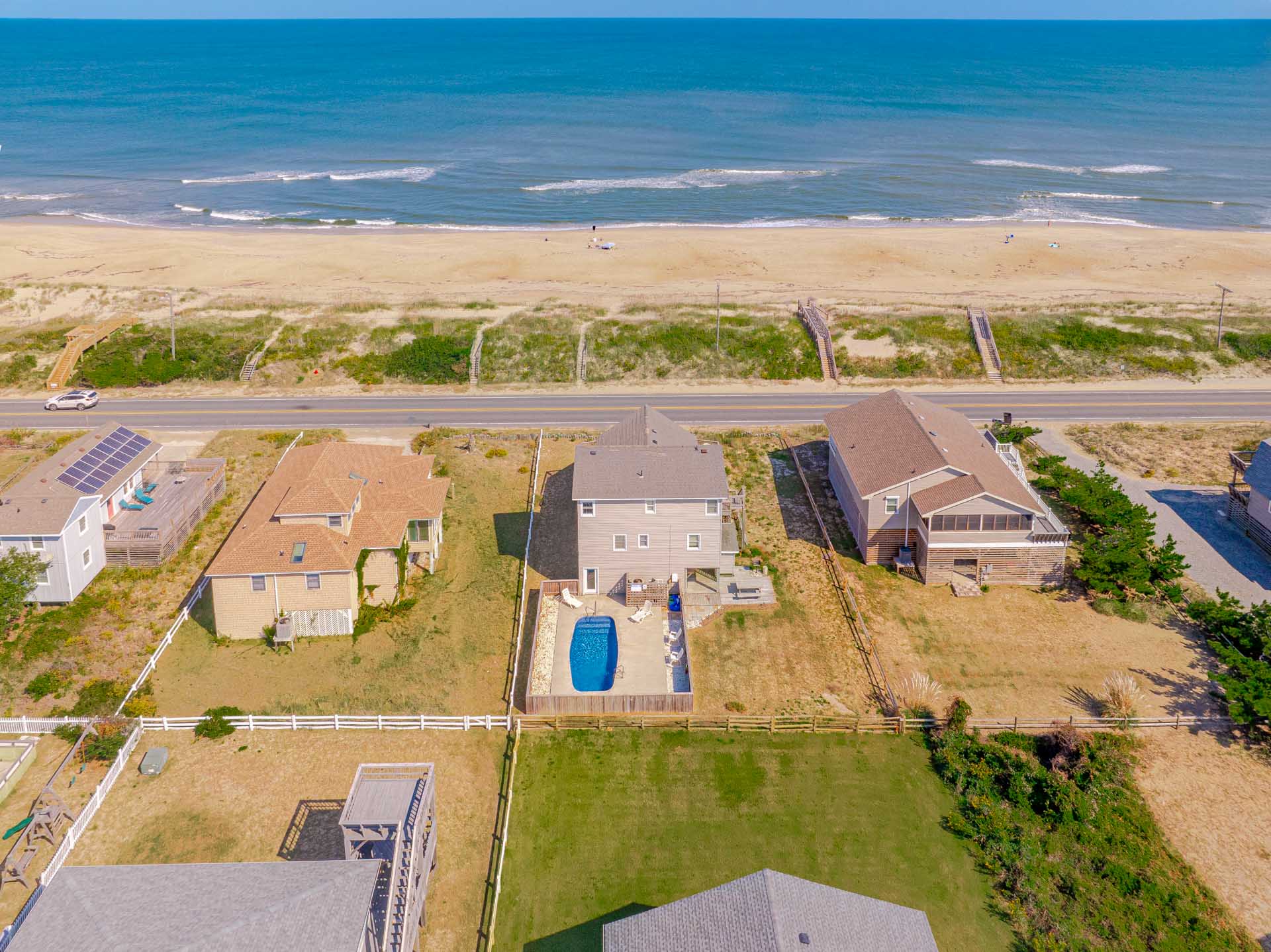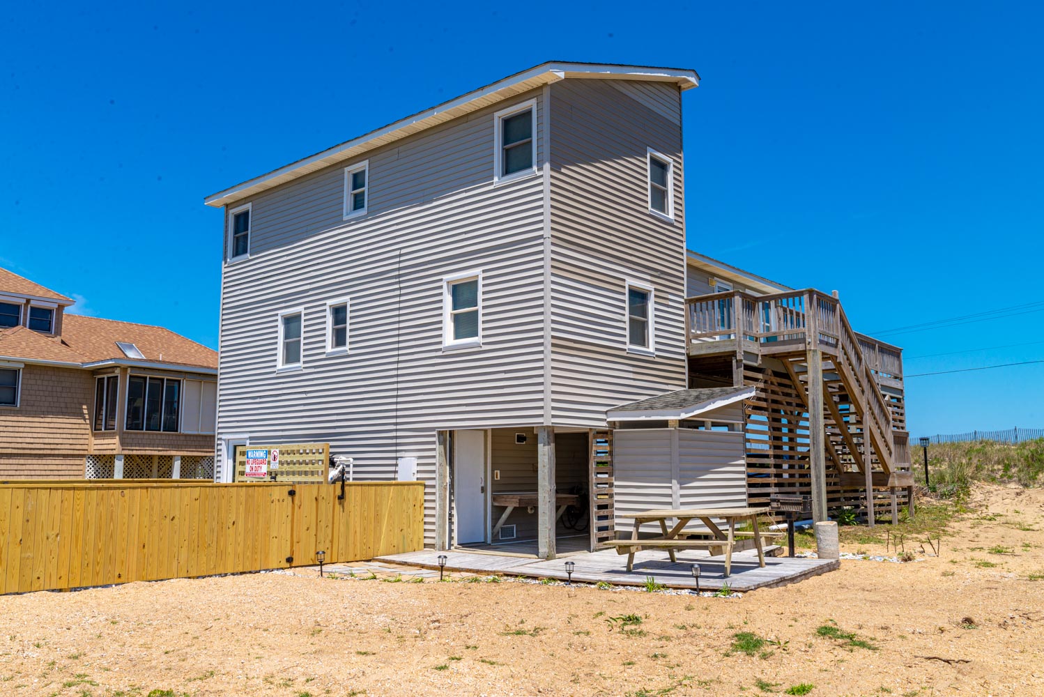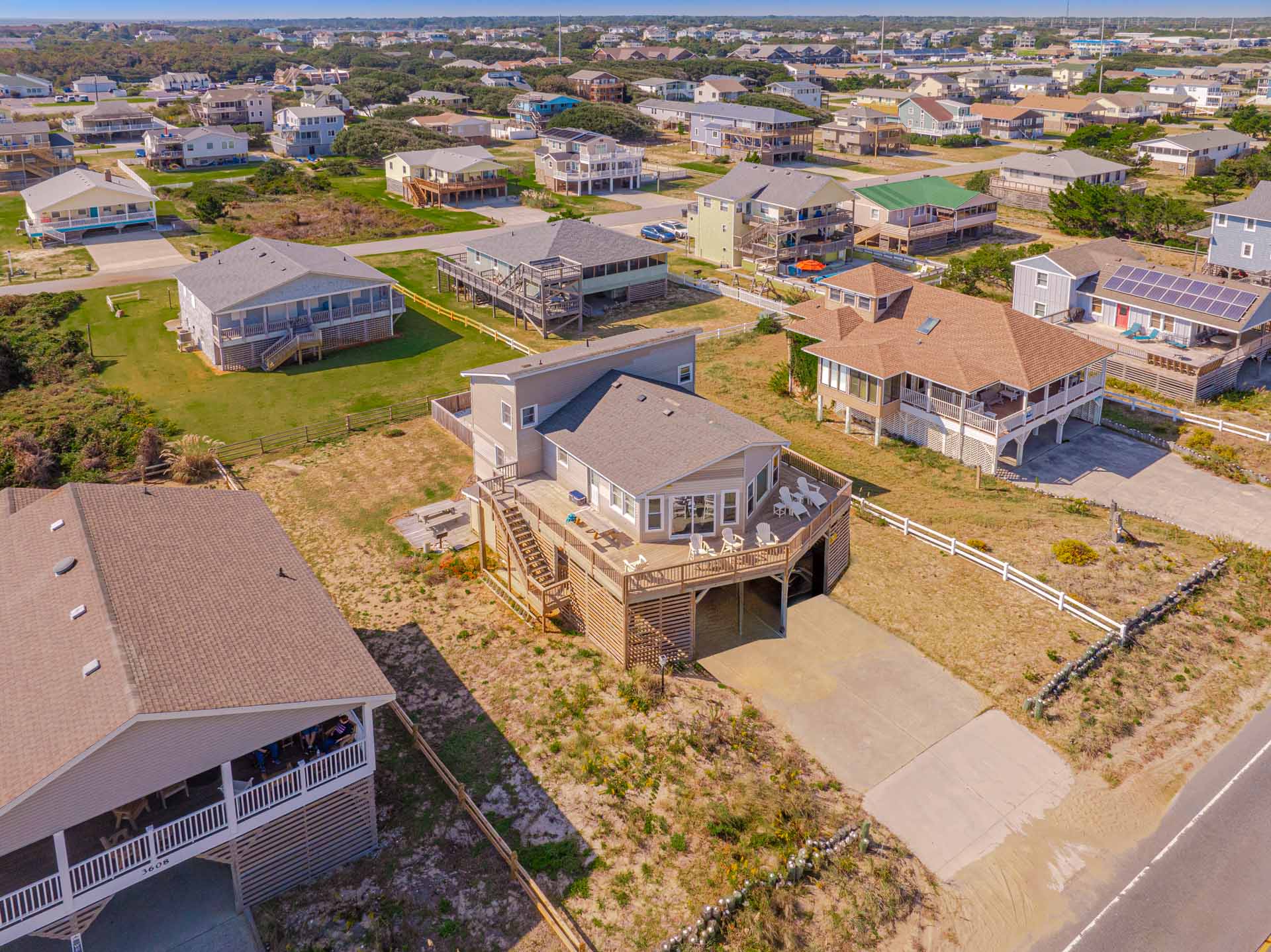 Ground Level: Parking for 5 Cars, Utility Room, Washer/Dryer, Covered Entry, Half Bath, Fish Cleaning Station, Park Grill, Enclosed Outside Shower, Pool Bar Area w/Refrigerator, TV, Sink, and Access to Private Swimming Pool - Open Seasonally, and Hot Tub.