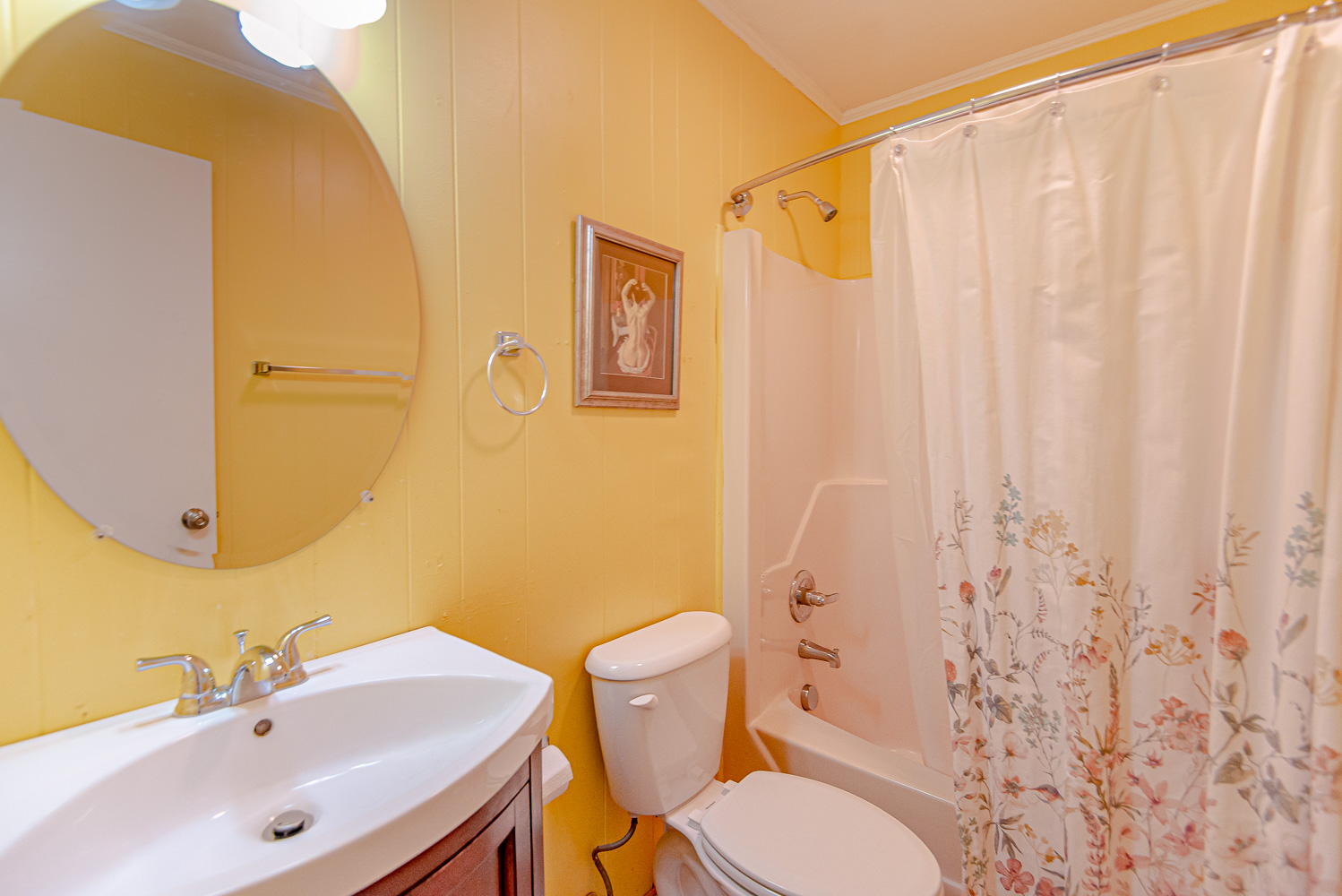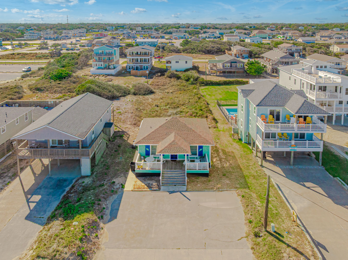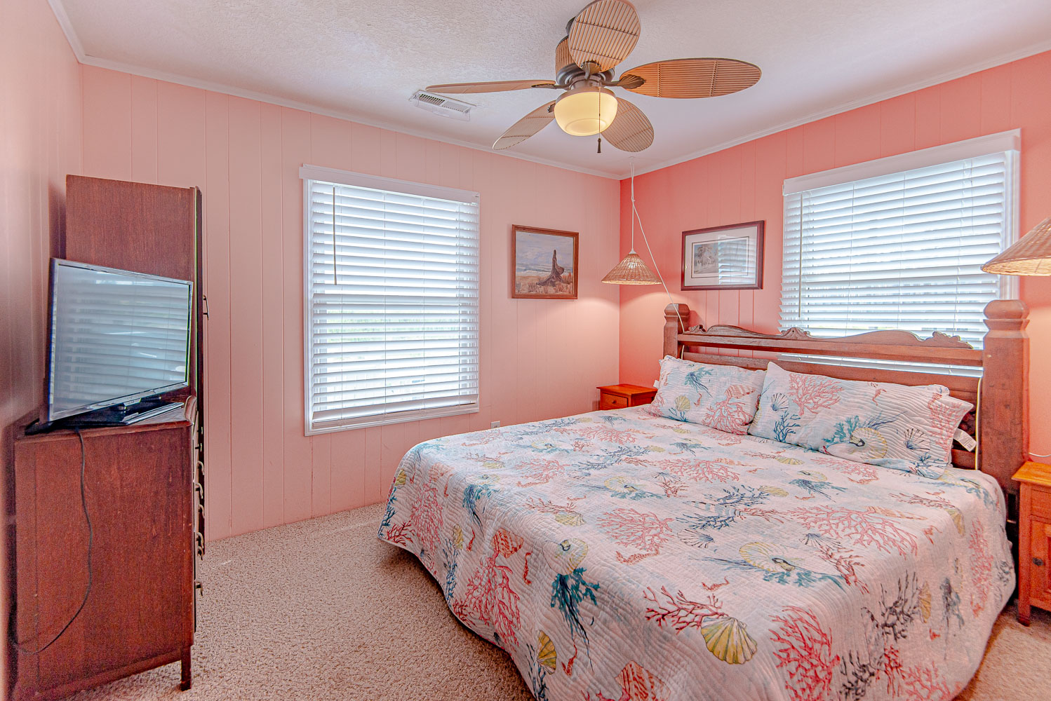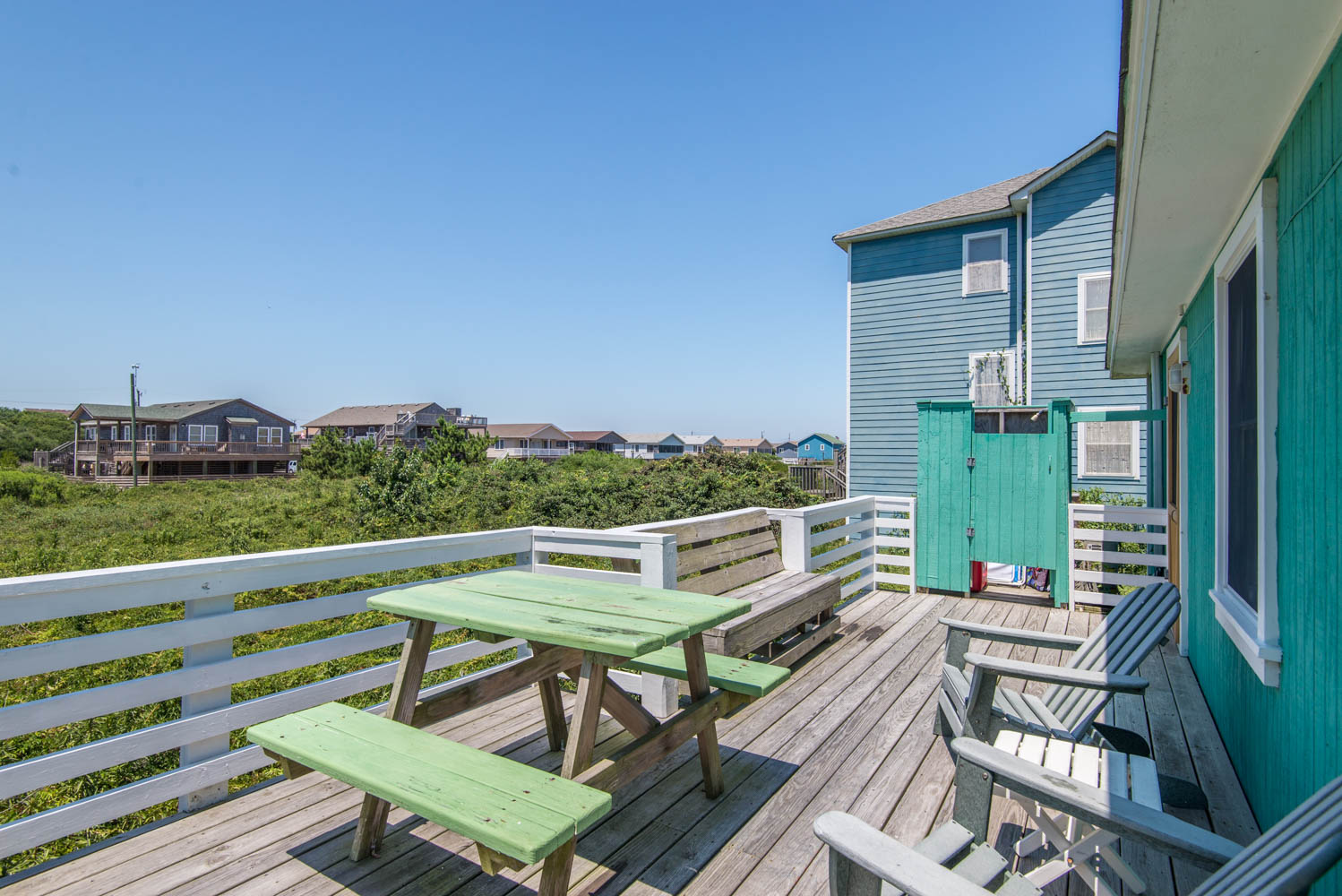 Main Level: Living Area w/ Flat Screen TV, Queen Sleep Sofa; Dining Area; Kitchen w/Granite Counters; Ocean Views, Laundry Area, 2 Bedrooms (Private Suite w/King, Flat Screen TV, Full Bath; 1 w/King, Flat Screen TV), Full Hall Bath, Covered Deck, Front Sun Deck w/Built-In Seats, & Back Sun Deck w/Deck Furniture.