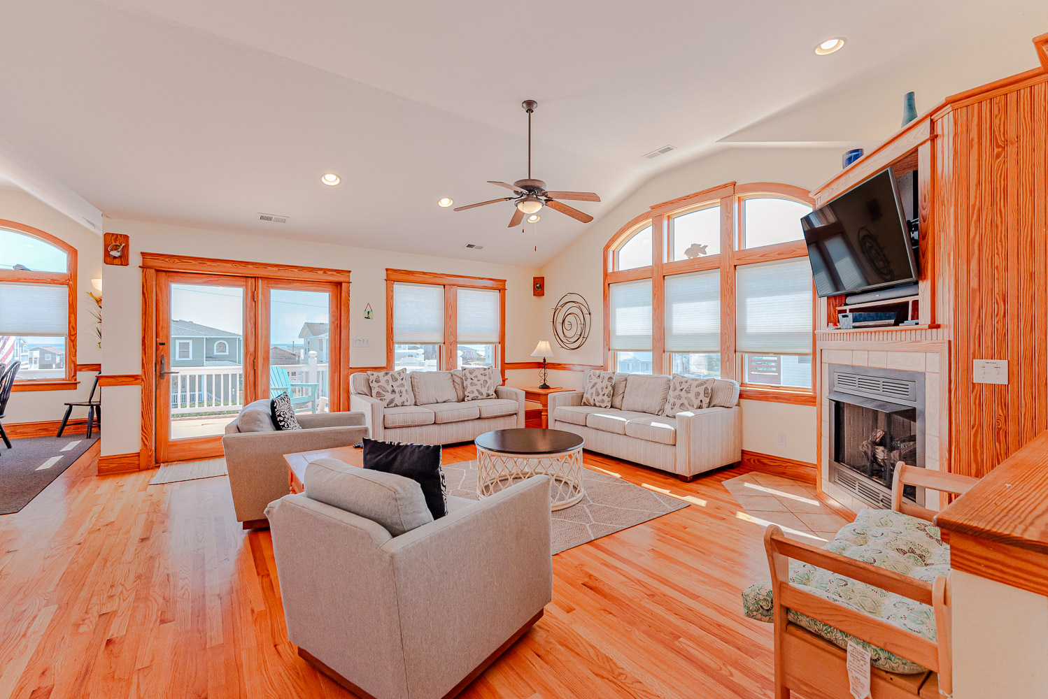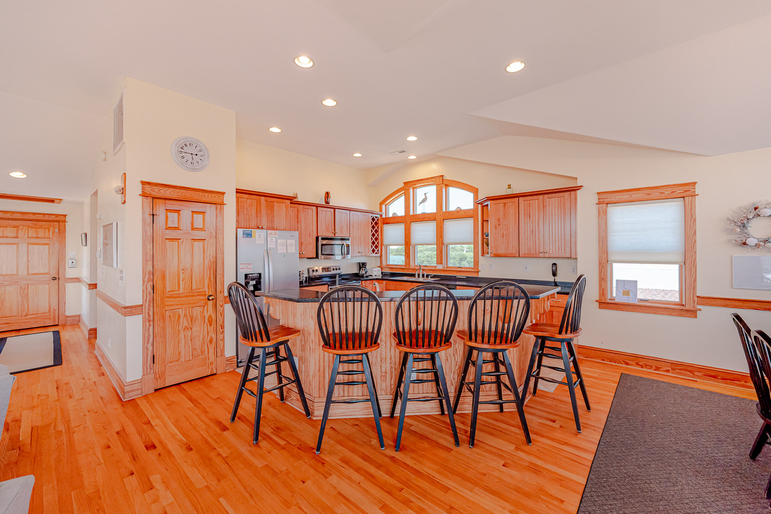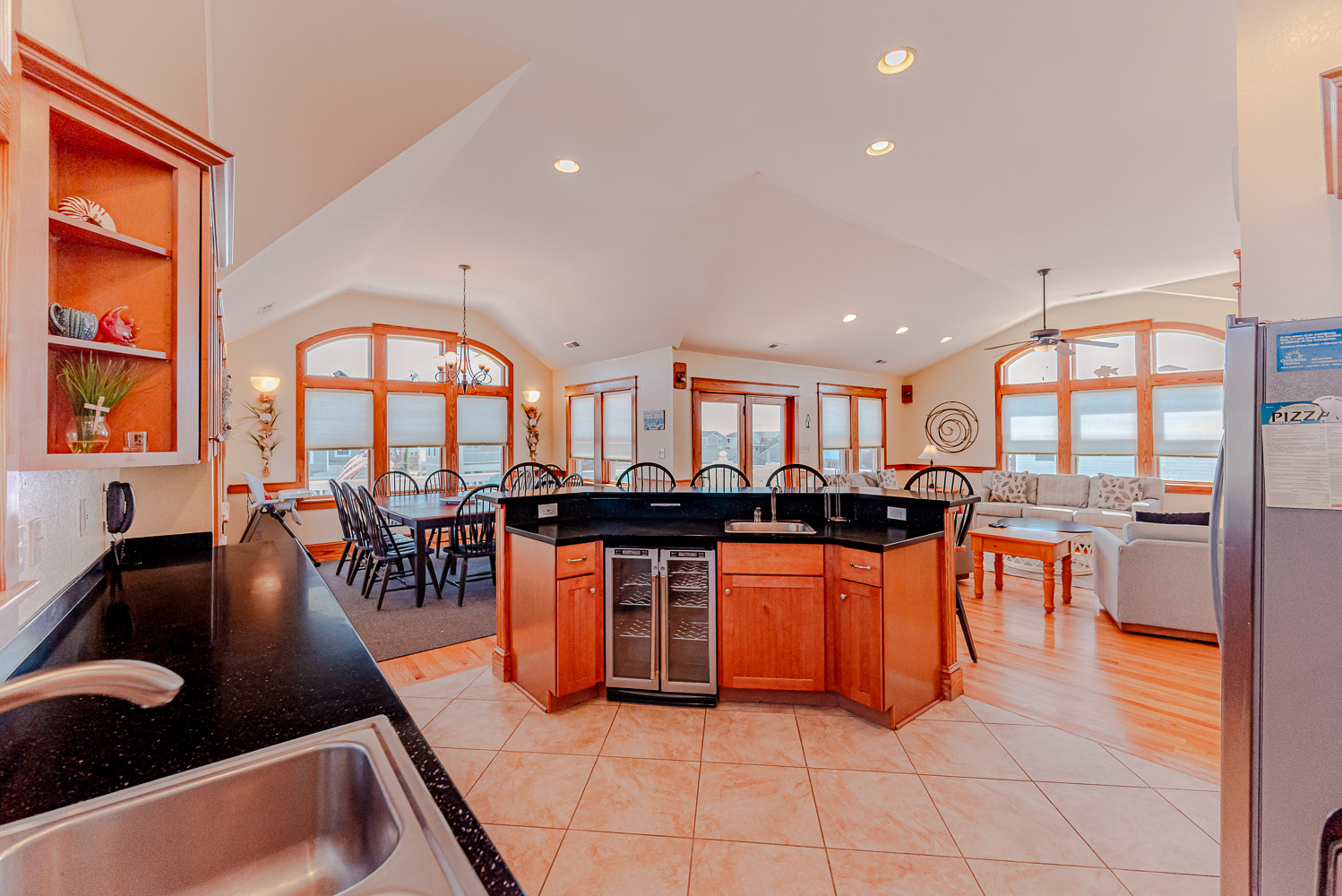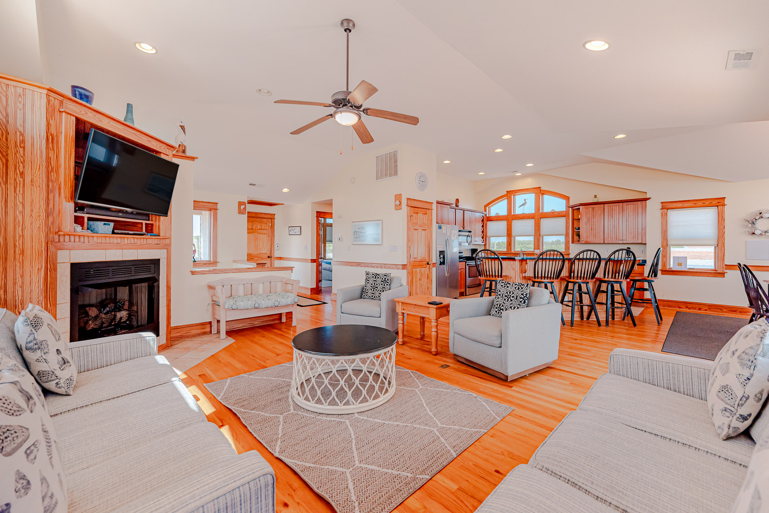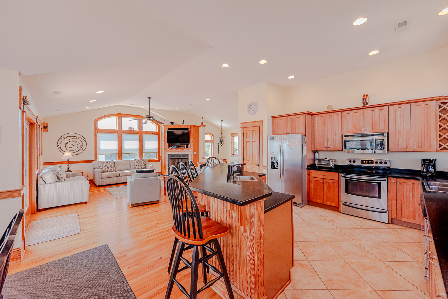 Top Level: Beautifully Decorated Living/Dining/Kitchen Area, Vaulted Ceilings, TV, DVD, Gas Fireplace, Wine Cooler, Half Bath, Private Suite w/King, TV, and Full Bath, and Access to Expansive Decks w/Great Ocean Views.
