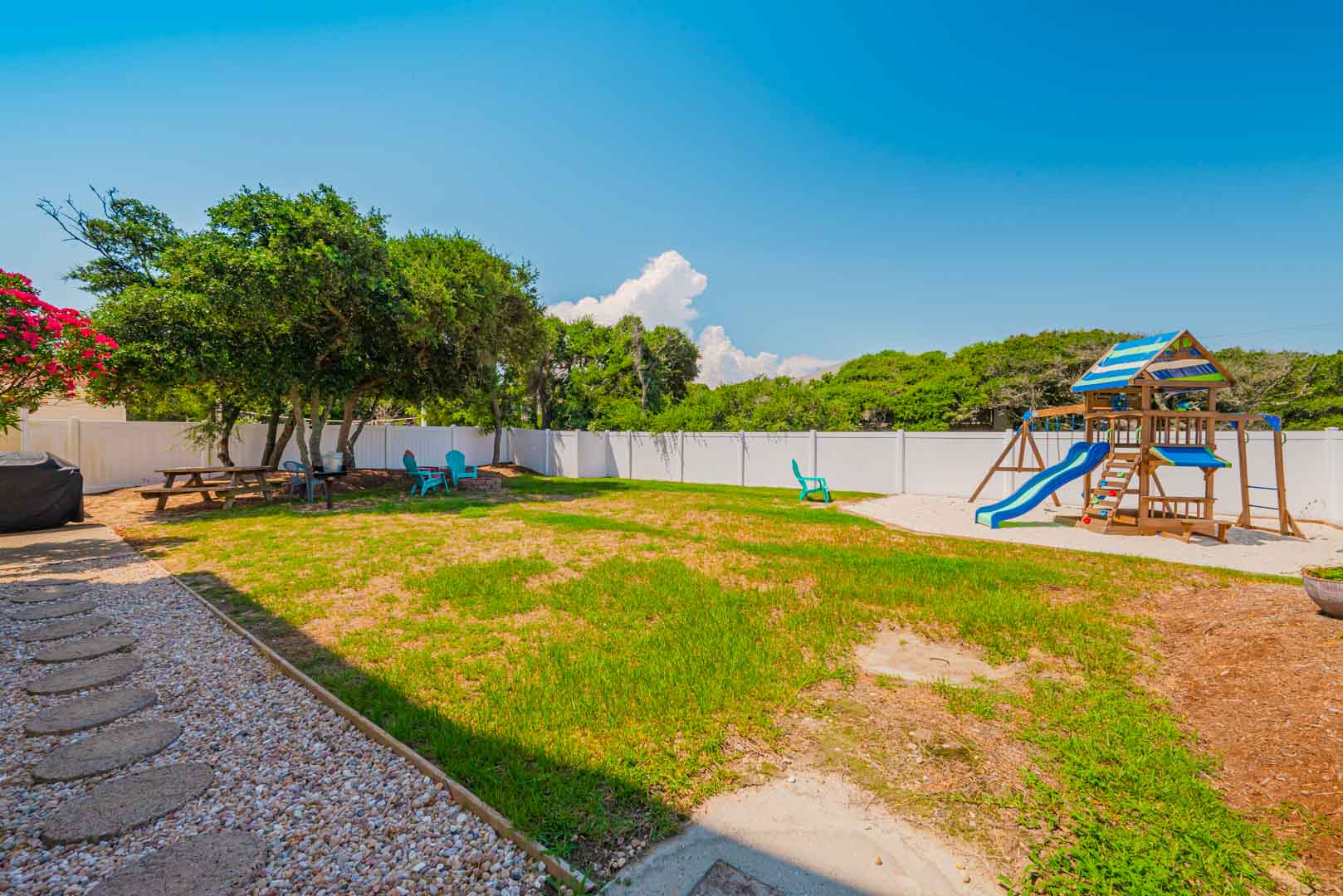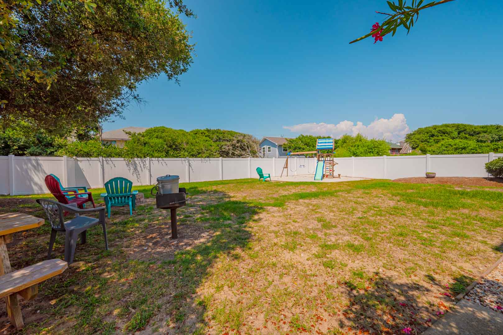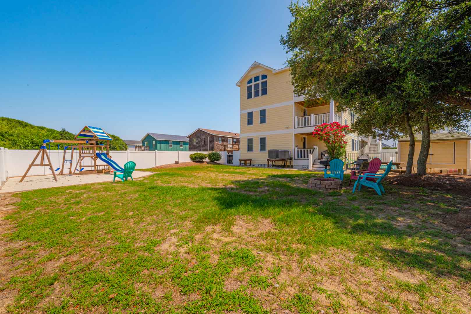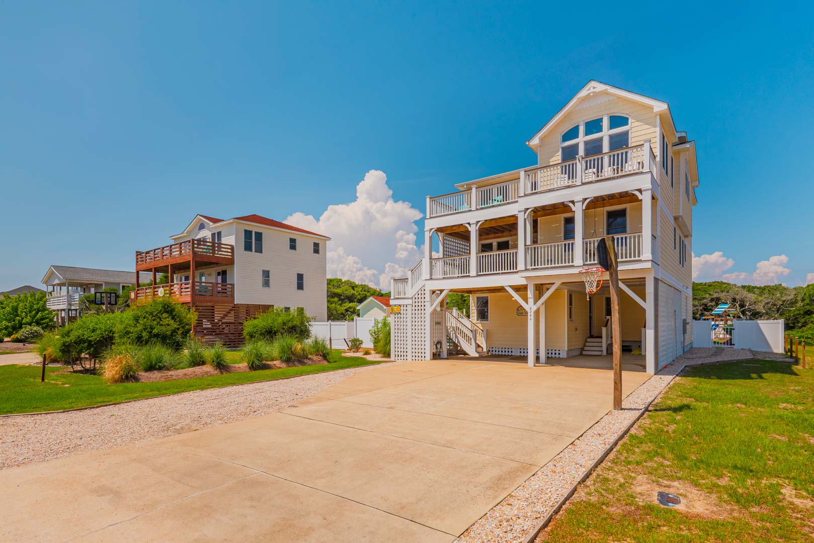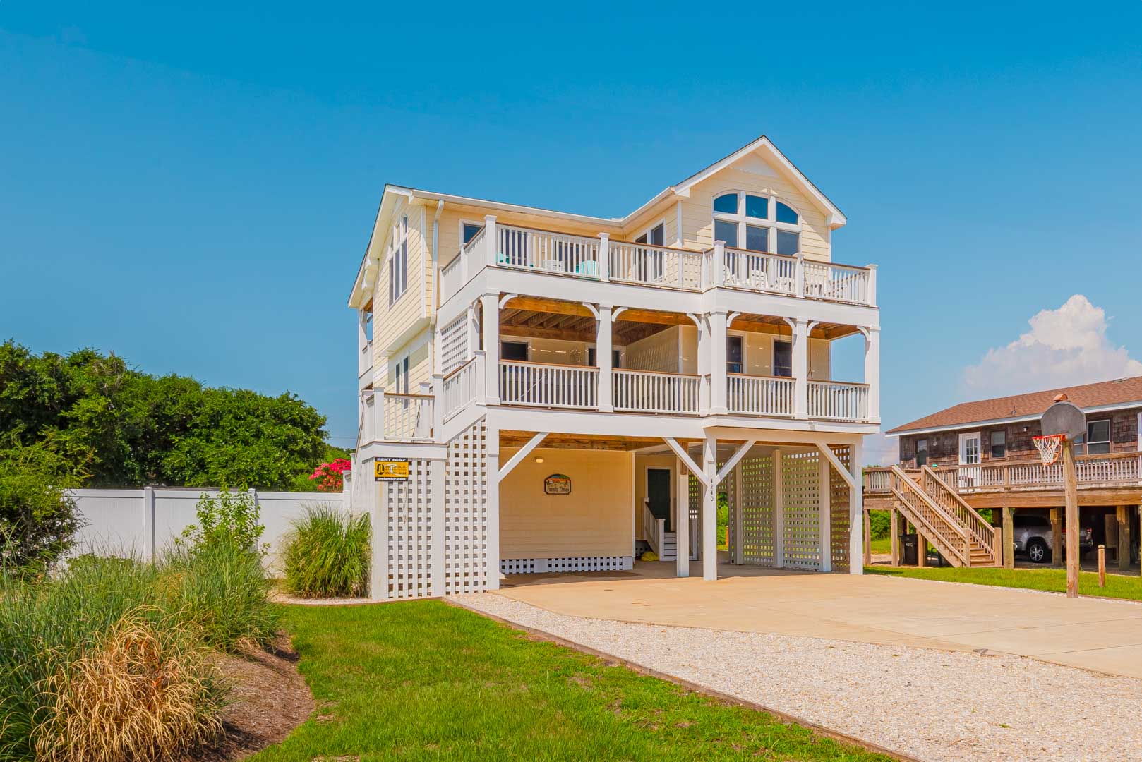 Ground Level: Parking for 6 Cars, Steps from Carport to the First Level of Home, Covered Entry, Private Swimming Pool - Open Seasonally, Fire Pit, Enclosed Outside Shower, Picnic Table, Play/Swing Set, Basketball Hoop, Gas Grill, and Park Grill.