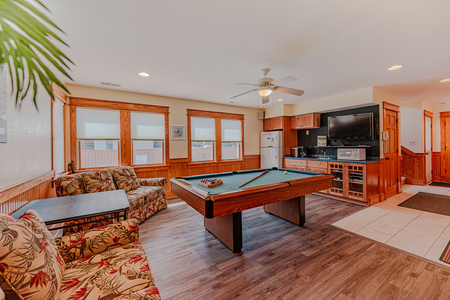First Level: Rec. Room w/Pool Table, Full Size Refrigerator, TV Area, Elevator, Half Bath, Private Suite w/Queen, TV, Full Bath, and Access to Patio Area.