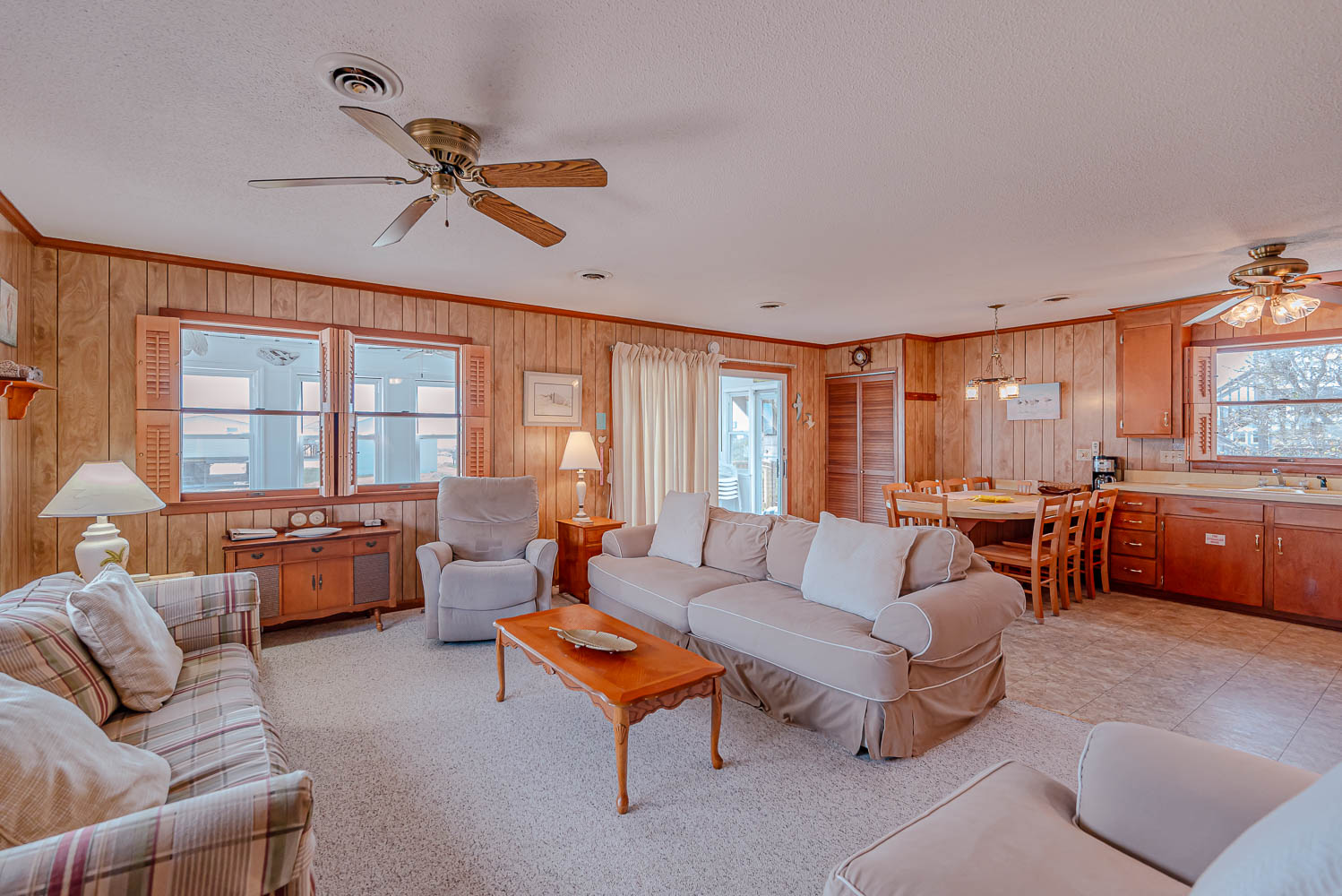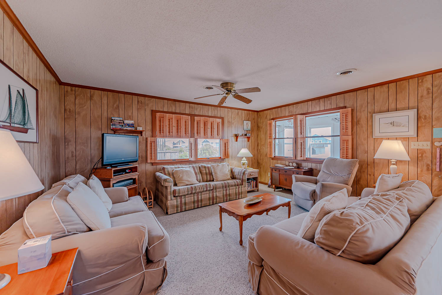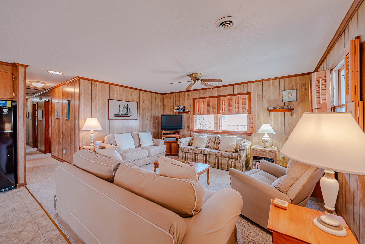 Main Level: Living/Dining/Kitchen Area w/TV w/VCR/DVD Combo, Wet Bar, 3 Bedrooms (1 Private Suite w/King, TV, & Full Bath, 1 w/Queen & TV, & 1 w/ 2 Singles), Full Bath, Florida Room w/Screened Windows that You Can Open to Enjoy the Ocean Breeze, Sun Deck, & Observation Deck.