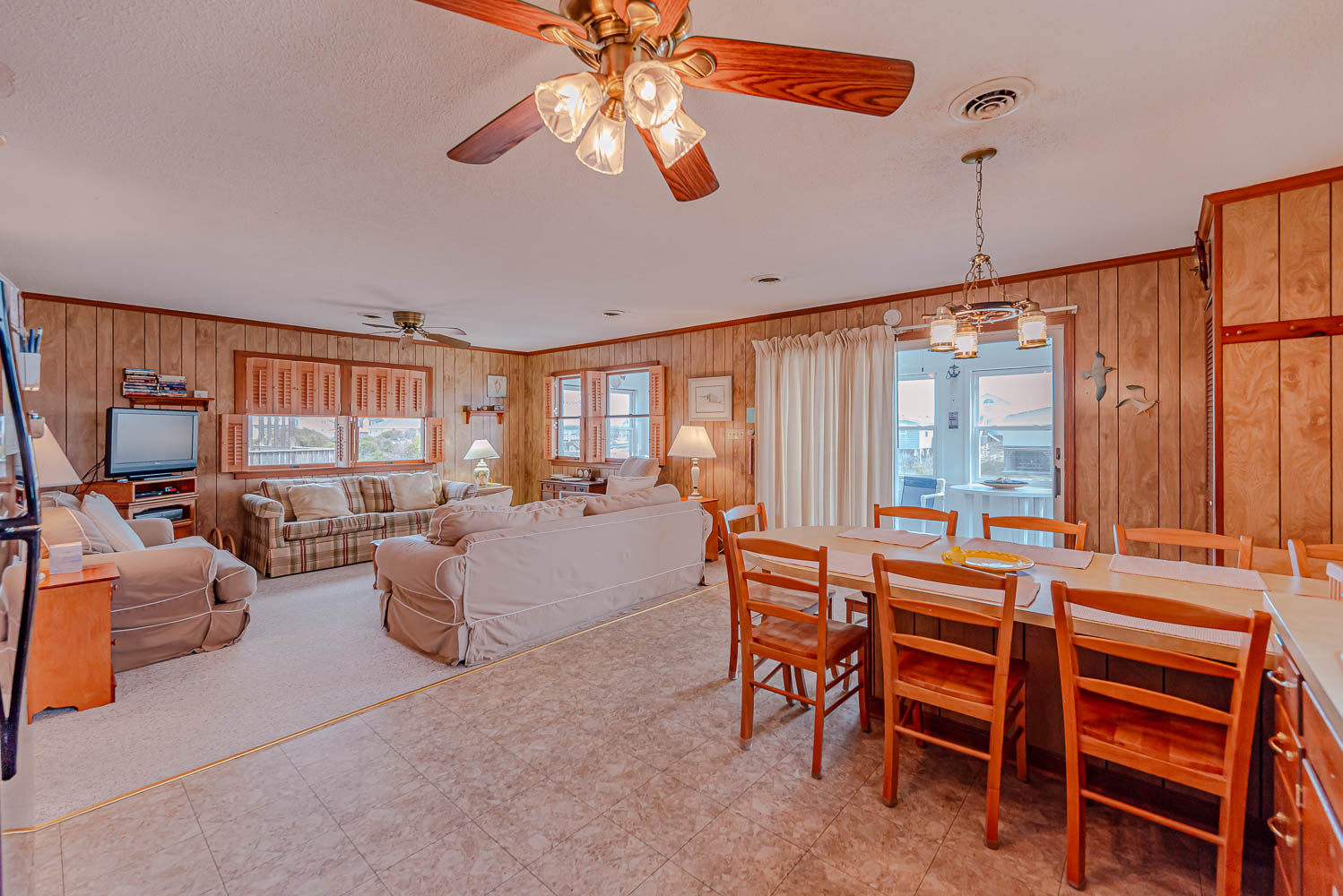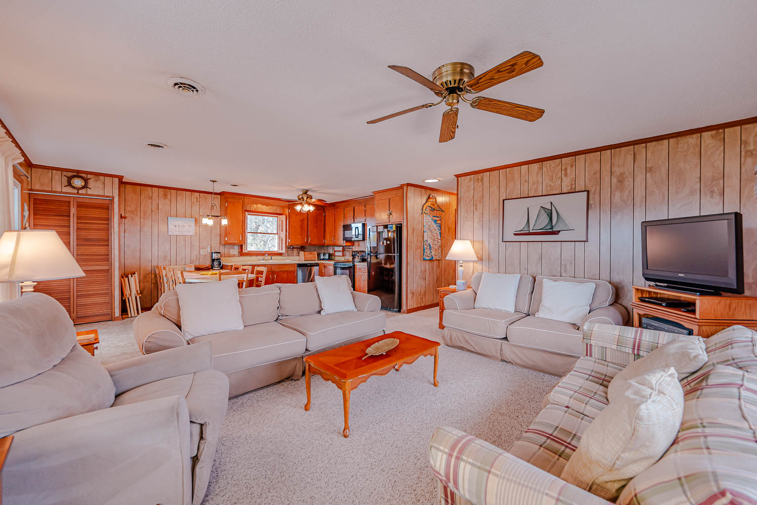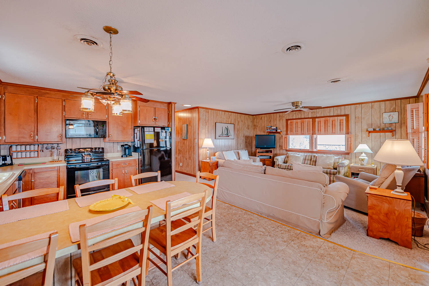 Main Level: Living/Dining/Kitchen Area w/TV w/VCR/DVD Combo, Wet Bar, 3 Bedrooms (1 Private Suite w/King, TV, & Full Bath, 1 w/Queen & TV, & 1 w/ 2 Singles), Full Bath, Florida Room w/Screened Windows that You Can Open to Enjoy the Ocean Breeze, Sun Deck, & Observation Deck.