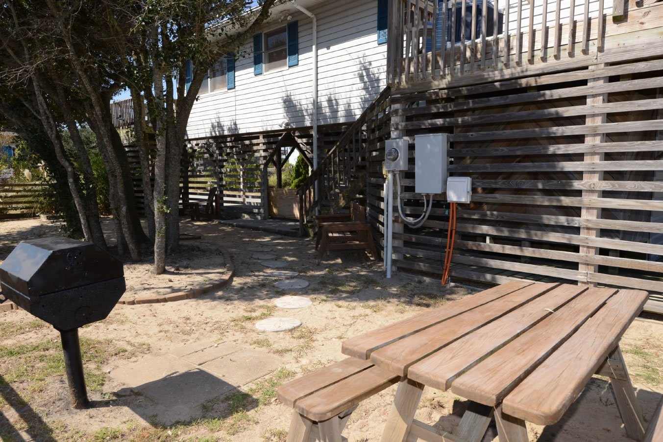 Ground Level: Parking for 4 Cars, Ramp to Entry, Enclosed Outside Shower, & Great Cookout Area w/Picnic Table & Charcoal Grill.