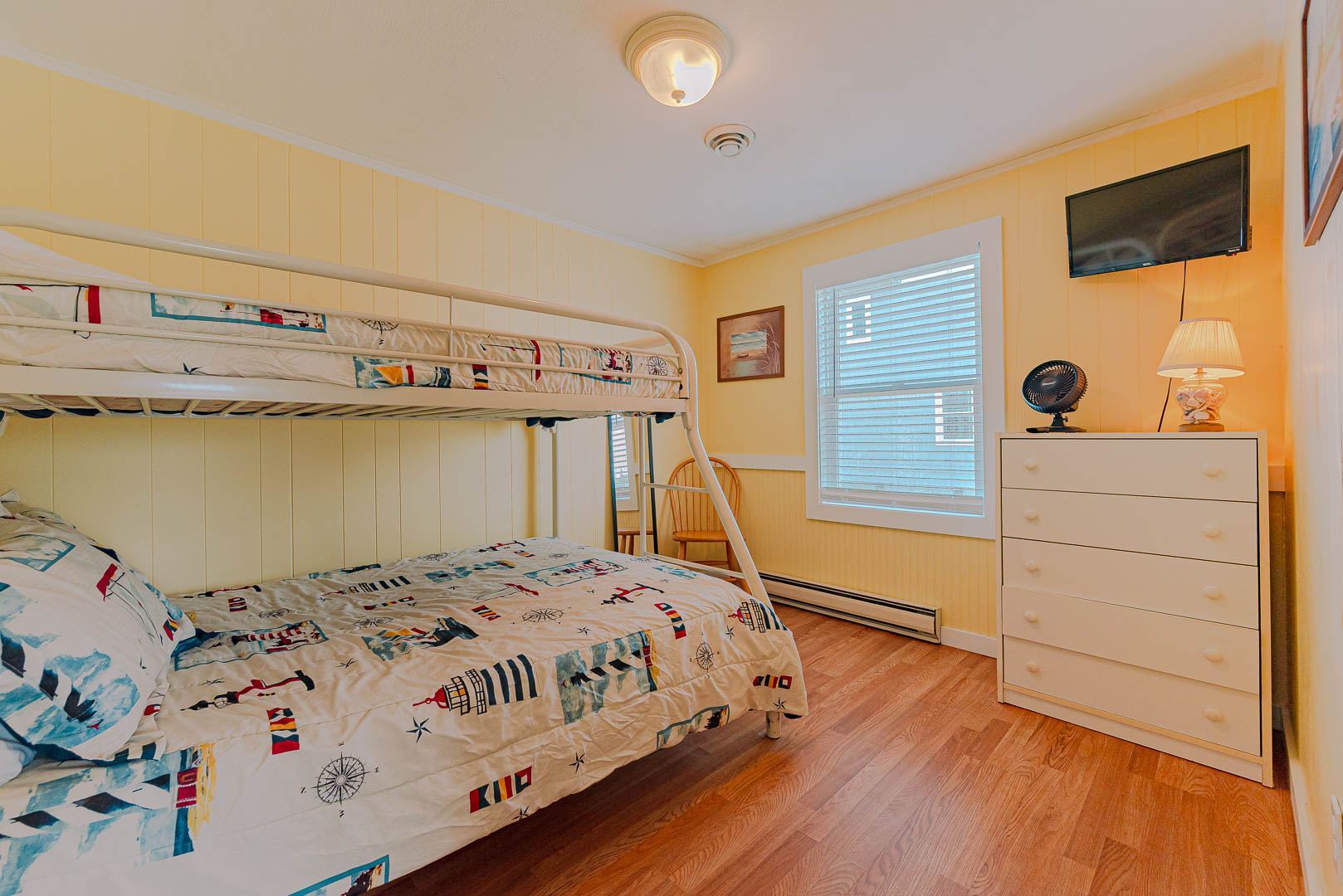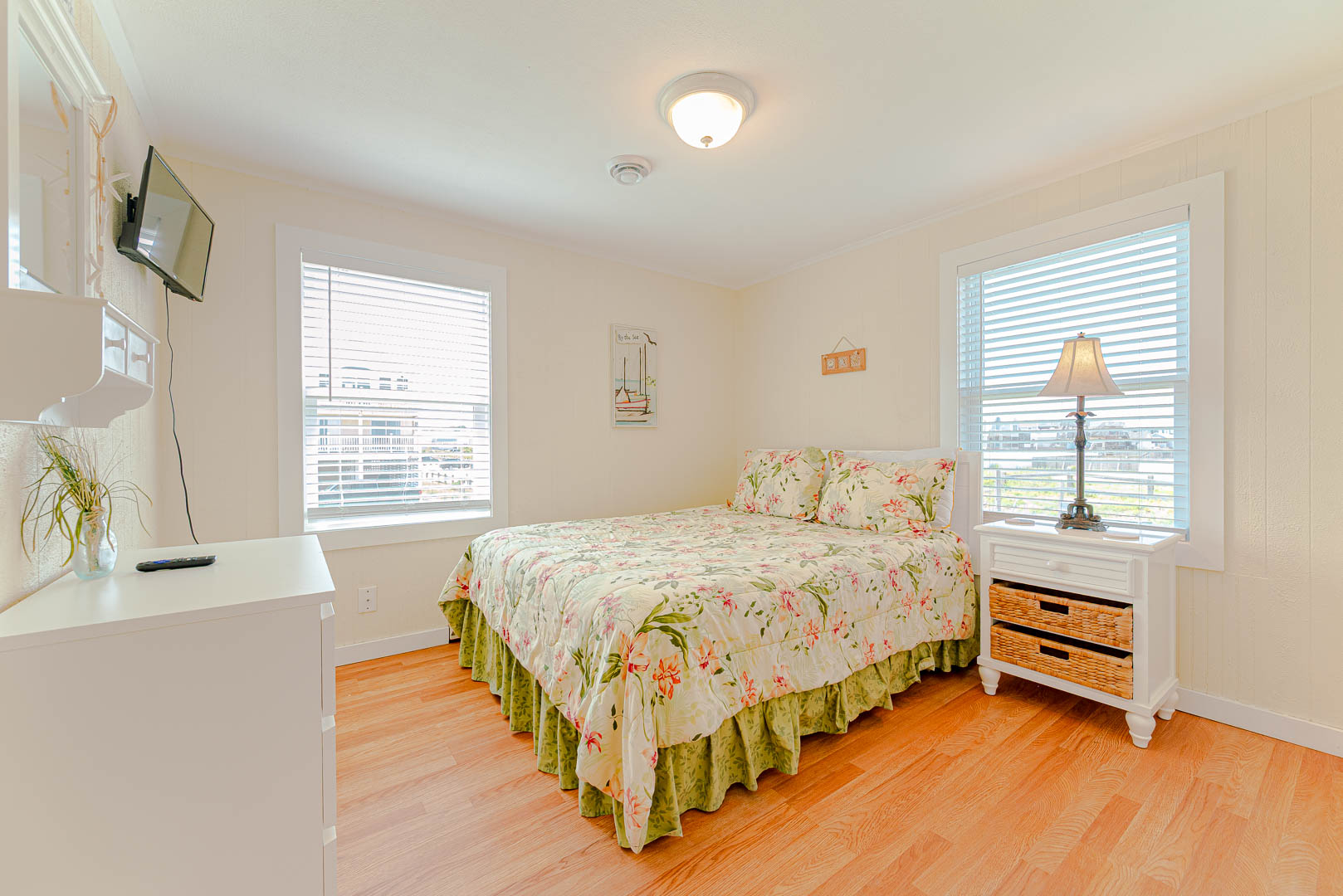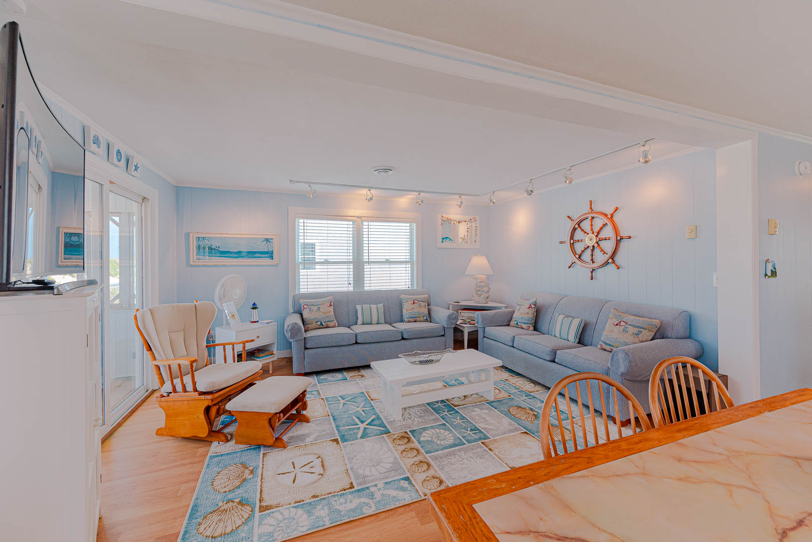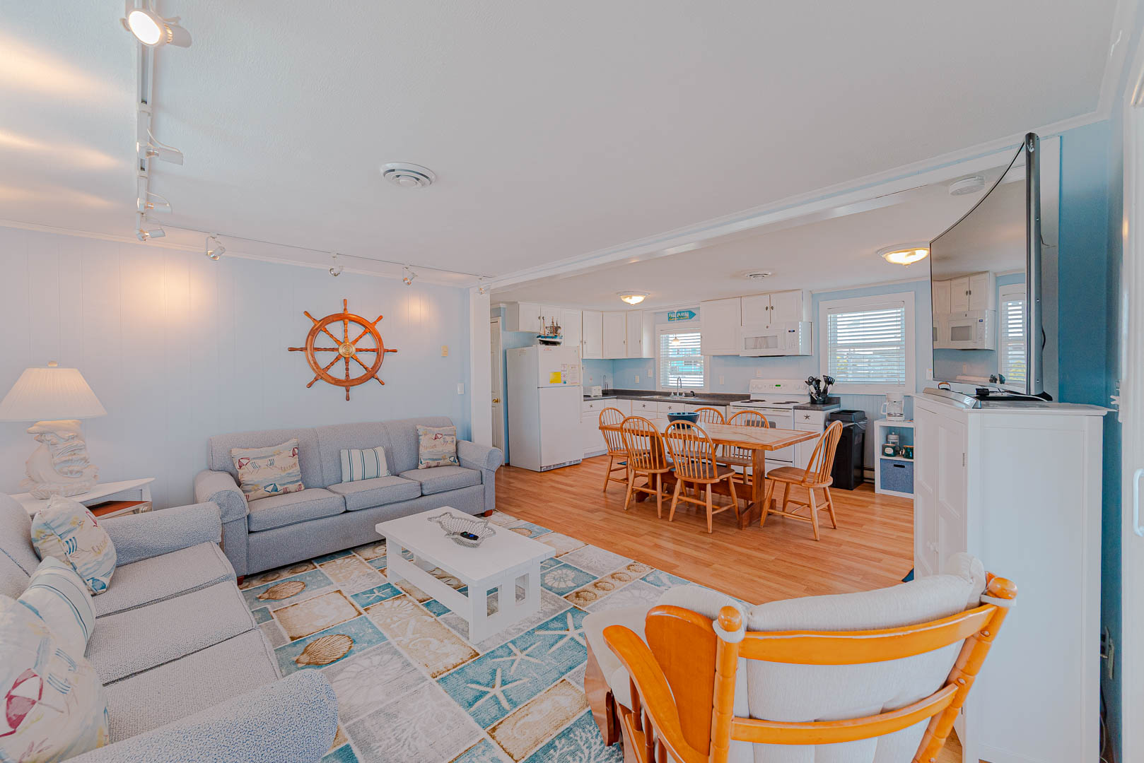 Main Level: Living/Dining/Kitchen Area, Coffee Station, TV, DVD, Stereo, Beautiful Hardwood Floors, 3 Bedrooms (Private Suite w/Queen, TV, Full Bath w/Shower Only, 1 w/Queen; 1 w/Duo Bunk w/Trundle, TV), Full Hall Bath, Screen Porch w/Furniture, and Sun Deck w/Hot Tub, Deck Furniture, and Ocean Views.