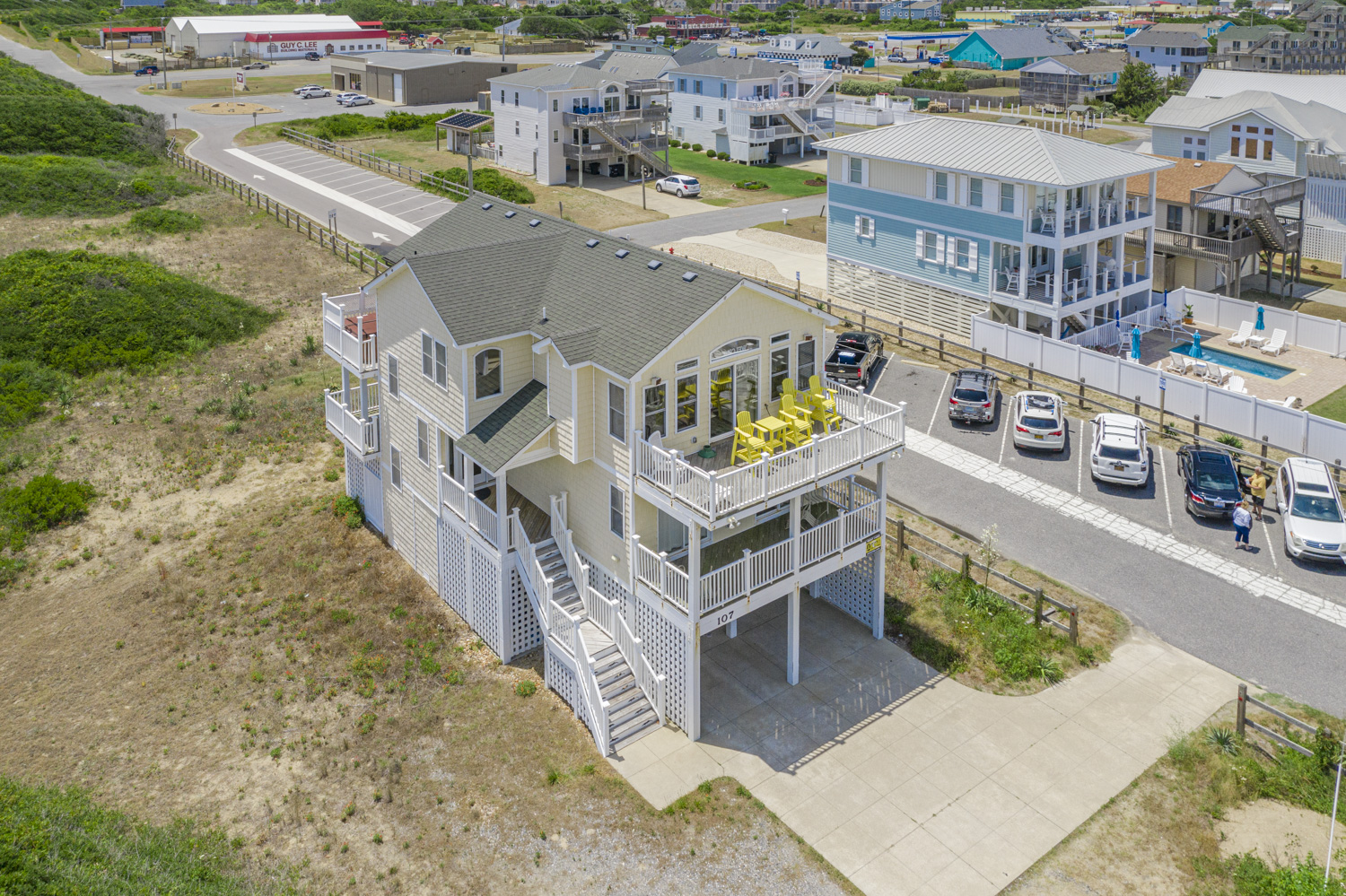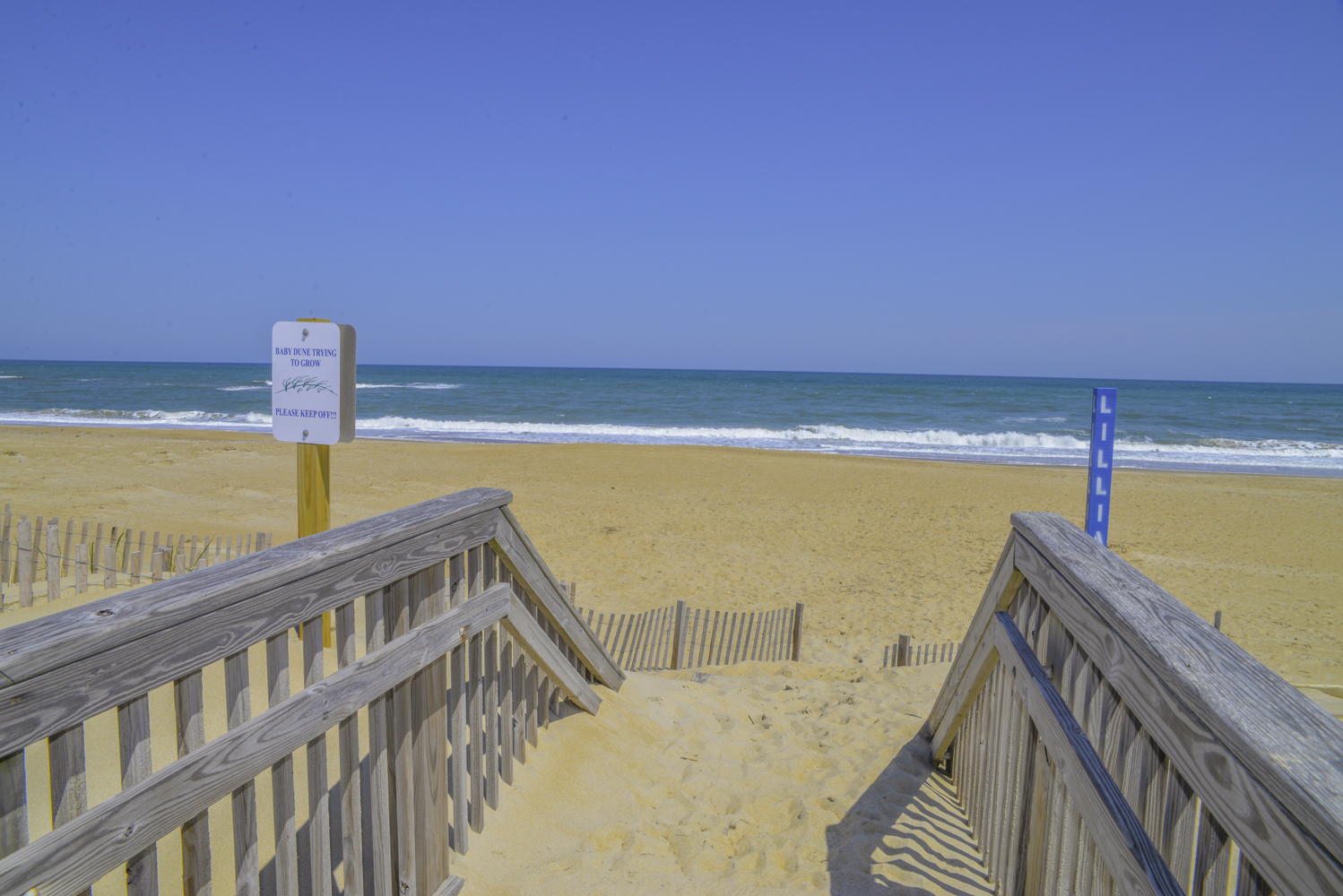 Ground Level: Parking for 5 Cars, Hot Tub, 50 Amp EV Charging Station, Steps to Entry, Elevator Allowing Easy Access to All Floors, Picnic Table, Charcoal Grill; Enclosed Outside Shower w/Dressing Area, Storage Area, Beach Toys, Boogie Boards, Kiddie Pool; Sidewalk to Virginia Dare Trail w/Pedestrian Crossing to Beach; and Community Dune Cross-Over w/Large Deck and Handicap Ramp.
