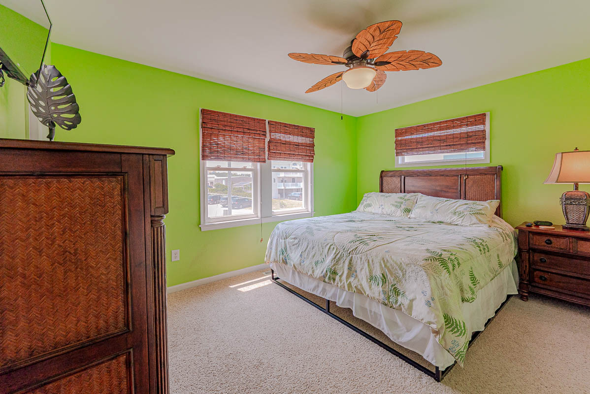 Mid Level: 4 Bedrooms (Private Suite w/Queen, TV, DVD, Full Bath w/Walk-In Shower, Access to Covered Deck w/Deck Furniture and Ocean Views; Private Suite w/King, TV, DVD, Full Bath w/Tub/Shower; 1 w/Queen, TV, DVD; 1 w/2 Singles, TV, DVD), Shared Full Bath, and Laundry Area.