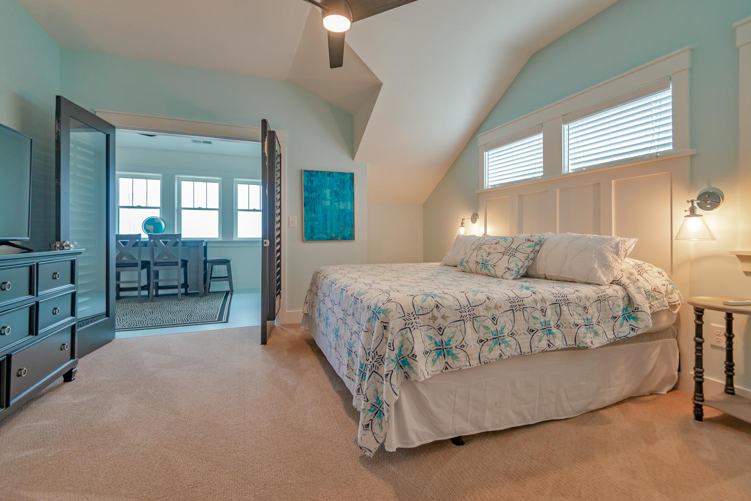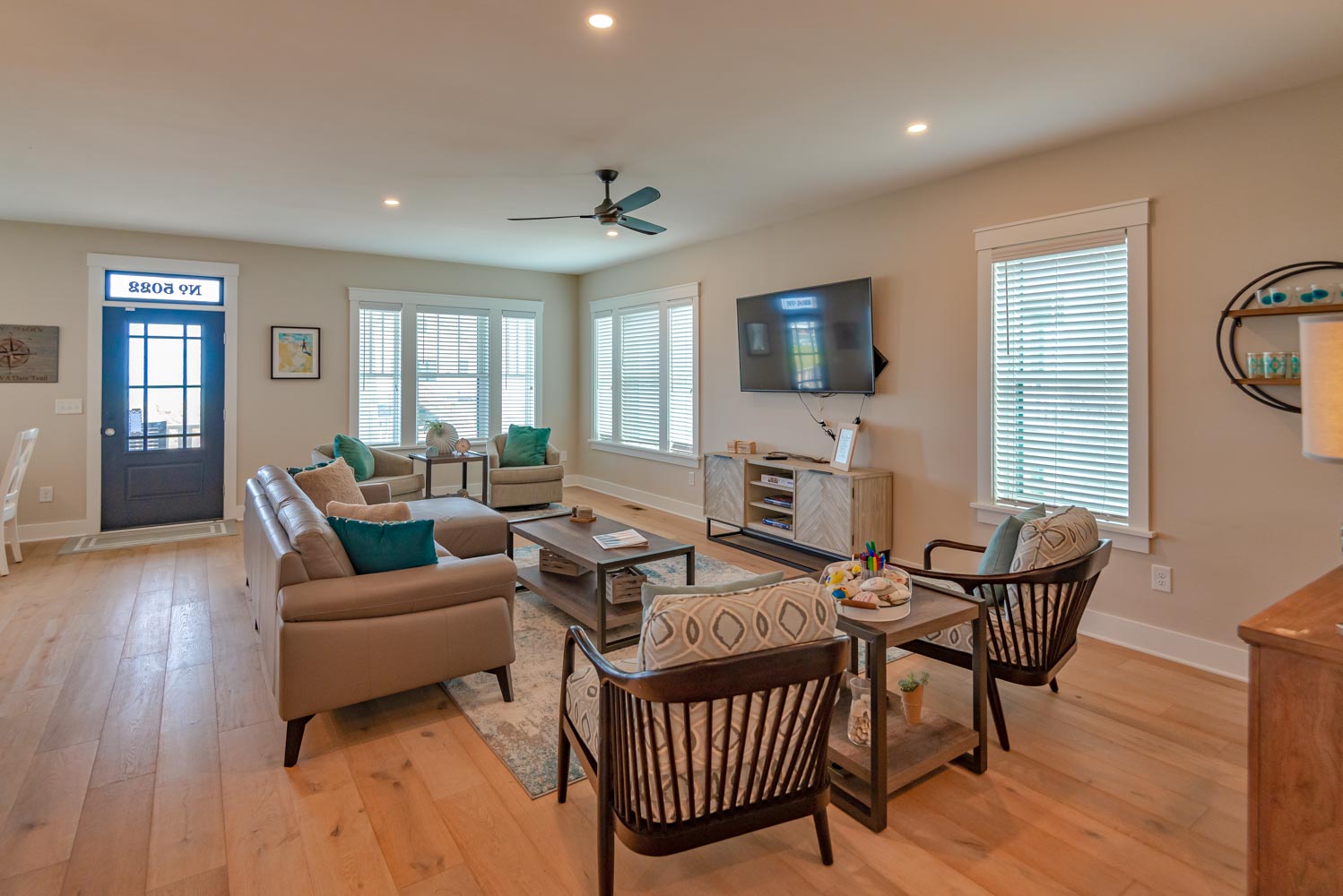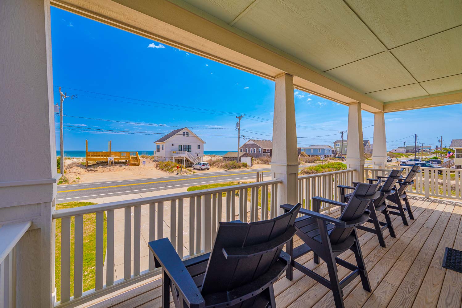 Top Level: 4 Bedrooms (2 Private Suites w/Kings, TVs, & Full Baths w/Showers, & Access to Enclosed Sun Room w/Ocean Views, 1 w/3 Built-In Singles, 1 w/2 Doubles), Shared Full Hall Bath w/Tub & Shower.