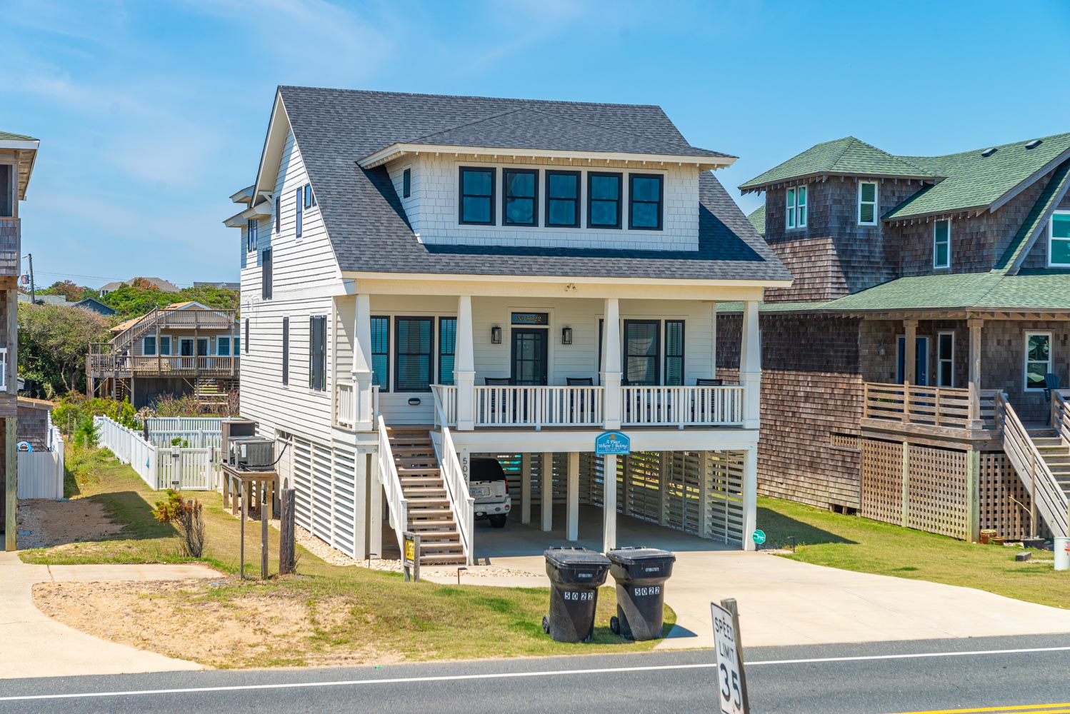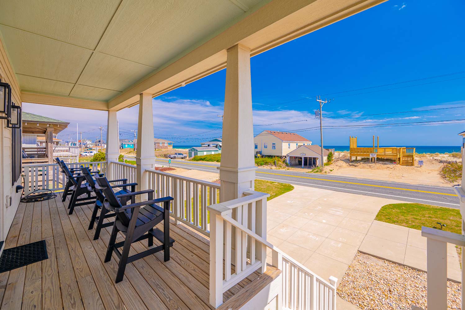 Welcome to A Place Where I Belong! This lovely home is a Parade of Homes winner and designed to resemble the Sears Roebuck cottages from the 1920's & 1930's. Your family is sure to love this Coastal Craftsman semi-oceanfront property that provides sweeping views of the ocean & with private beach access w/dune deck located directly across the street. Spacious at 3,000 square feet in living area, this home is absolutely beautiful. The main level features & open Living/Dining/Kitchen area, honed granite counters, stainless steel appliances, Large Pantry, TV, Ocean Views, private suite with separate soaking tub & a covered porch with rockers. The top level boasts 4 additional bedrooms and a unique ocean facing enclosed sun room that is the ideal place for some quiet relaxation time. On the ground level there is plenty of shade and space for outdoor activities for guests of all ages, including a private heated saltwater pool (open seasonally), hot tub and cabana style area with an outdoor TV. Children will find endless enjoyment in the fenced yard & covered area that offers plenty of shade & a place for fun activities.