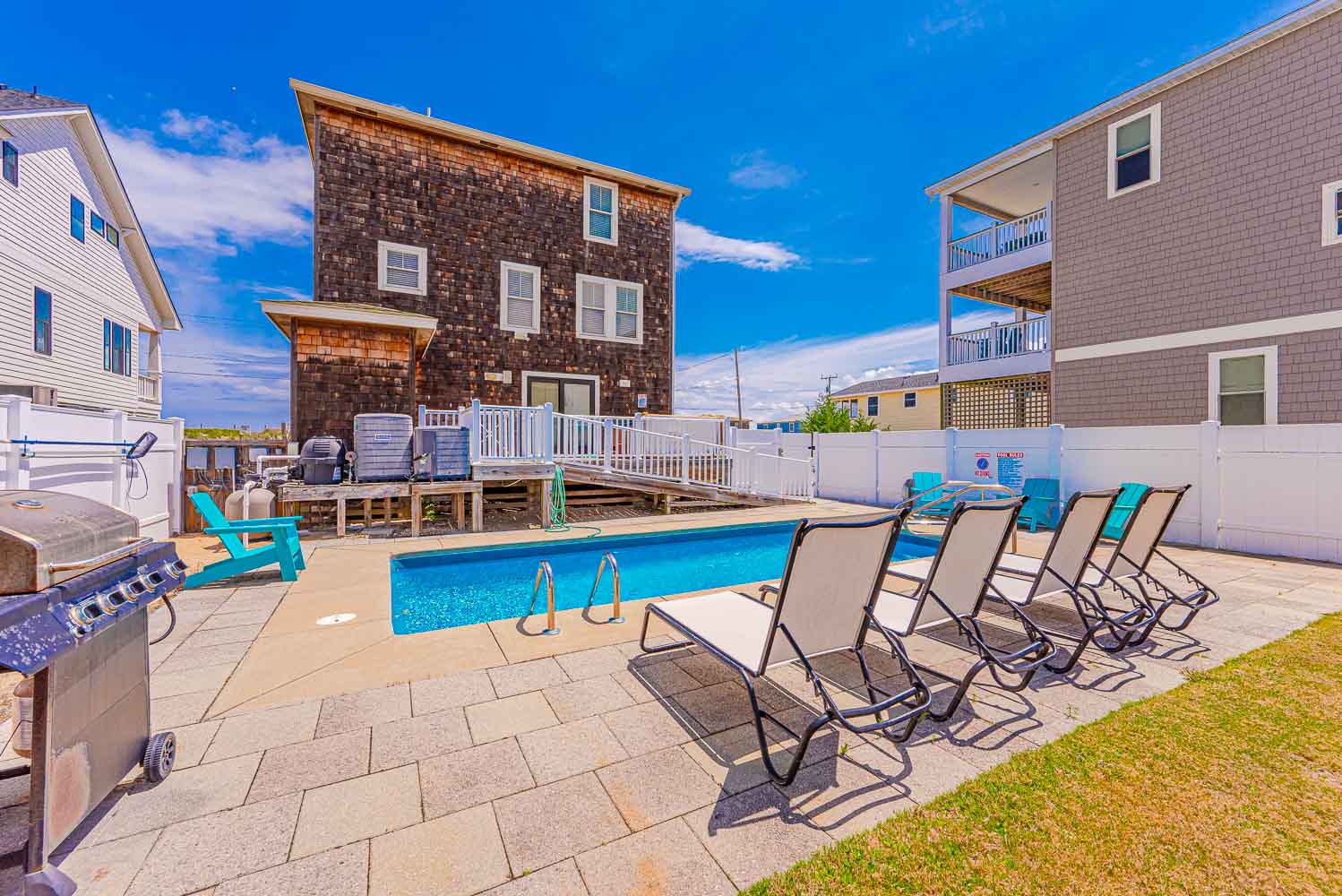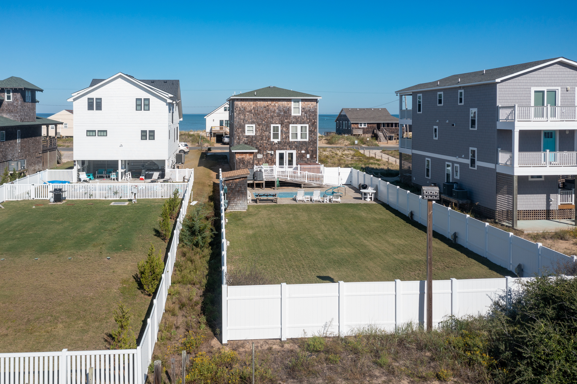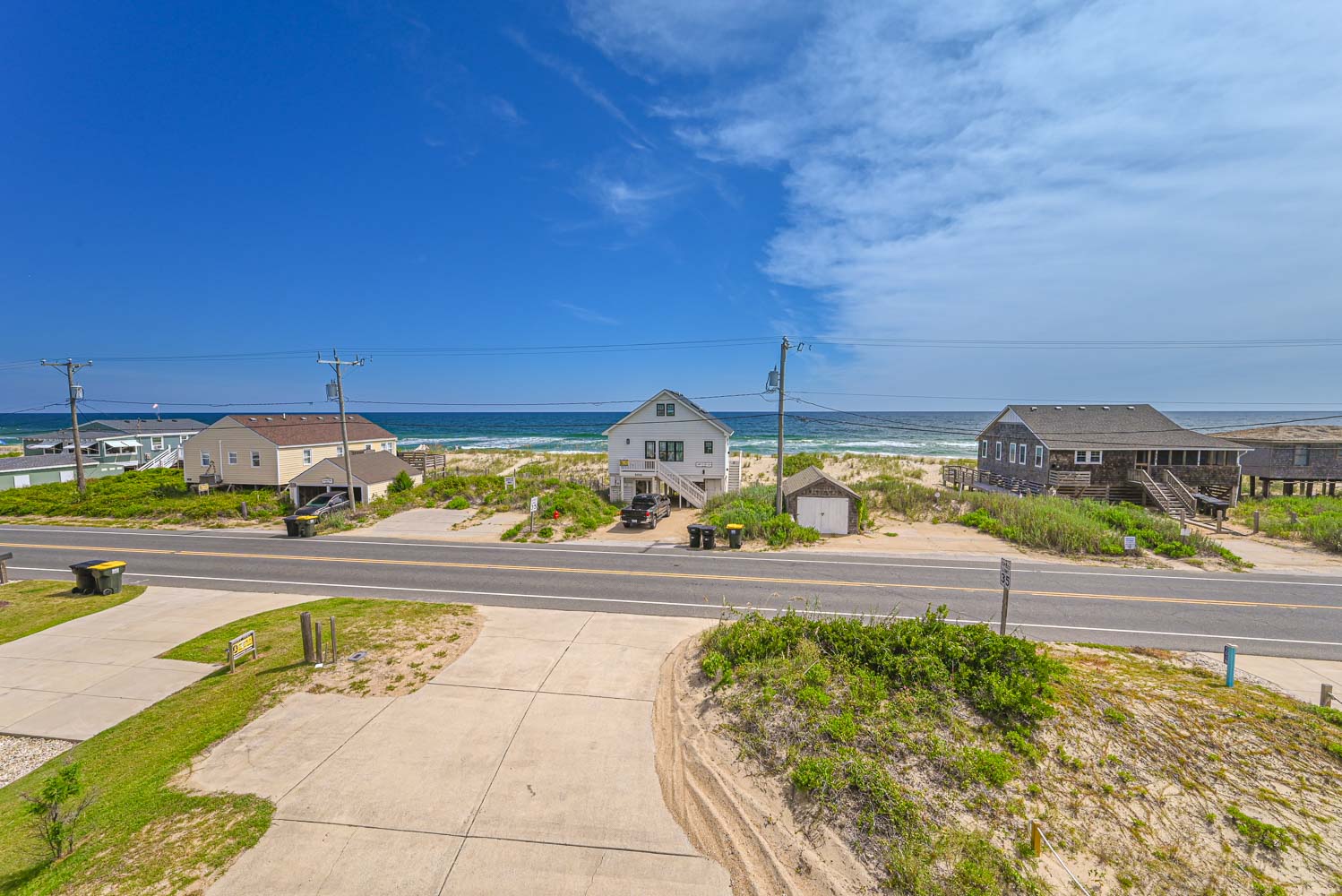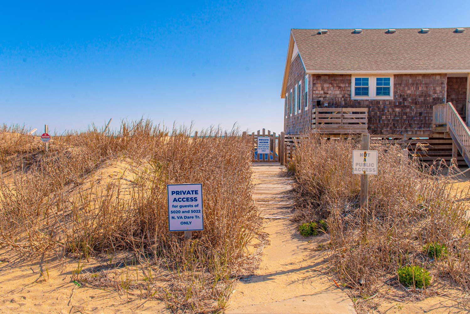 Ground Level: Parking for 4 Cars, Steps to Covered Entry, Ramp from Rear of Home to West Side Sun Deck, Entry, Large Fenced in Yard, Private Heated Saltwater Swimming Pool - Open Seasonally. (Can Be Heated for $400.00 Per Week, Plus Tax - Please Bear in Mind That Pool Temperature is Subject to Outside Temperatures and Conditions). Beach Access Located Across Beach Road Just South with Wooden Walkway The beach access is located just to the south across the Beach Road and is marked with a sign. There is a wooden walkway and then a sand path the leads to the beach.