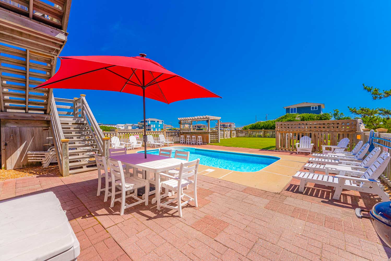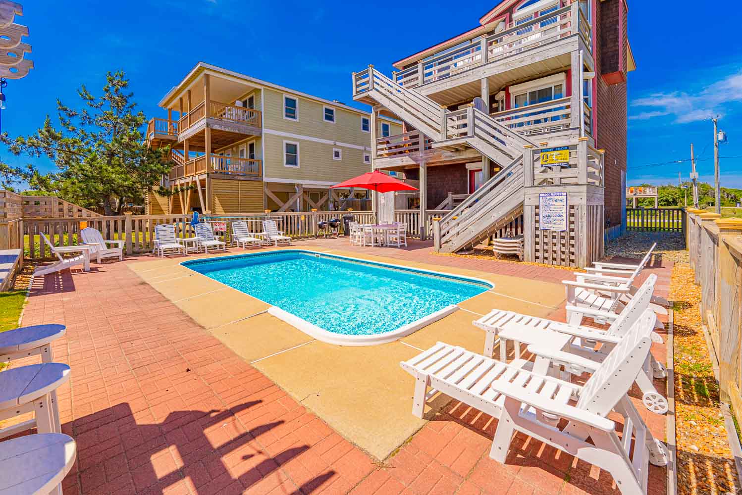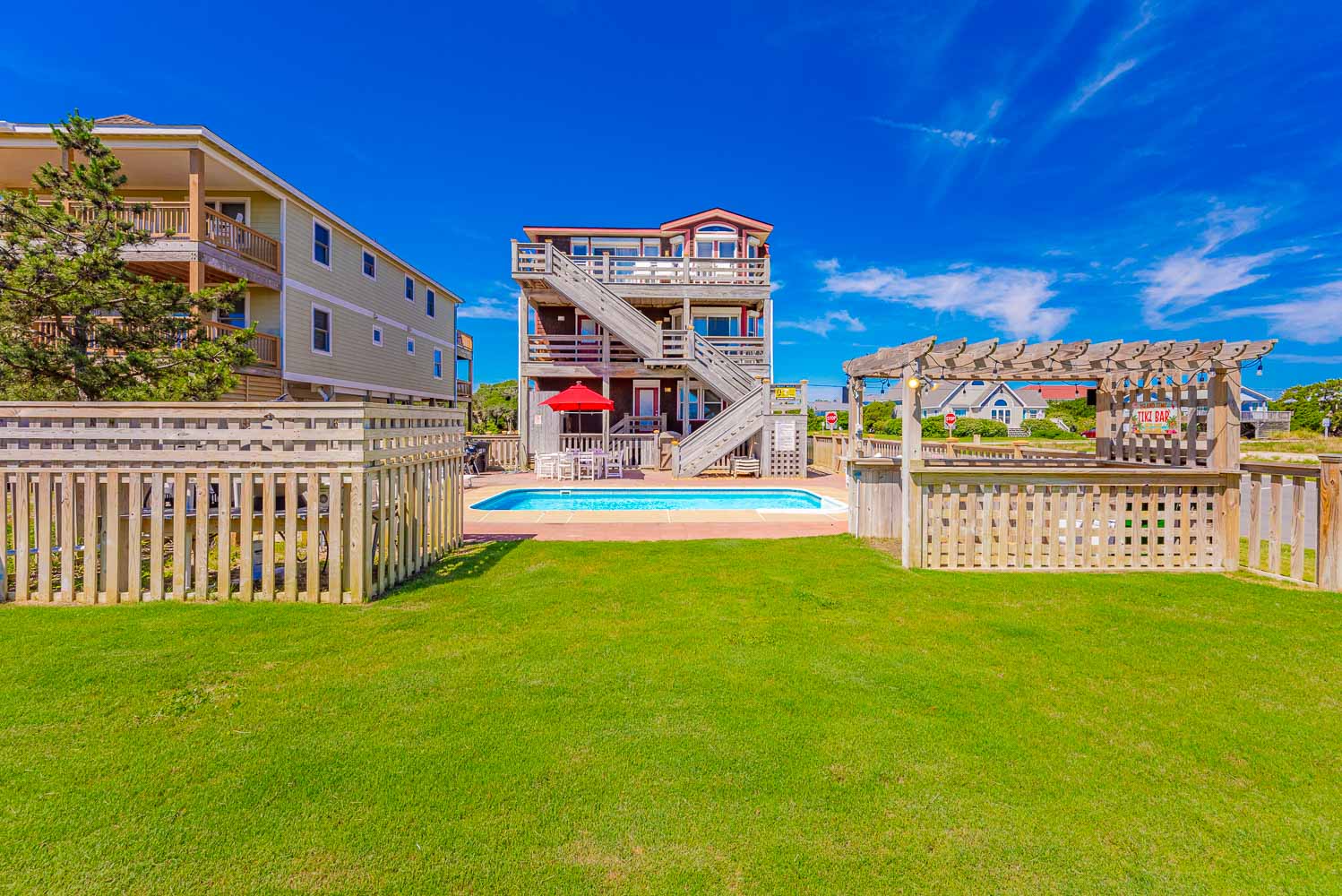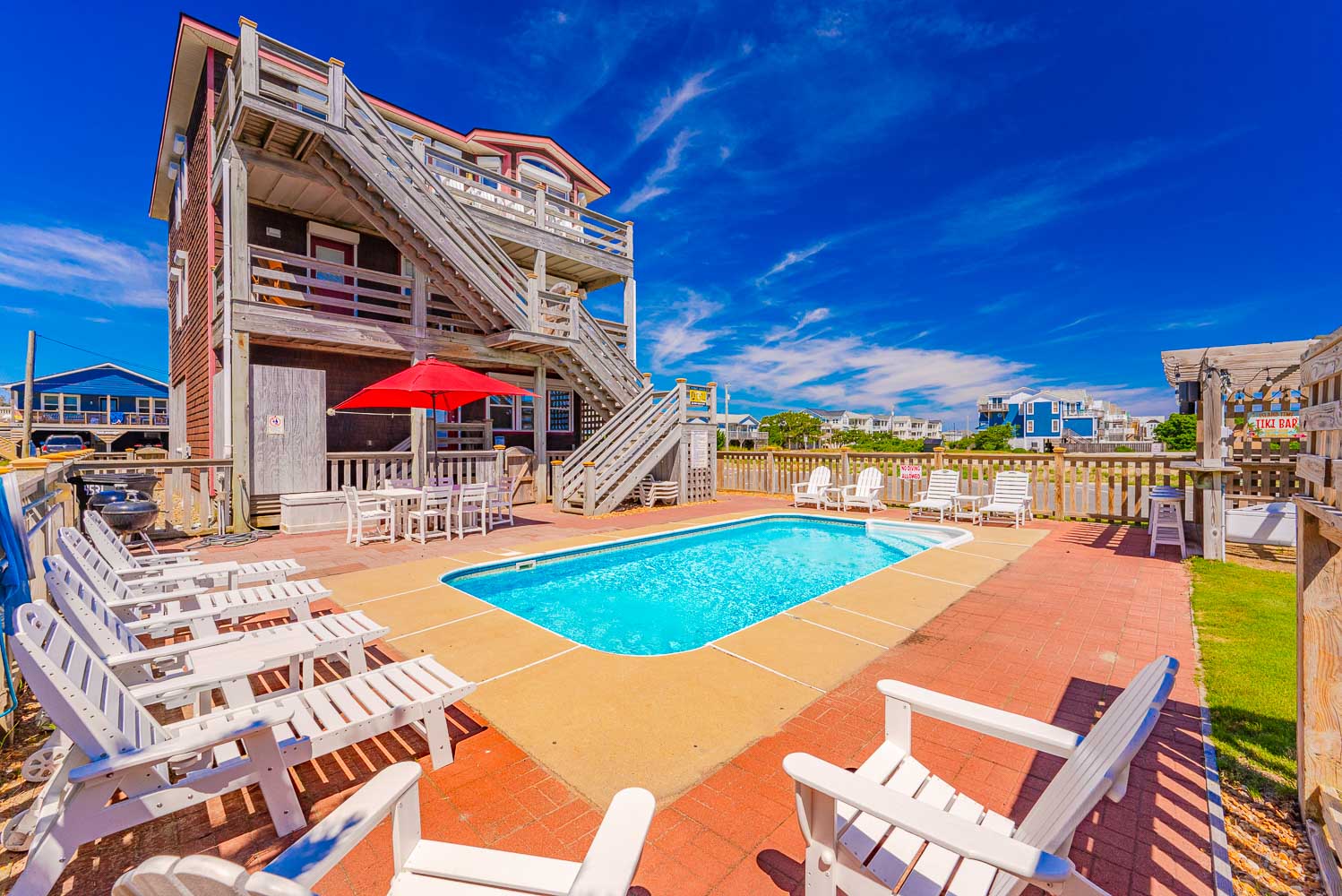 Fantastic Ocean Views await from this Gorgeous Beach Home that Offers All You & Your Family Could Want for the Perfect Vacation. Take a Dip in Your Own Private Pool - Open Seasonally, relax in the Hot Tub or Take a Stroll on the Beach (Only 300 Ft. Away & About a Minute's Walk) or sit on the multiple decks in or out of the sun. The newly Expanded Pool Deck w/Tiki Bar and fenced lawn area make an outdoor living space you will be sure to love!