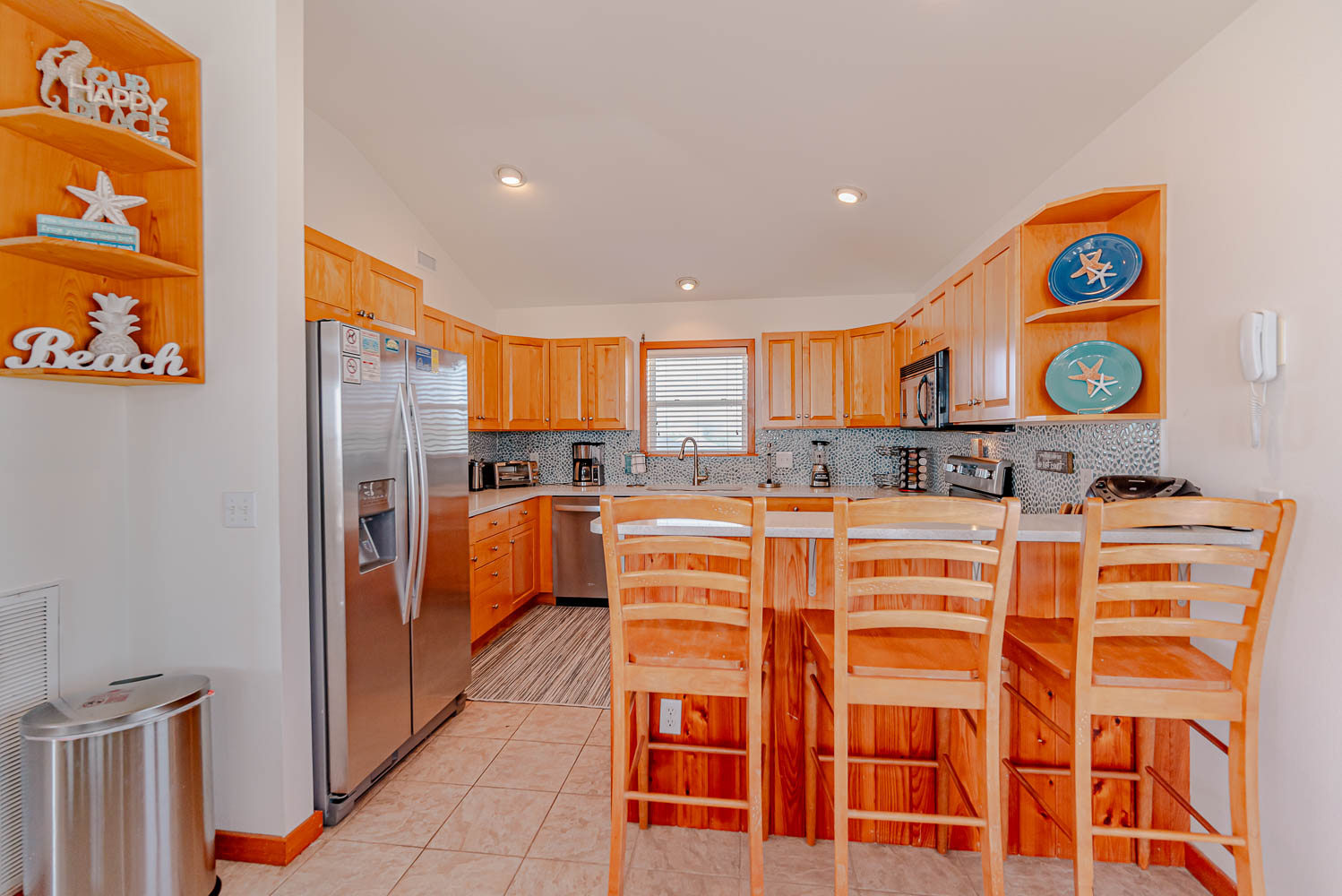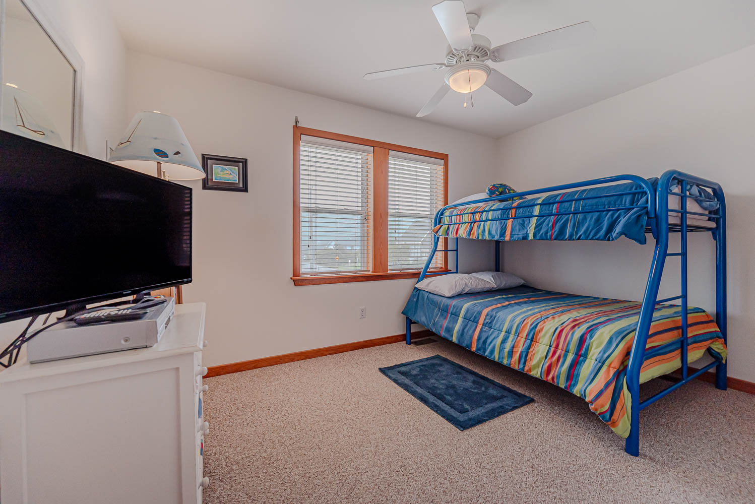 Mid Level: 3 Bedrooms (Private Suite w/King, Flat Screen TV, DVD, Full Bath, & Access to Oceanfront Deck w/Great Views, 1 w/Queen, Flat Screen TV, DVD, & Access to Covered Deck, & 1 w/Duo Bunk, Flat Screen TV, & DVD) & Full Bath.