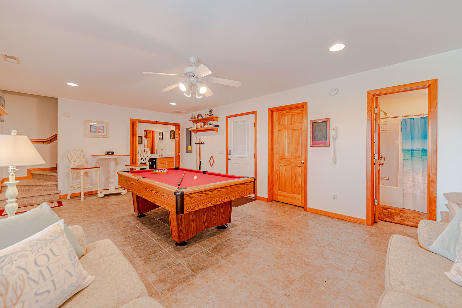 Ground Level: Parking, Steps to Entry, Rec. Room w/Pool Table, 50 Inch Flat Screen TV, DVD, Stereo w/CD, Wet Bar w/Mini Refrigerator, Full Bath, Laundry Area, Access to Patio Area w/Picnic Table, Private Swimming Pool - Open Seasonally (Can Be Heated for $250.00 Per Week, Plus Tax, Hot Tub, Enclosed Outside Shower, & Charcoal Grill.