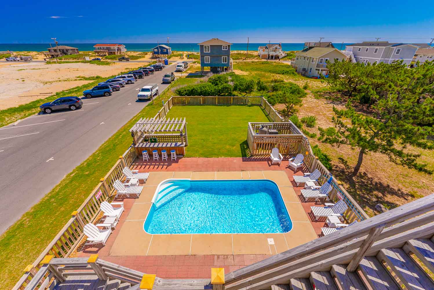 Fantastic Ocean Views await from this Gorgeous Beach Home that Offers All You & Your Family Could Want for the Perfect Vacation. Take a Dip in Your Own Private Pool - Open Seasonally, relax in the Hot Tub or Take a Stroll on the Beach (Only 300 Ft. Away & About a Minute's Walk) or sit on the multiple decks in or out of the sun. The newly Expanded Pool Deck w/Tiki Bar and fenced lawn area make an outdoor living space you will be sure to love!