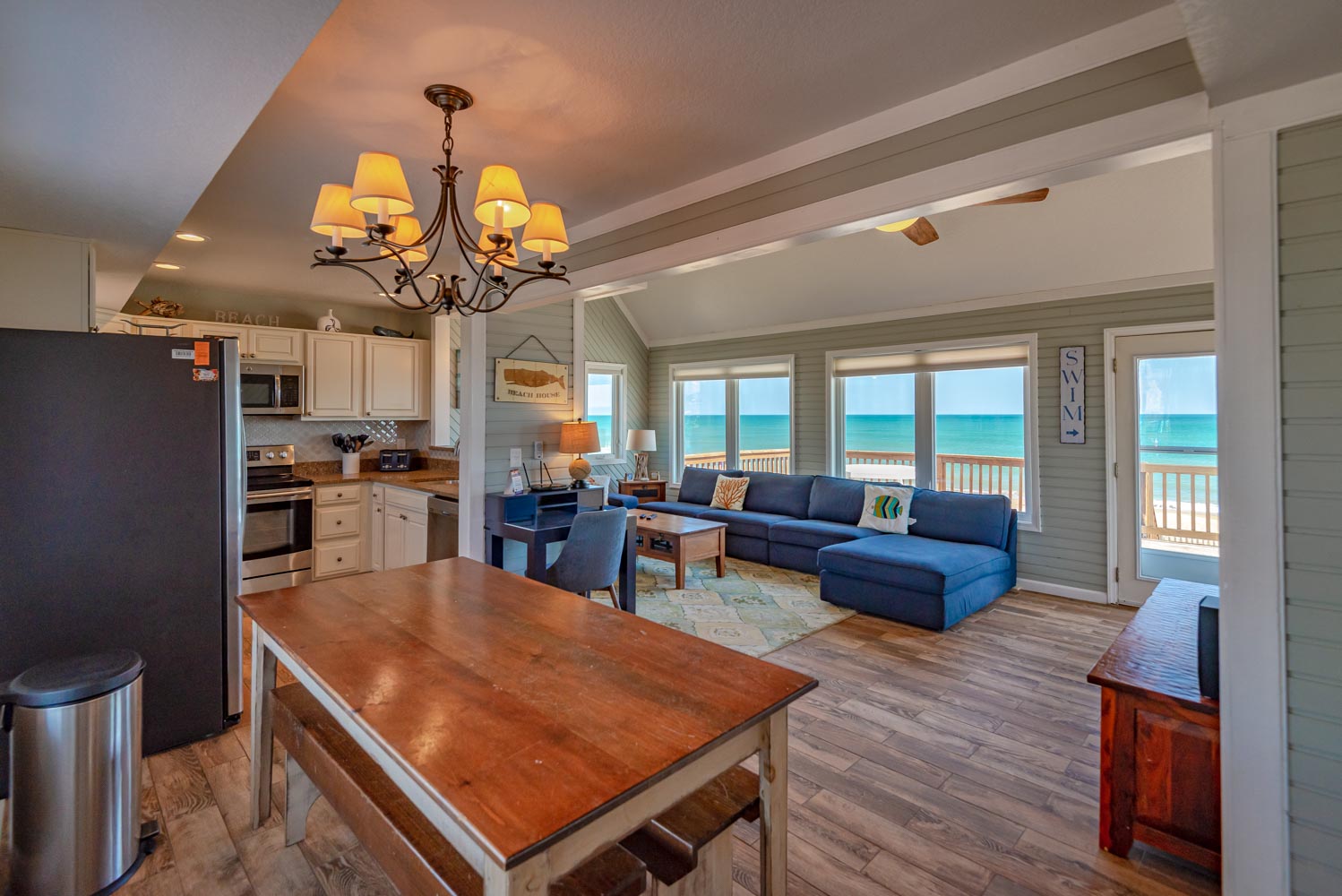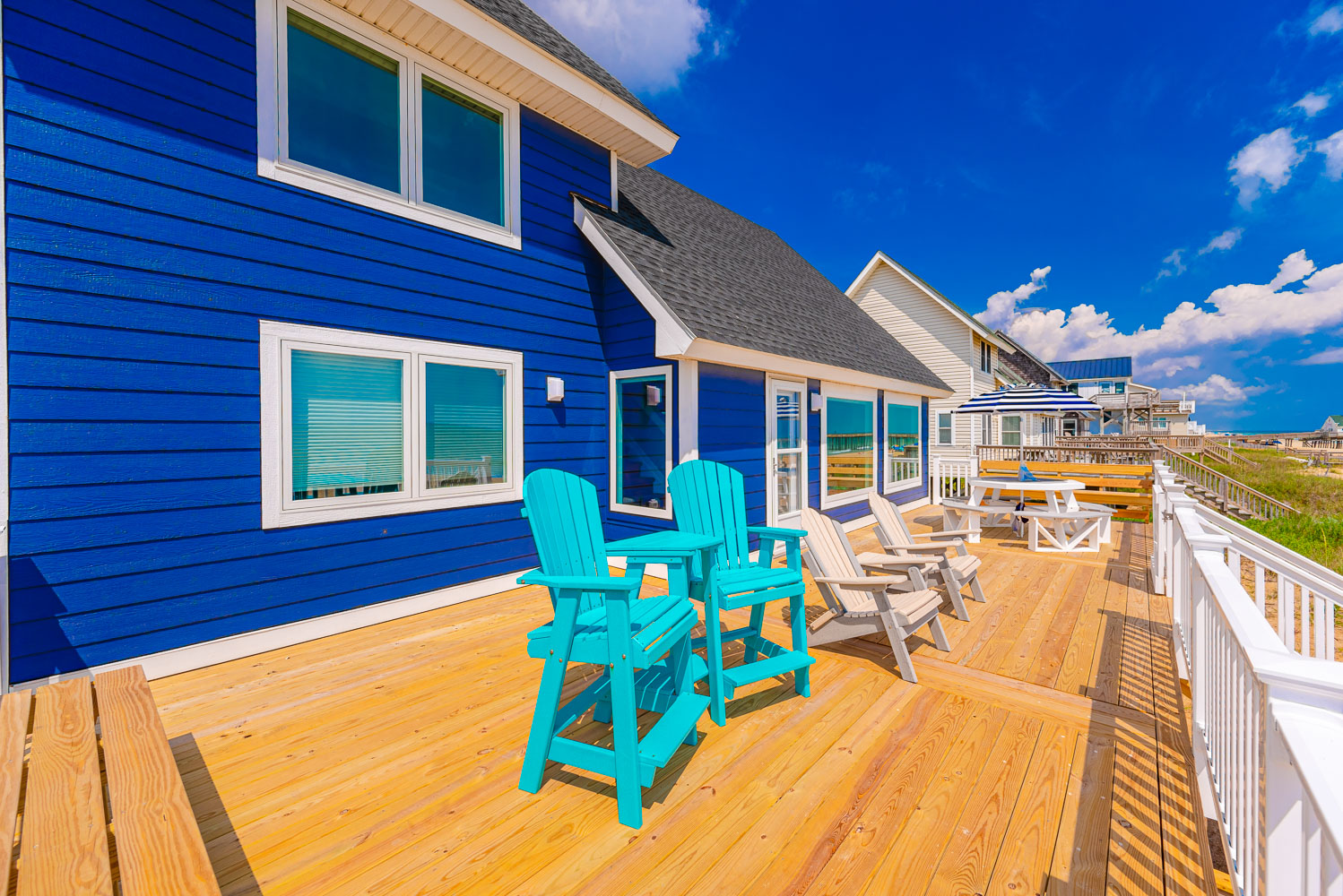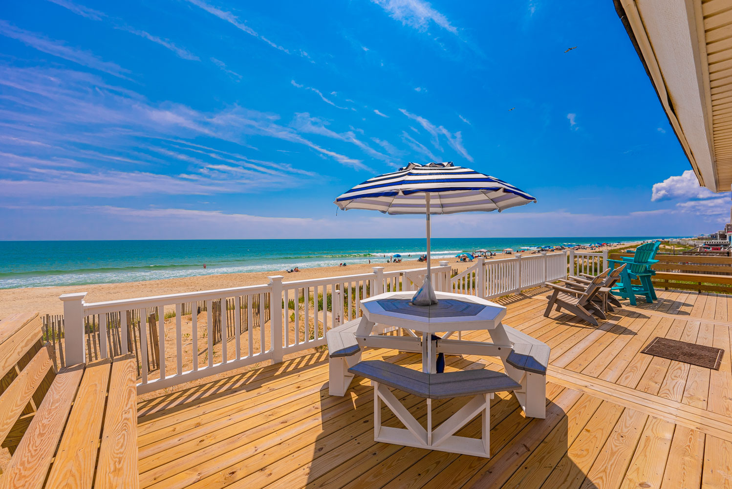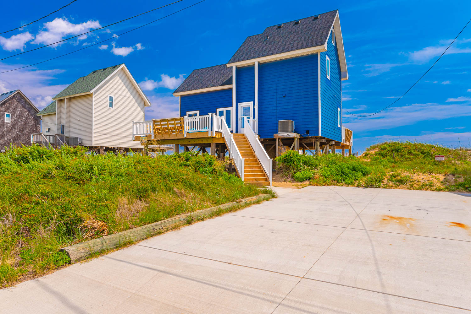 Mid Level: Warm, Cozy Living/Dining/Kitchen Area, 50 Inch Plasma HDTV, Netflix, DVD, Stereo, Bedroom w/2 Queens, TV; Full Bath w/Tub/Shower, Laundry Area, and Large Oceanfront Gated Sun Deck w/Deck Furniture (approx. 12 x 40 ft.), Steps to Beach, Outstanding Ocean Views, and Front Gated Sun Deck w/Built-In Seating.