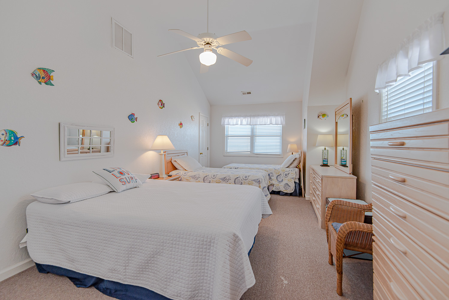 Top Level: 2 Private Suites (1 w/King, Flat Screen TV, and Full Bath w/Vanity and Tub/Shower and 1 w/Queen w/2 Singles, Flat Screen TV, and Full Bath w/Tub/Shower), and Great Ocean and Beach Views.