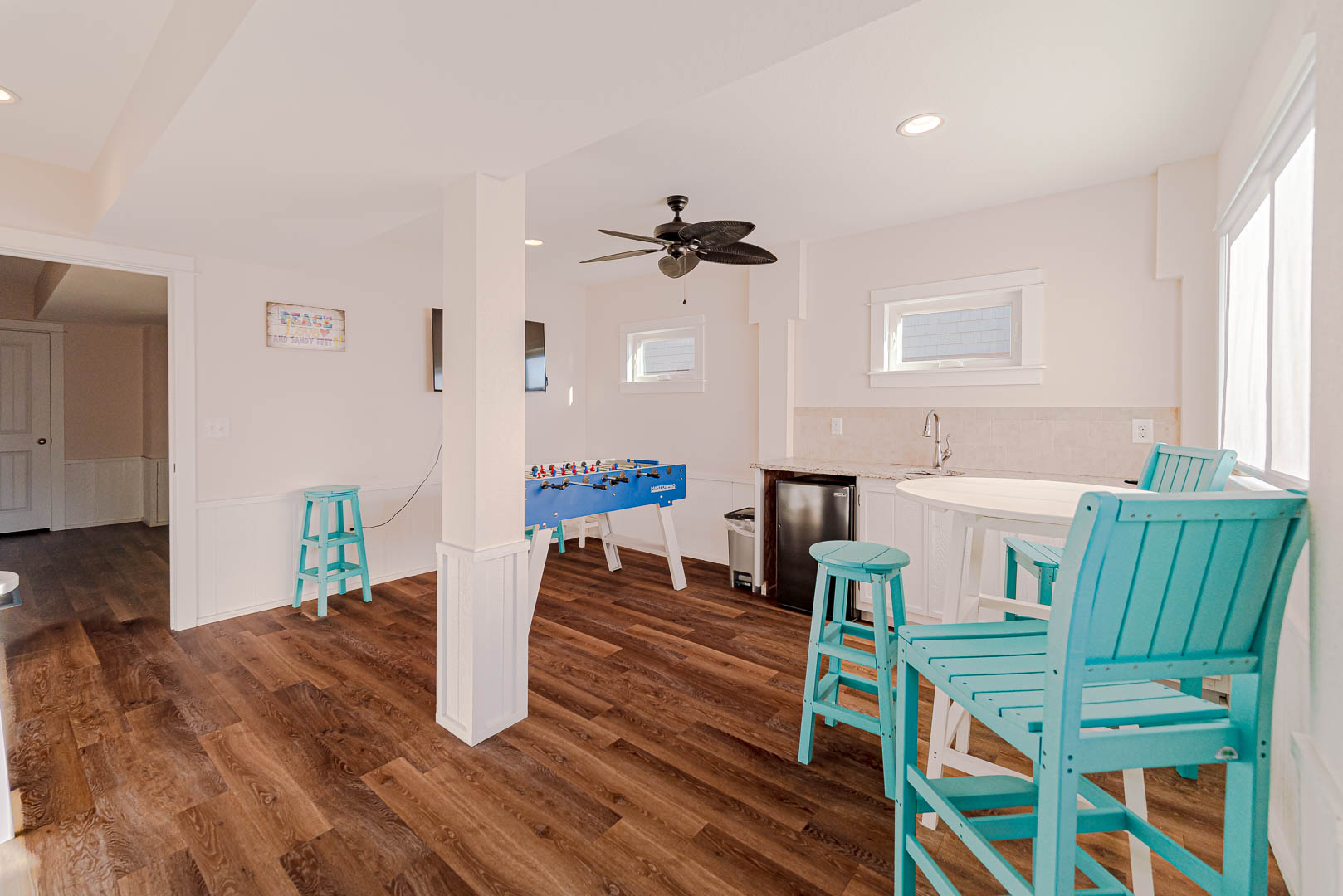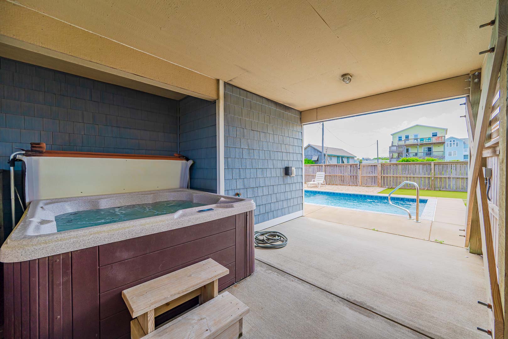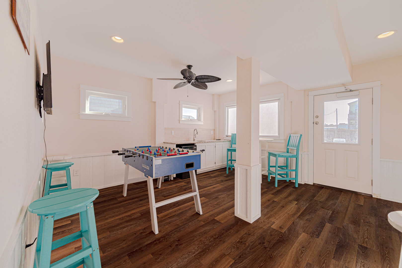Ground Level: Parking for 4 Cars, Covered Entry, Elevator to All Levels, Small Rec. Room w/Foosball Table, Sitting Area w/TV, Beverage Cooler, Half Bath (Rec. Room Area NOT Air Conditioned), and Access to Enclosed Outside Shower, Private Swimming Pool - Open Seasonally, Hot Tub, and 3 Hole Putting Green.