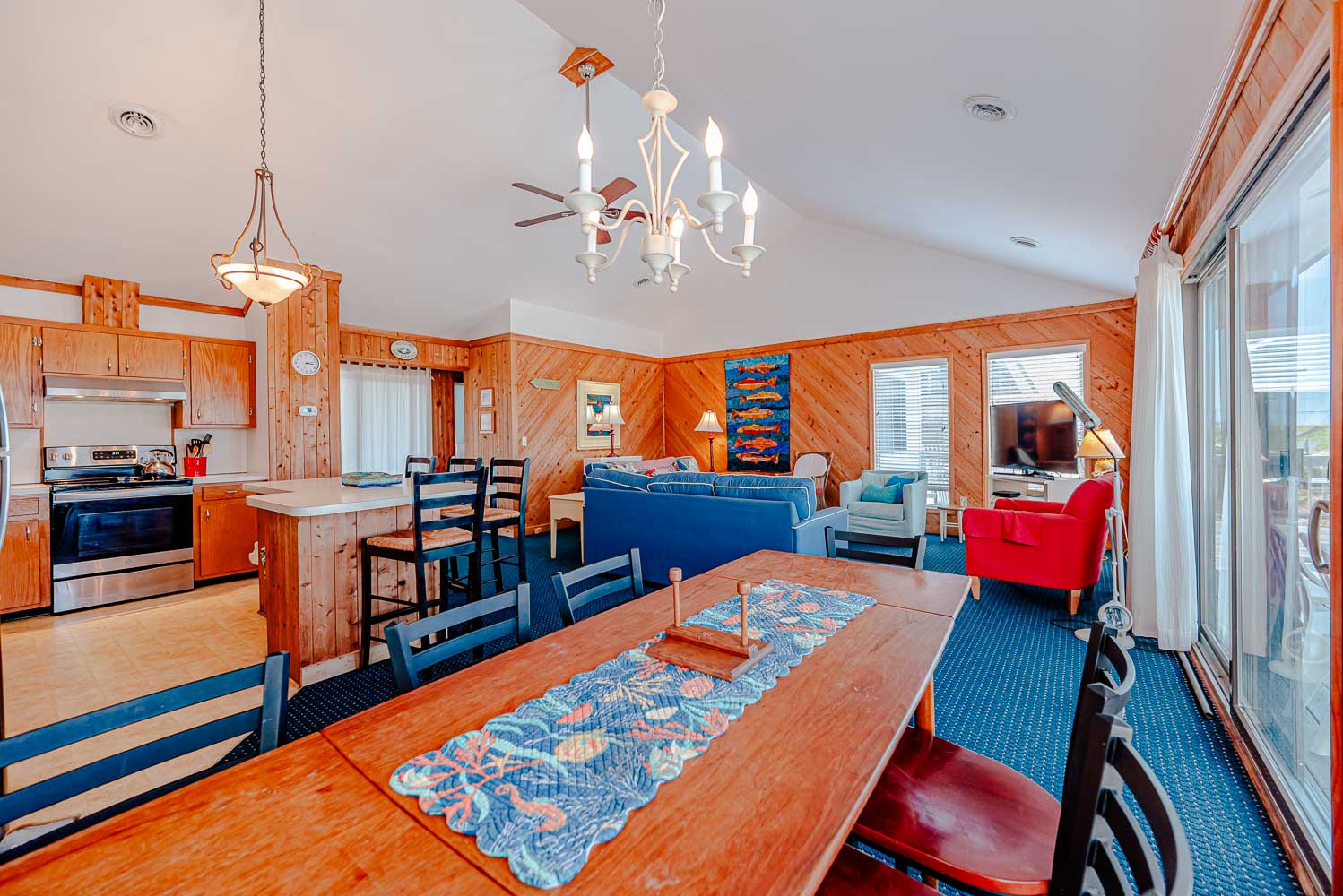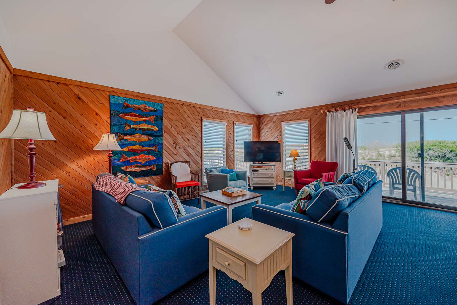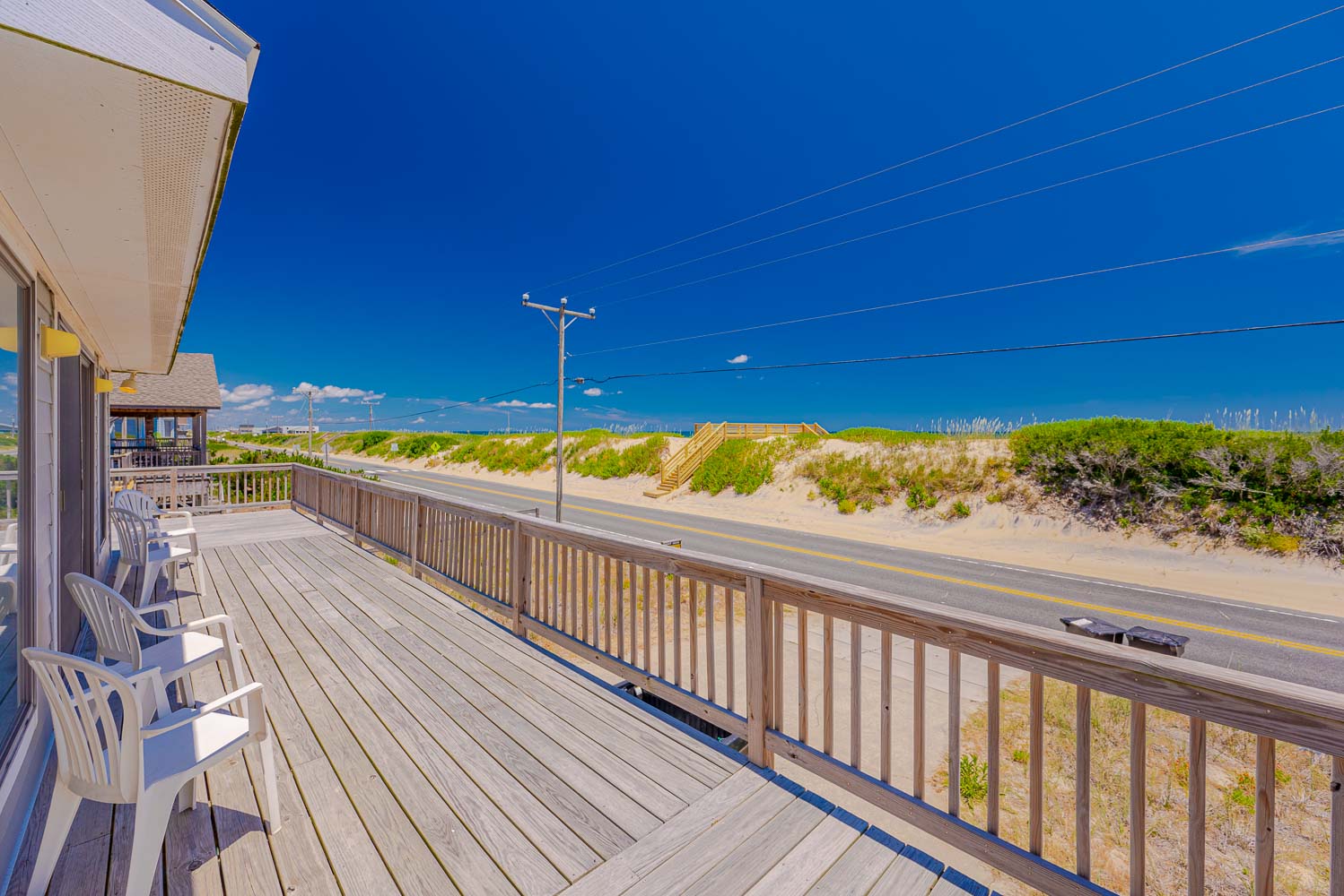 Main Level: Living/Dining/Kitchen Area, TV, 4 Bedrooms (1 w/Queen & TV, 1 w/2 Singles, Full Hall Bath w/Tub/Shower, 1 w/Queen & TV, & 1 w/2 Singles, Full Hall Bath w/Tub/Shower), Laundry Area, & Sun Deck w/Deck Furniture & Ocean Views.