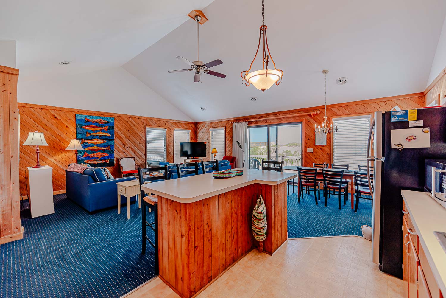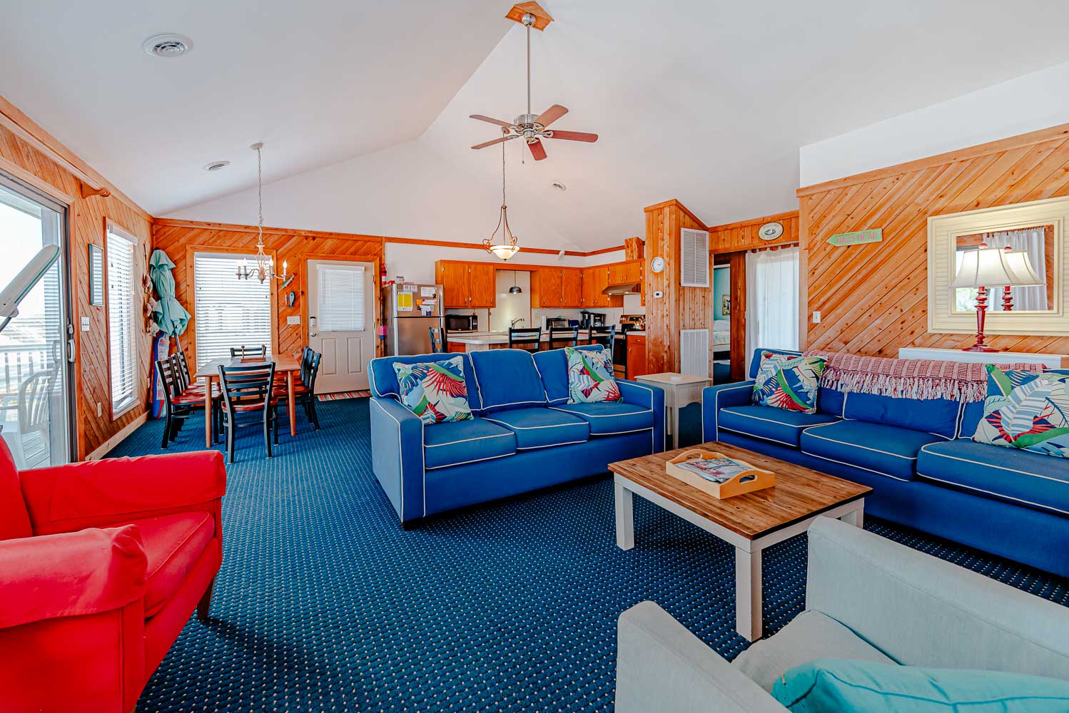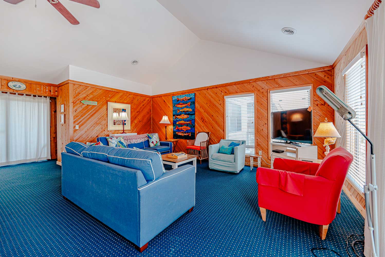 Main Level: Living/Dining/Kitchen Area, TV, 4 Bedrooms (1 w/Queen & TV, 1 w/2 Singles, Full Hall Bath w/Tub/Shower, 1 w/Queen & TV, & 1 w/2 Singles, Full Hall Bath w/Tub/Shower), Laundry Area, & Sun Deck w/Deck Furniture & Ocean Views.