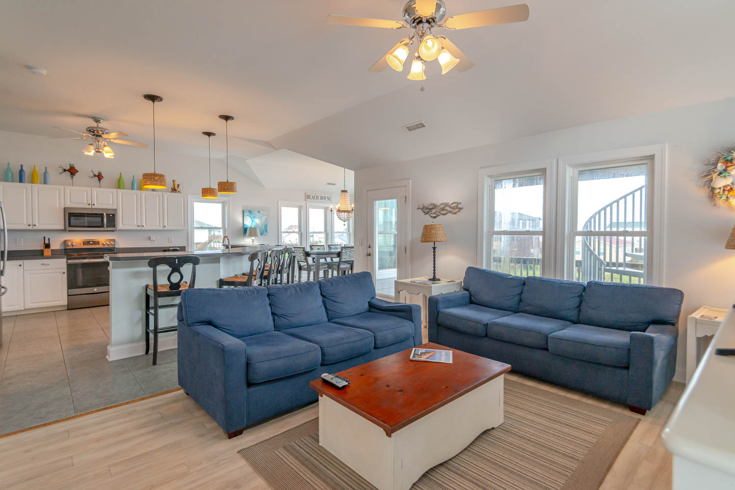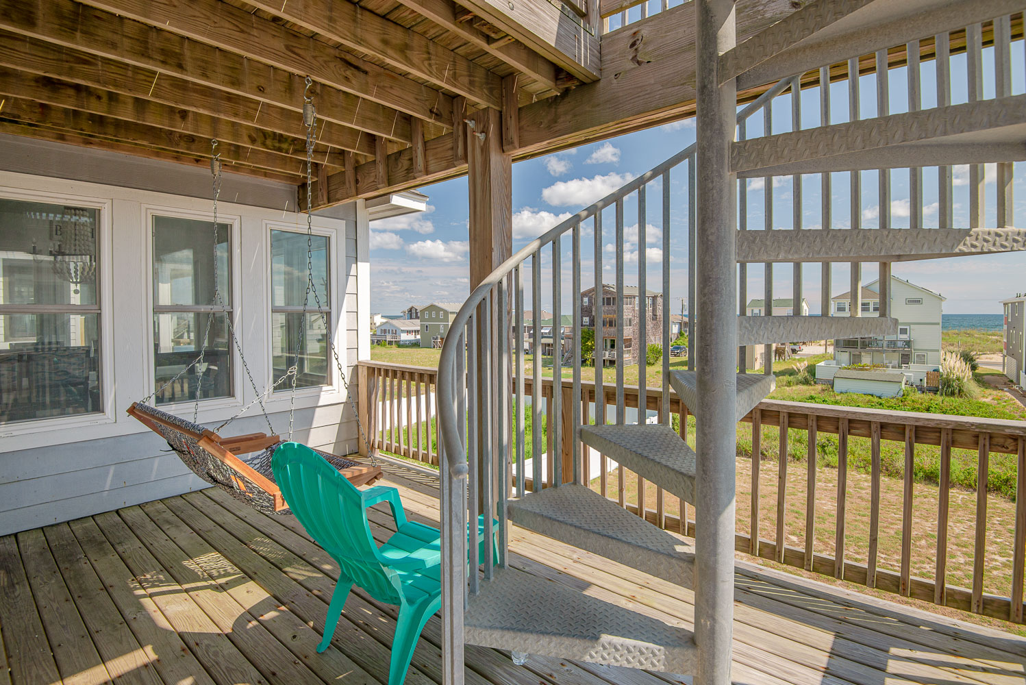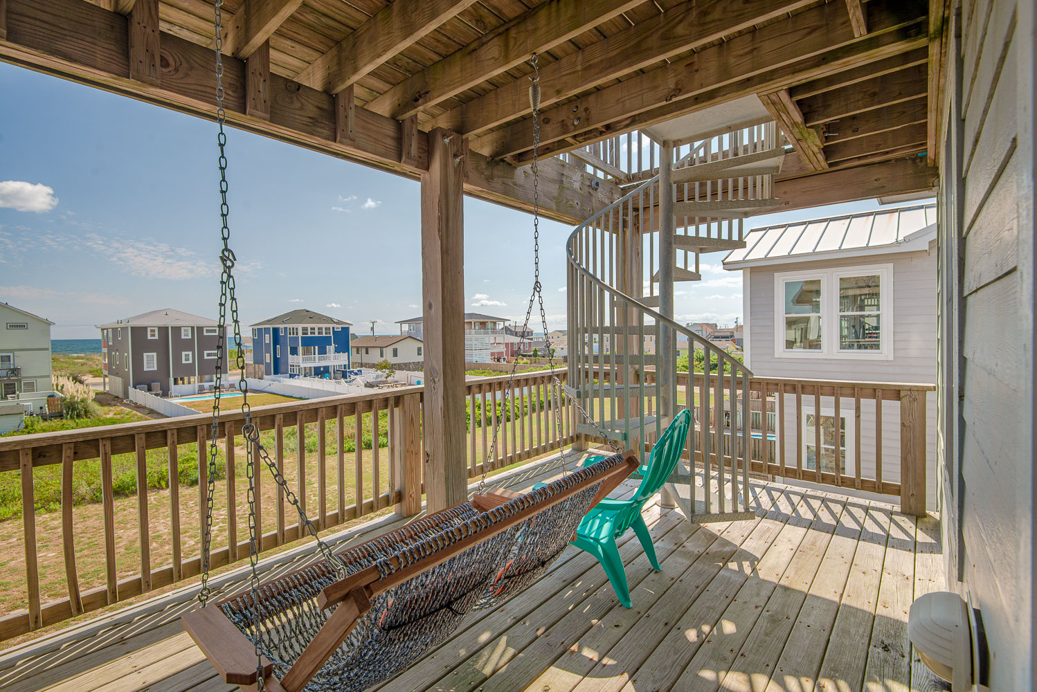 Top Level: Living/Dining/Kitchen Area, TV, DVD, Stereo, Ocean Views, Fully-Stocked Kitchen w/Pots/Pans, Keurig & Regular Coffee Makers, Blender, Bakeware, Mixer, & Crockpot, Half Bath, Private Suite w/King, TV, & Full Bath, Covered Deck w/Hammock Swing, & Observation Deck.