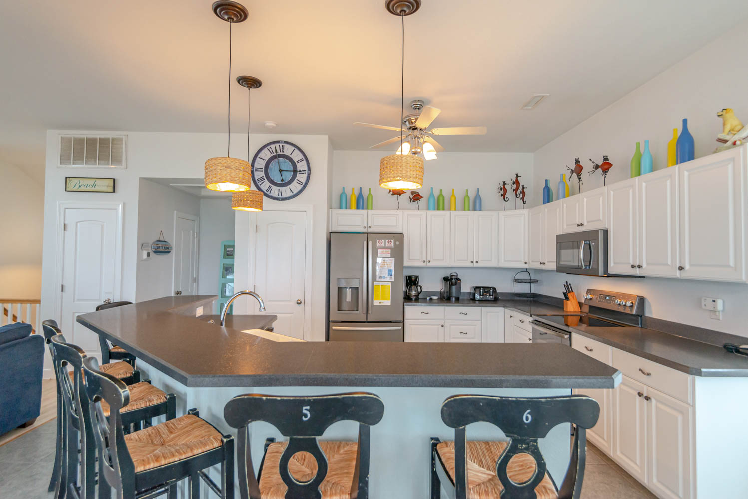 Features include: C/AC & Heat, Washer/Dryer, Dishwasher, Microwave, Phone, 6 TVs, DVD, Stereo w/CD, Wireless Internet, Ceiling Fans, Hair Dryers, Hammock Swing, Deck & Pool Furniture, & Ocean Views. No Pets. This is a Non-Smoking Unit.