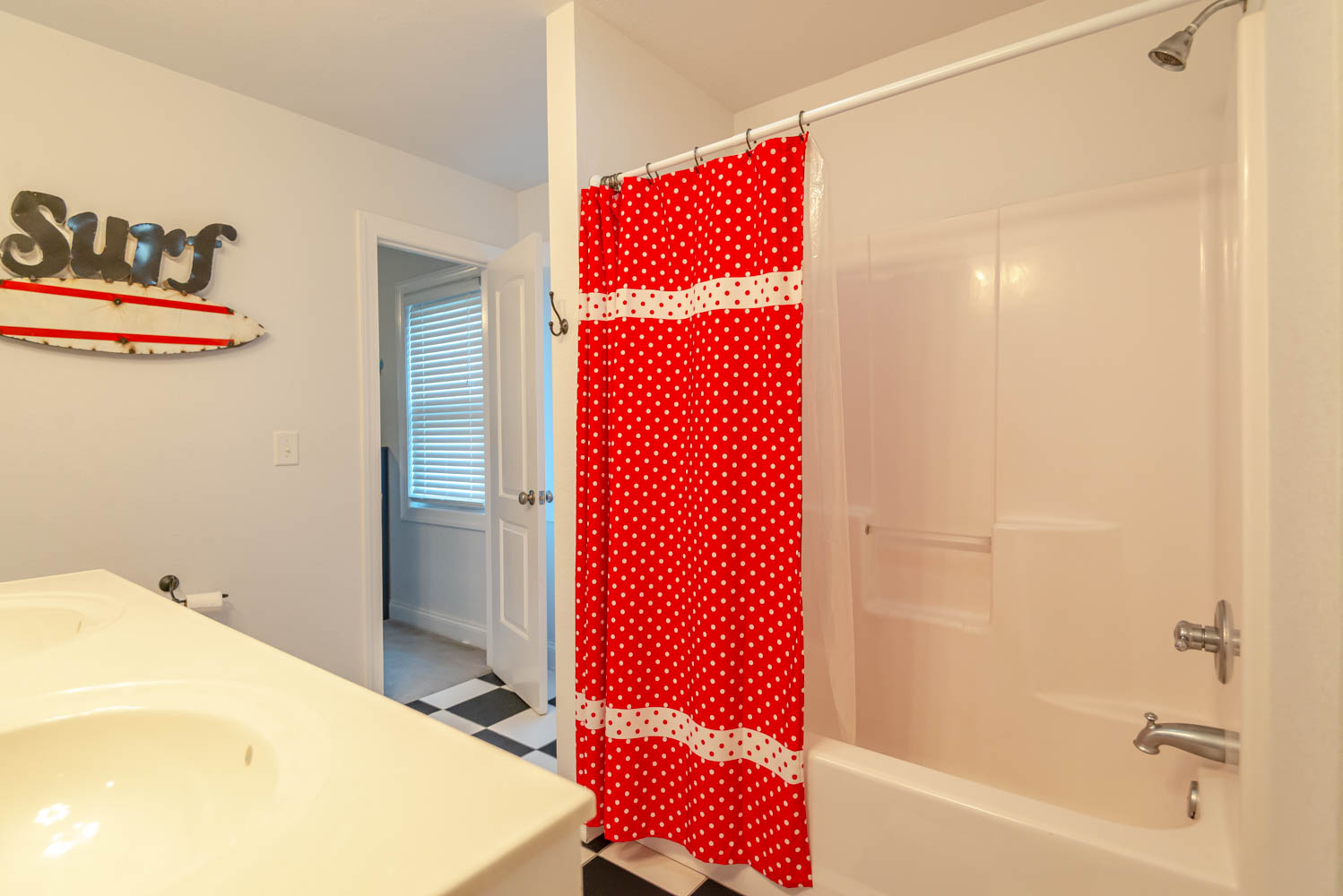 Mid Level: 3 Bedrooms (Priavte Suite w/Queen, TV, & Full Bath, 1 w/King & TV, & 1 w/Duo Bunk w/Trundle & TV), Shared Full Bath, & Covered Deck Overlooking Pool.
