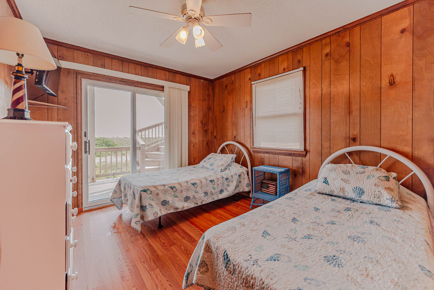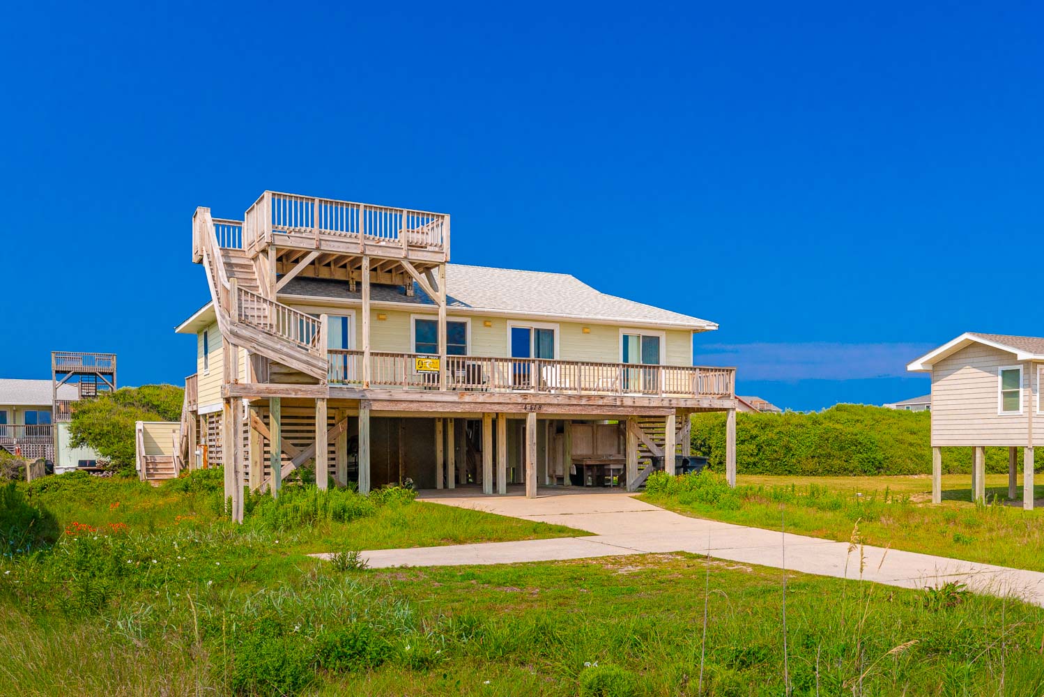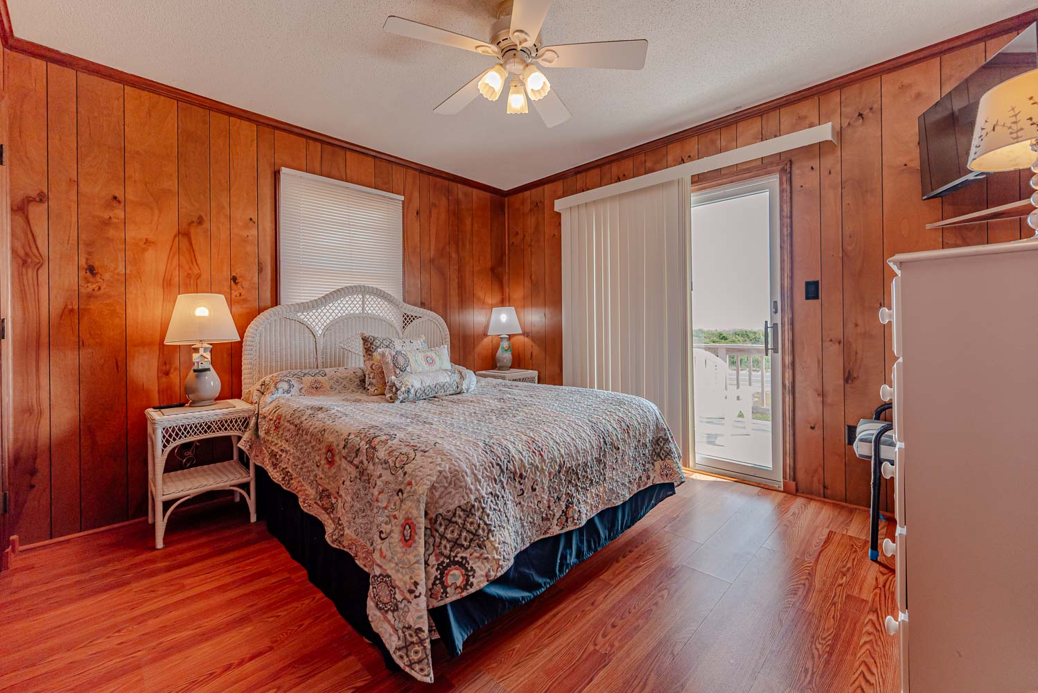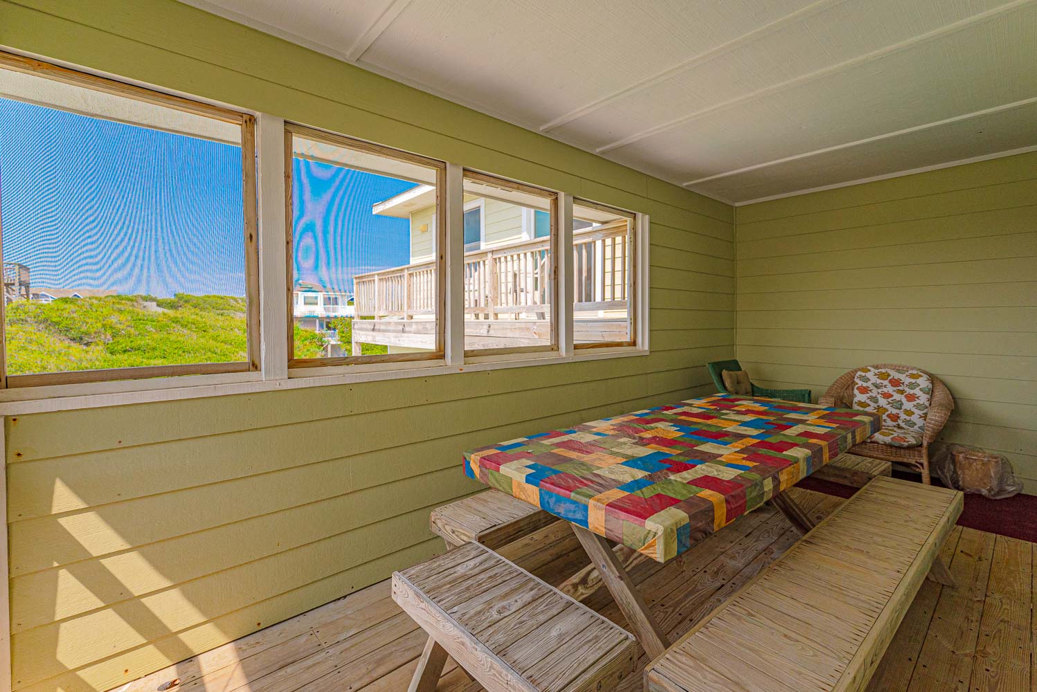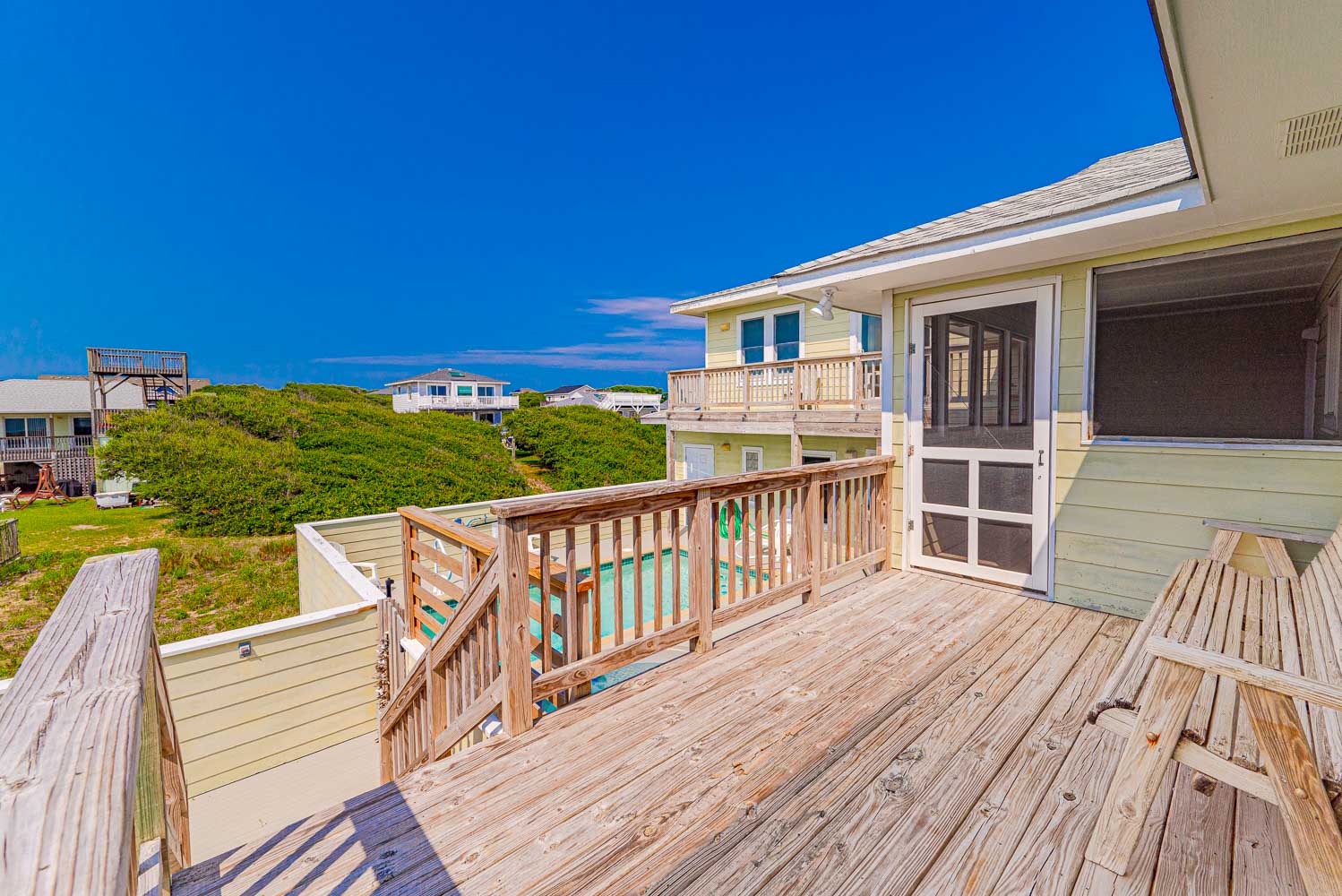 Level Two: Living/Dining/Kitchen Area, Fantastic Ocean Views, TV, DVD, Stereo w/CD, 3 Bedrooms (Private Suite w/Queen, TV, Full Bath; 1 w/2 Singles; 1 w/Double, Single), Full Bath, Screened Porch w/Picnic Table, and Sun Deck w/Steps to Observation Deck.