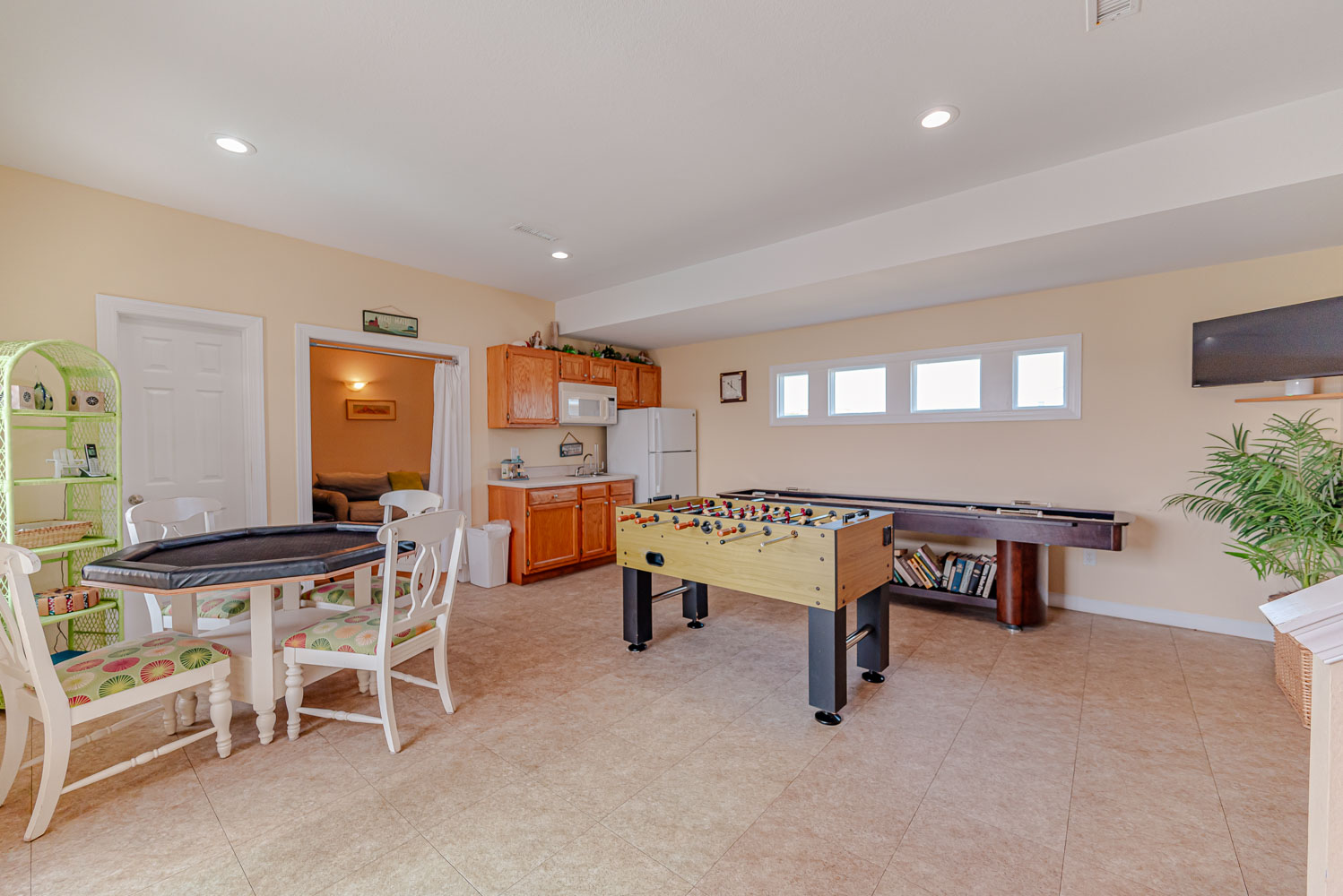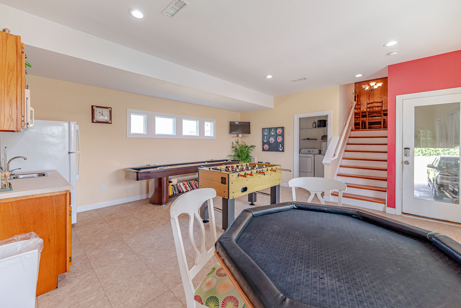 Level One: Covered Entry, Rec. Room, Air Hockey, Foosball (Being Removed for 2026), Card/Gaming Table, Wet Bar, Full Size Refrigerator, TV, Laundry Area, Small Theater Room, TV, DVD, Half Bath, and Access to Patio Area, Private Swimming Pool - Open Seasonally, and Hot Tub.