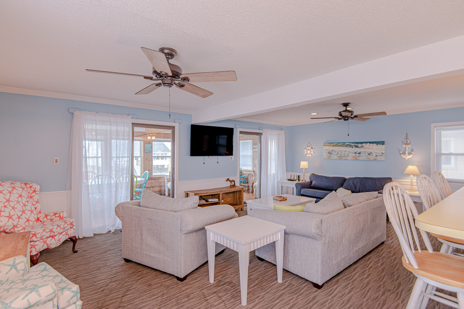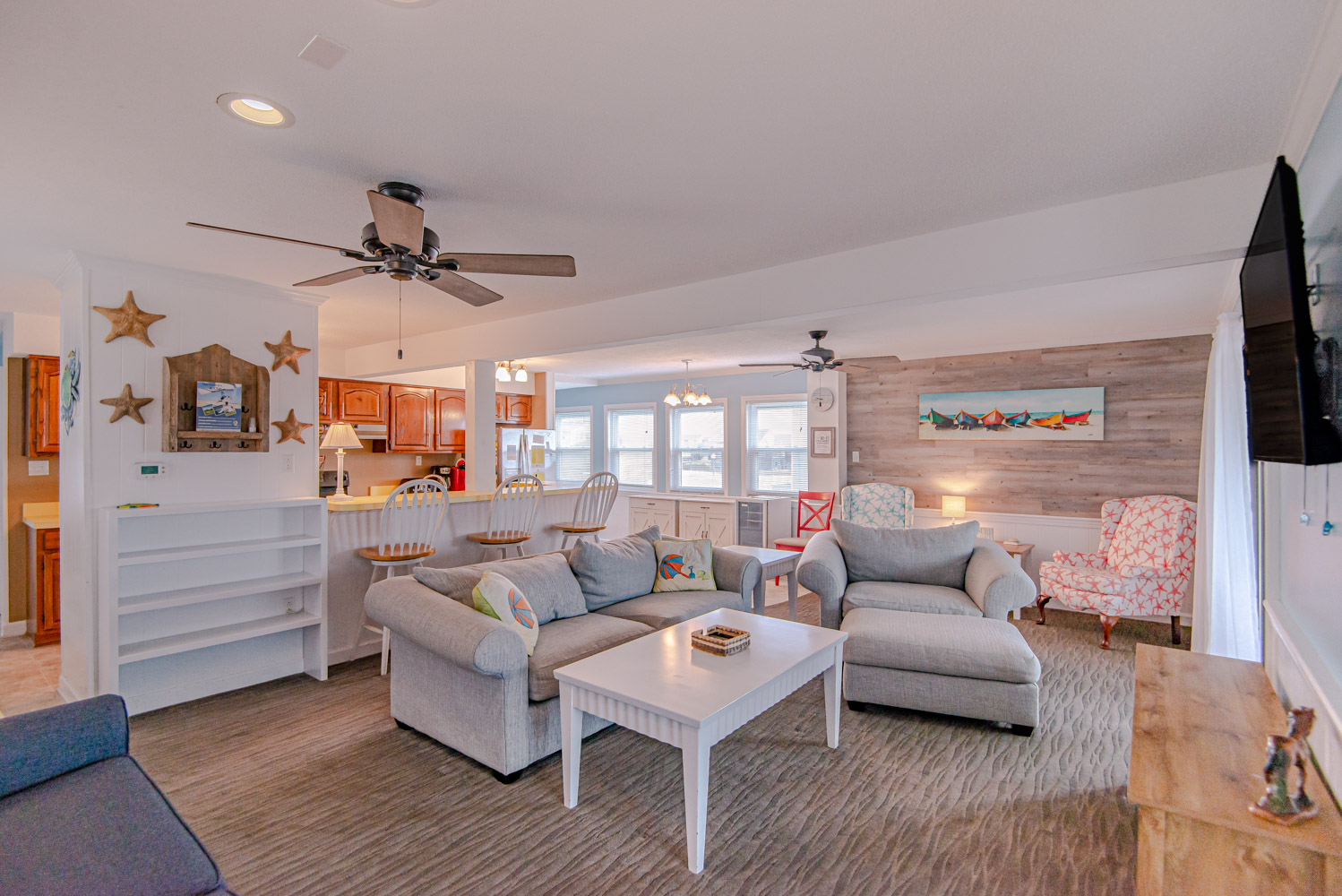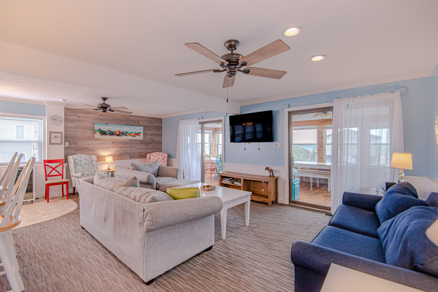 Mid Level: Living/Dining/Kitchen Area, Large Flat Panel TV, Sun Room, Ocean Views, 2 Bedrooms (1 w/Queen, TV, & DVD & 1 w/2 Singles, TV, & DVD), Full Bath, & Sun Deck.