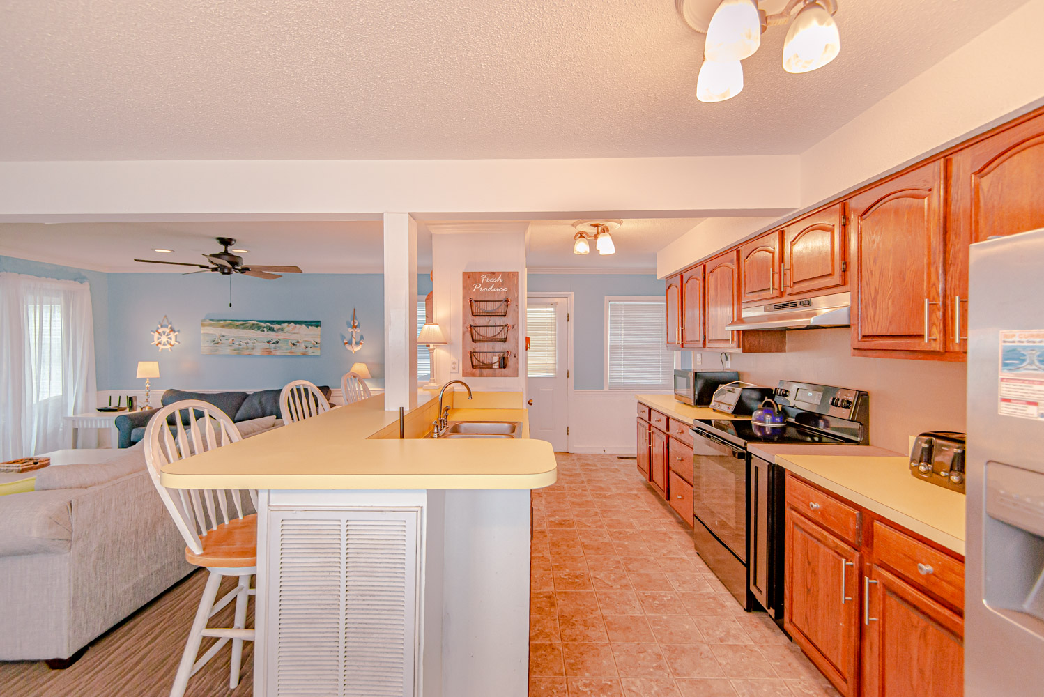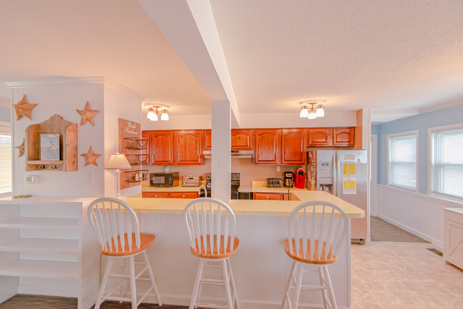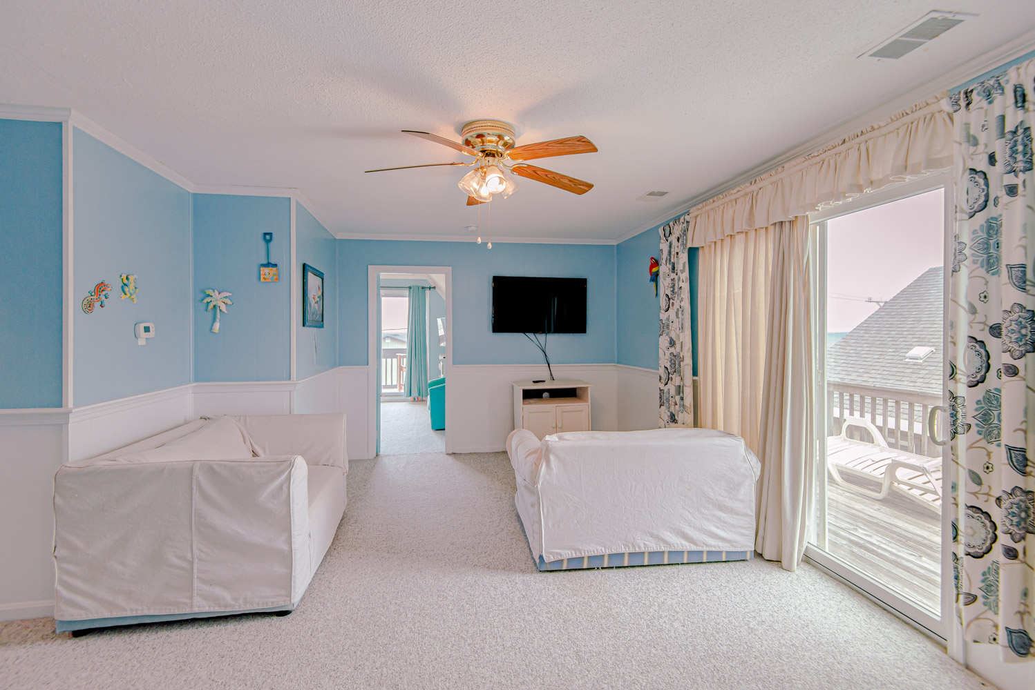 Mid Level: Living/Dining/Kitchen Area, Large Flat Panel TV, Sun Room, Ocean Views, 2 Bedrooms (1 w/Queen, TV, & DVD & 1 w/2 Singles, TV, & DVD), Full Bath, & Sun Deck.