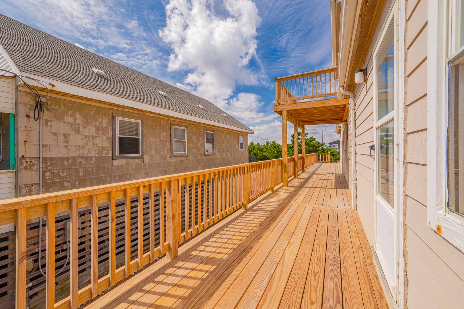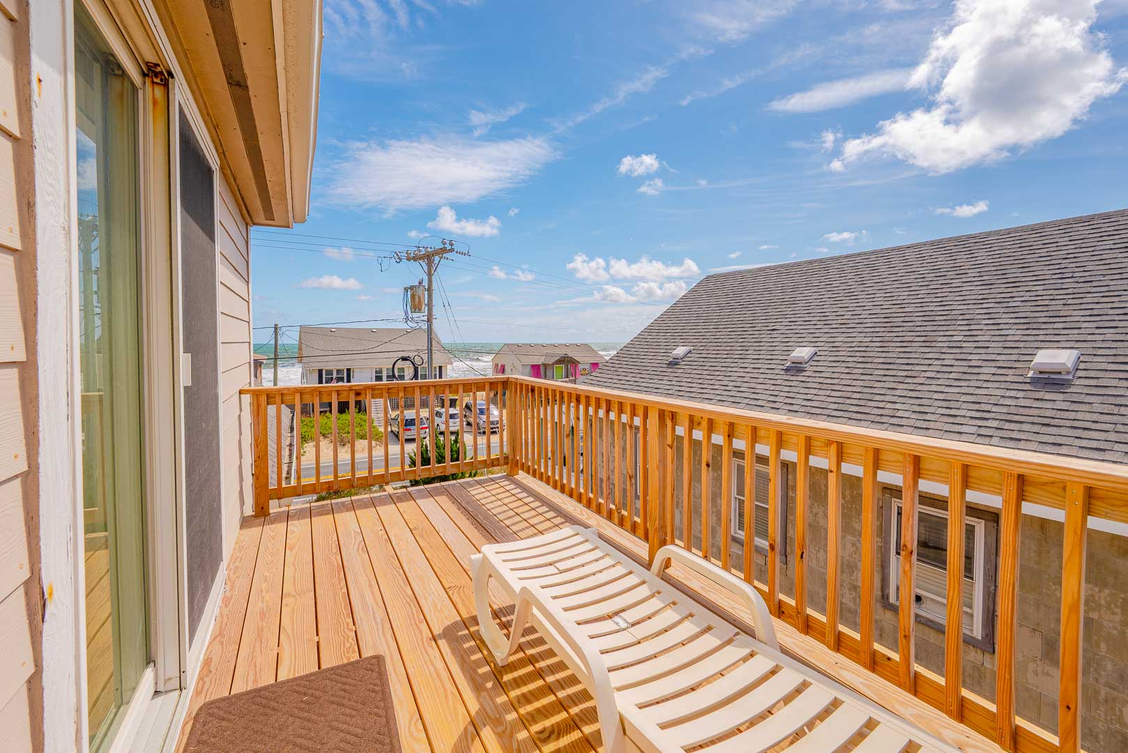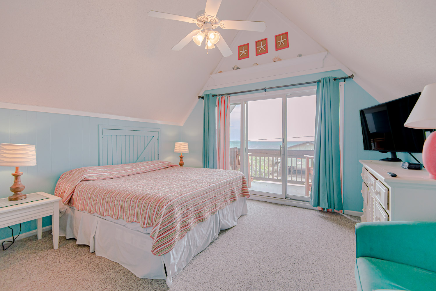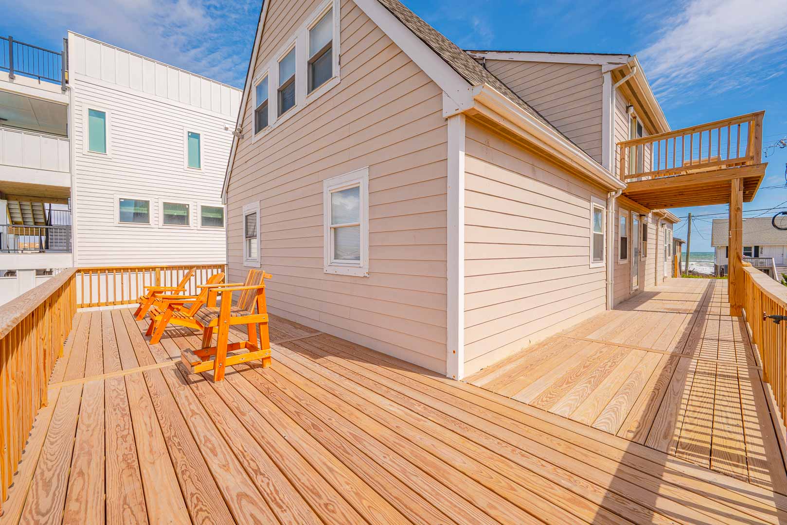 Top Level: Den, TV, DVD, Games, Puzzles, Ocean Views, 2 Bedrooms ( Private Oceanfront Suite w/King, TV, & Full Bath, & Private Suite w/Queen, Single, Single Daybed, & TV), Full Bath, & Sun Deck.