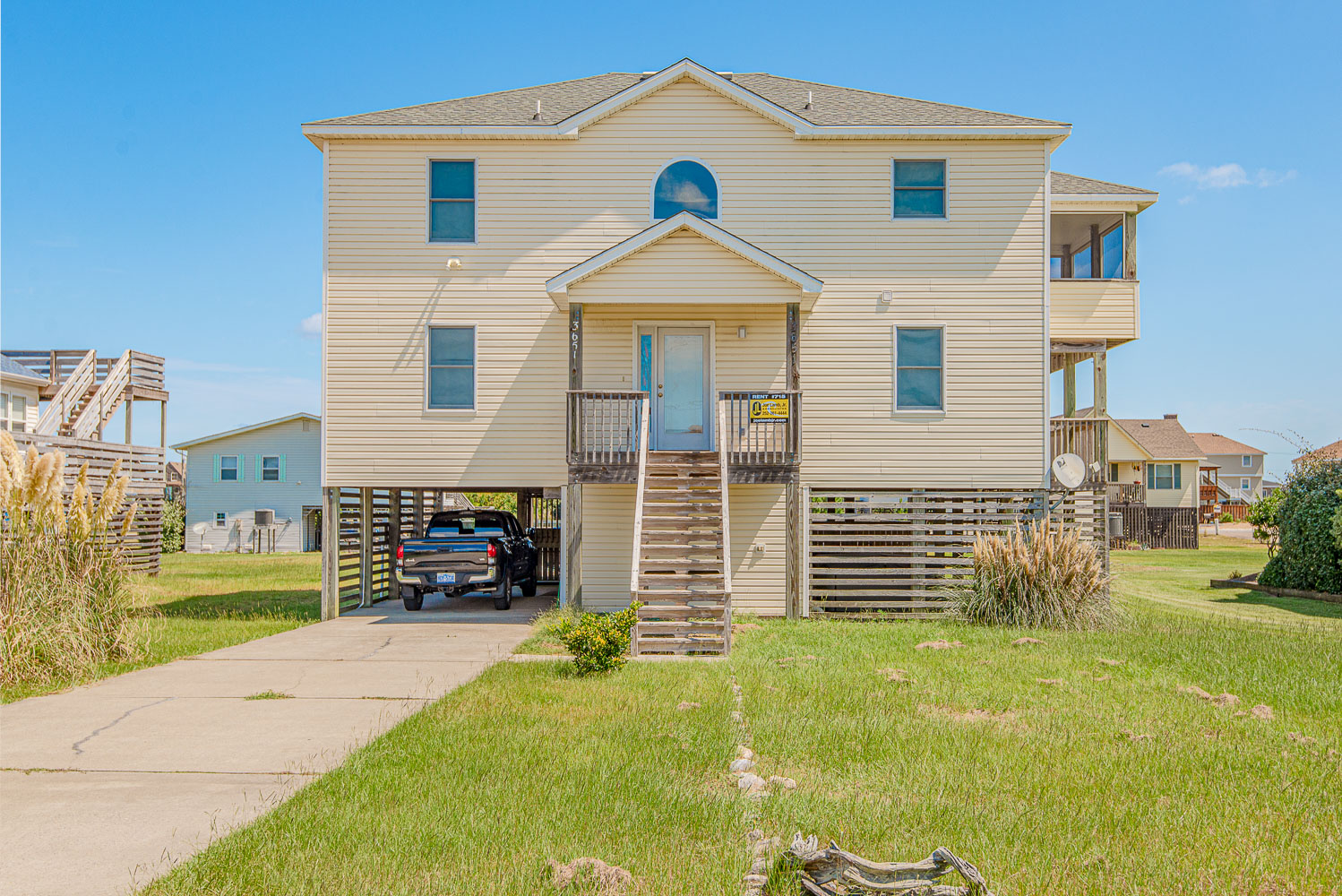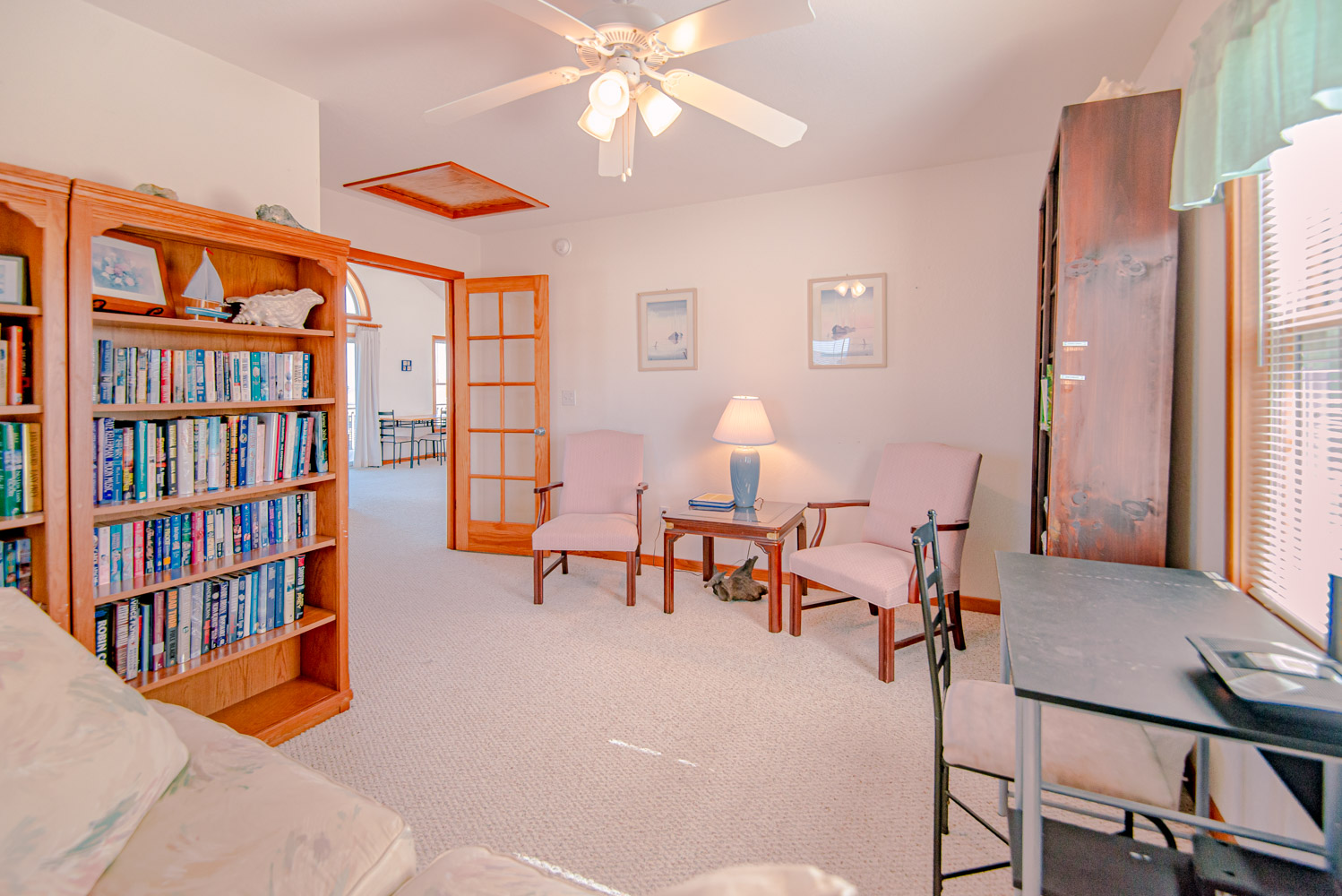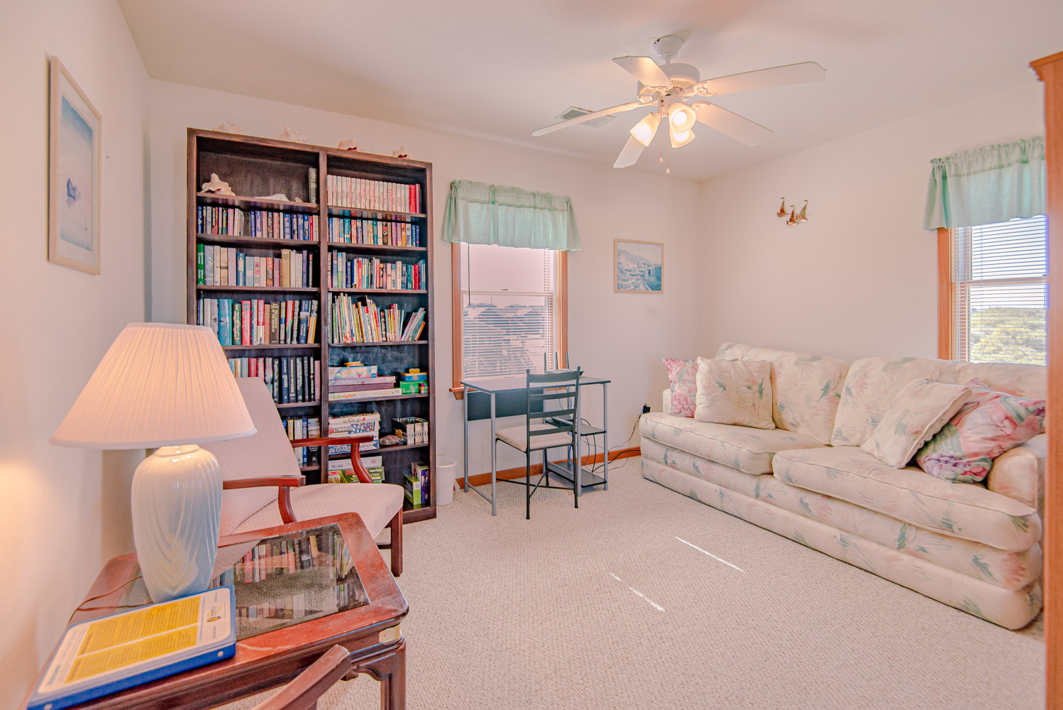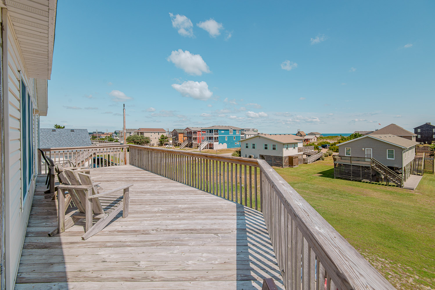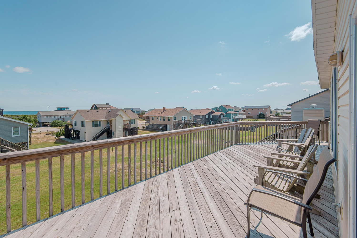 Top Level: Living Area, TV, DVD, 2 Sofa Beds, Library Area w/Sofa Bed, Dining/Kitchen Area, Half Bath, Covered Porch w/Furniture, and Sun Deck w/Great Ocean Views and Deck Furniture.