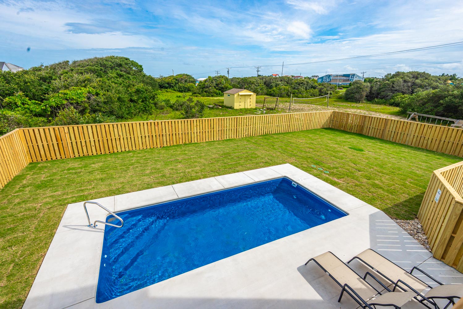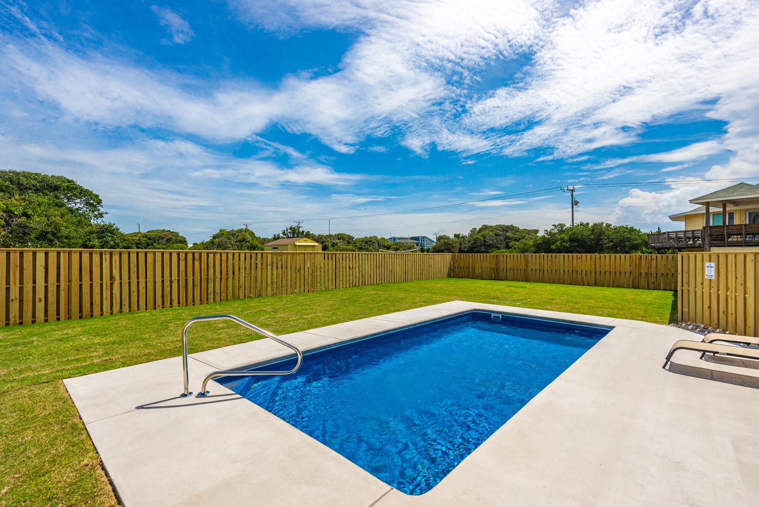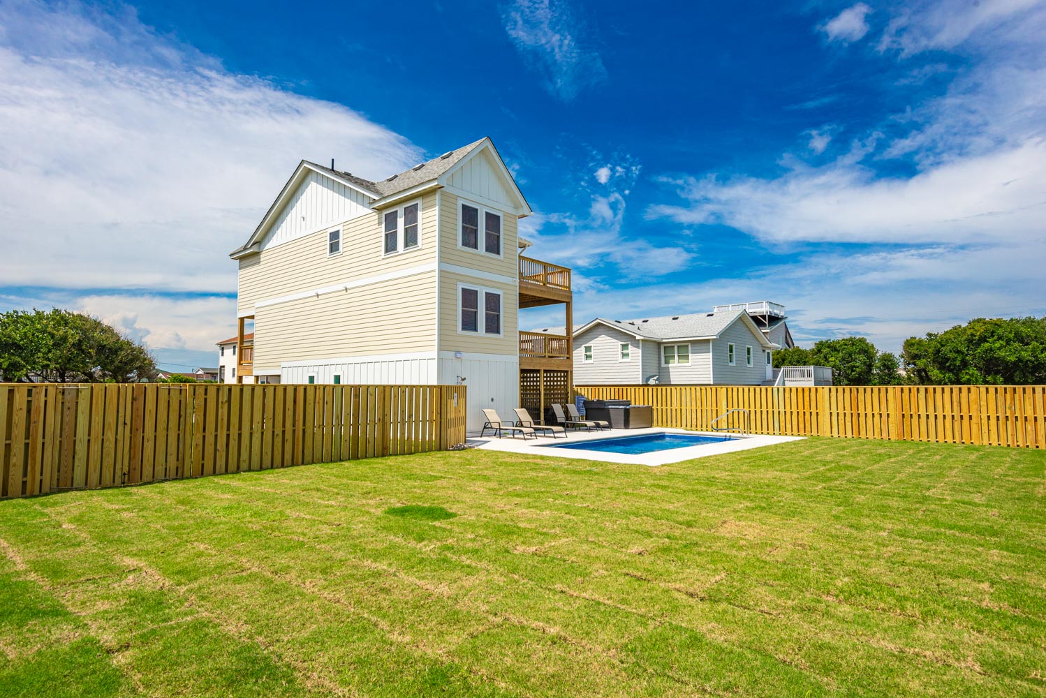 A Summer Pour is a lovely, Oceanside vacation home that offers a wide range of amenities sure to keep your family entertained! The rear yard is completely fenced and landscaped, ideal for spending time outdoors! There are three living areas that provide ample space for everyone to spread out and relax. The location in Kitty Hawk is a quiet and peaceful destination, with many local restaurants, shopping and of course splendid beaches where you can fish, surf, or just relax. The Starfish Lane beach access is a short 450 yards walk to a pedestrian dune crossover, and the Lillian St. beach access is located to the south with parking, showers, and wooden ramp crossover.