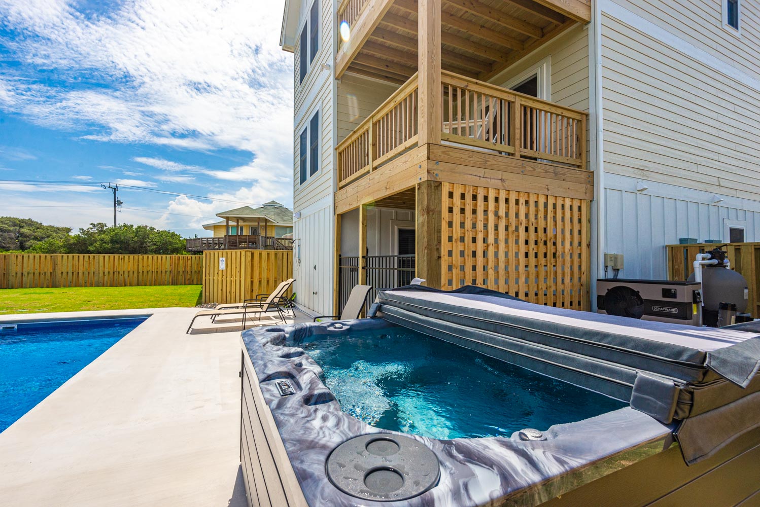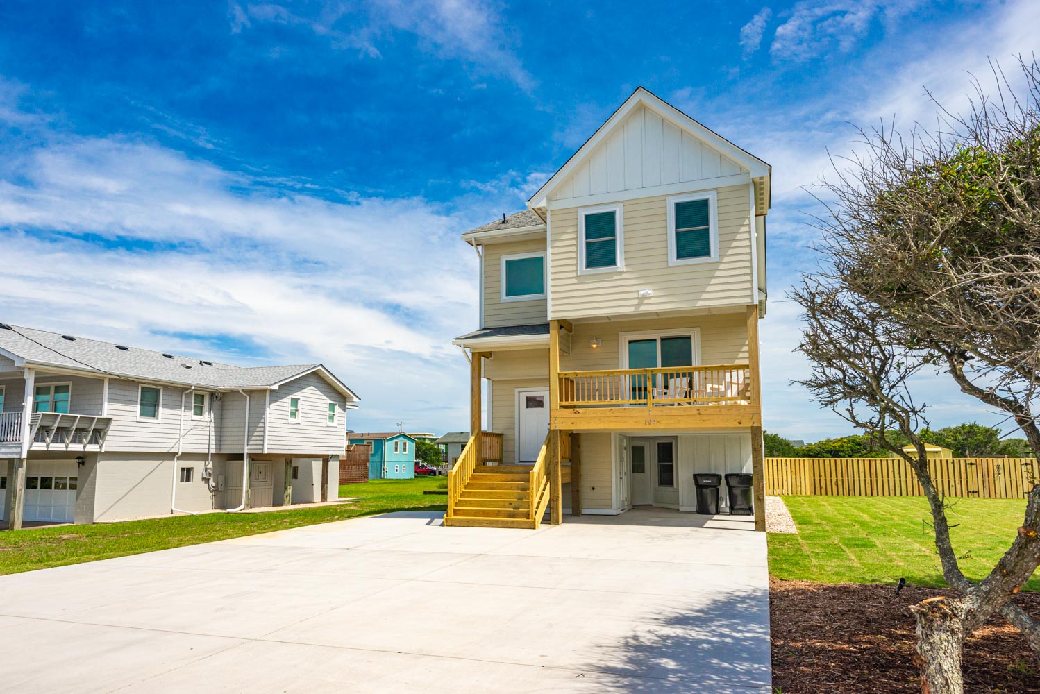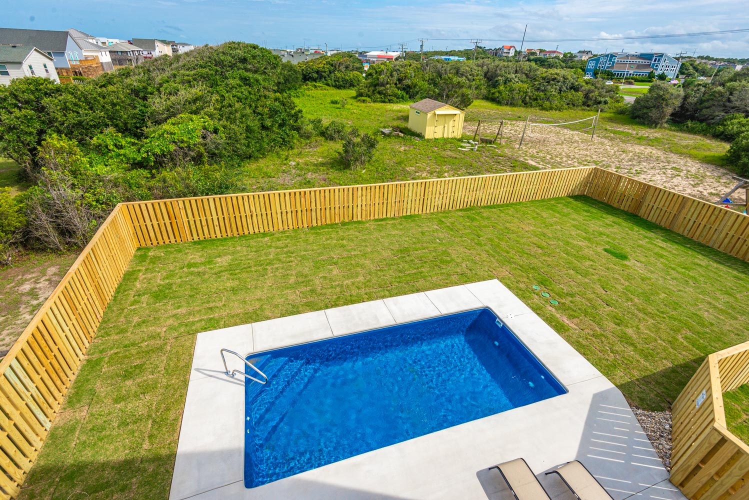 A Summer Pour is a lovely, Oceanside vacation home that offers a wide range of amenities sure to keep your family entertained! The rear yard is completely fenced and landscaped, ideal for spending time outdoors! There are three living areas that provide ample space for everyone to spread out and relax. The location in Kitty Hawk is a quiet and peaceful destination, with many local restaurants, shopping and of course splendid beaches where you can fish, surf, or just relax. The Starfish Lane beach access is a short 450 yards walk to a pedestrian dune crossover, and the Lillian St. beach access is located to the south with parking, showers, and wooden ramp crossover.