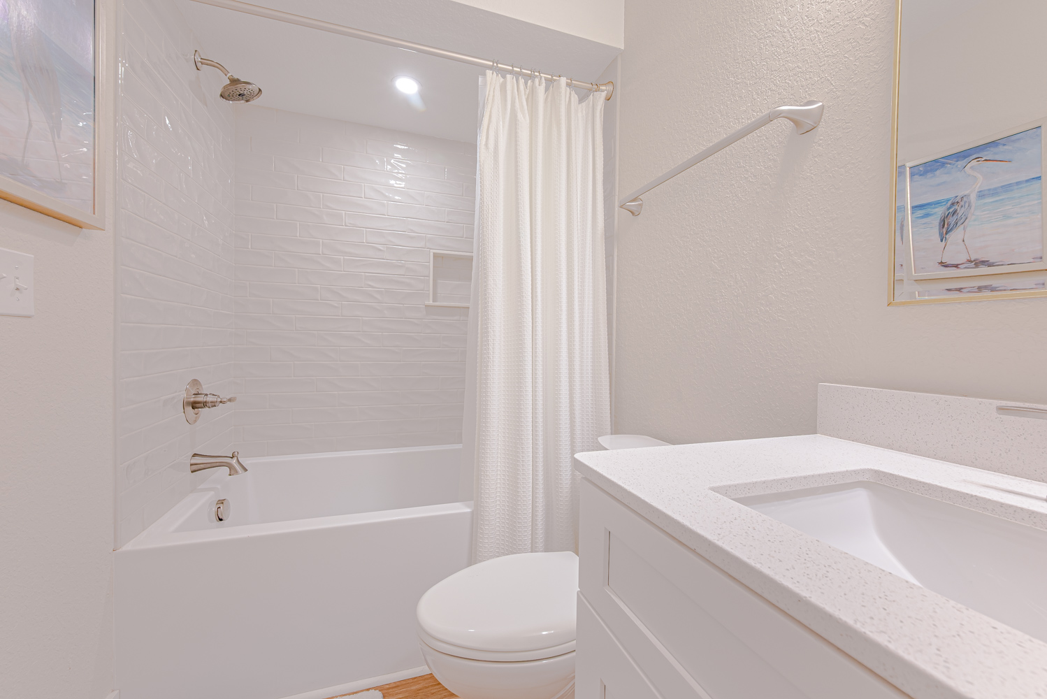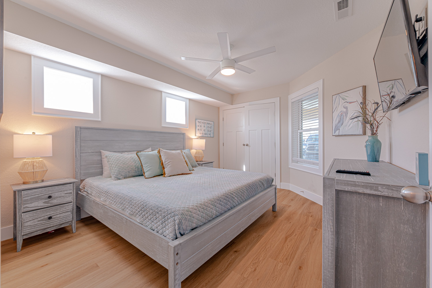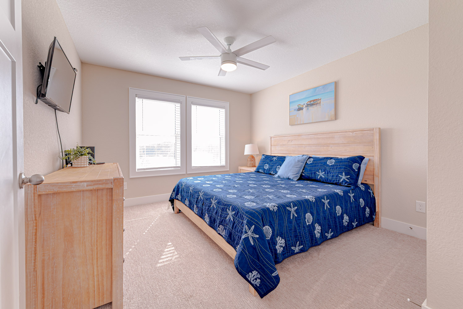 Ground Level: Parking for 4 Cars, Covered Entry, 2 Bedrooms (1 w/King, TV, Ceiling Fan, 1 w/Built-In Bunk Set, TV), Full Shared Hall Bath w/Tiled Walk-In Shower, Rec. Room w/Large Flat Screen TV, Shuffleboard, Video Arcade Machine, Wet Bar, Full Size Refrigerator, Access to Covered Patio Area w/Sitting Area, Gas Grill, Outside Shower, Large Fenced Yard w/Private Heated Swimming Pool (Can be Heated for $300.00 Per Week, Plus Tax, Please Bear in Mind That Pool Temperature is Subject to Outside Temperatures and Conditions) and Hot Tub.