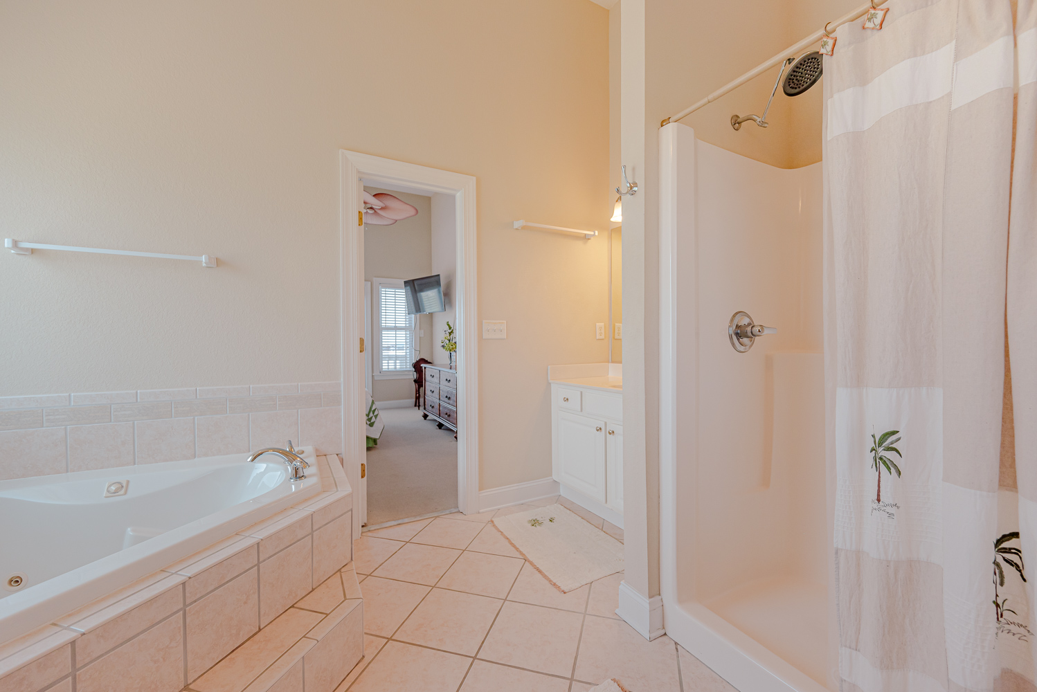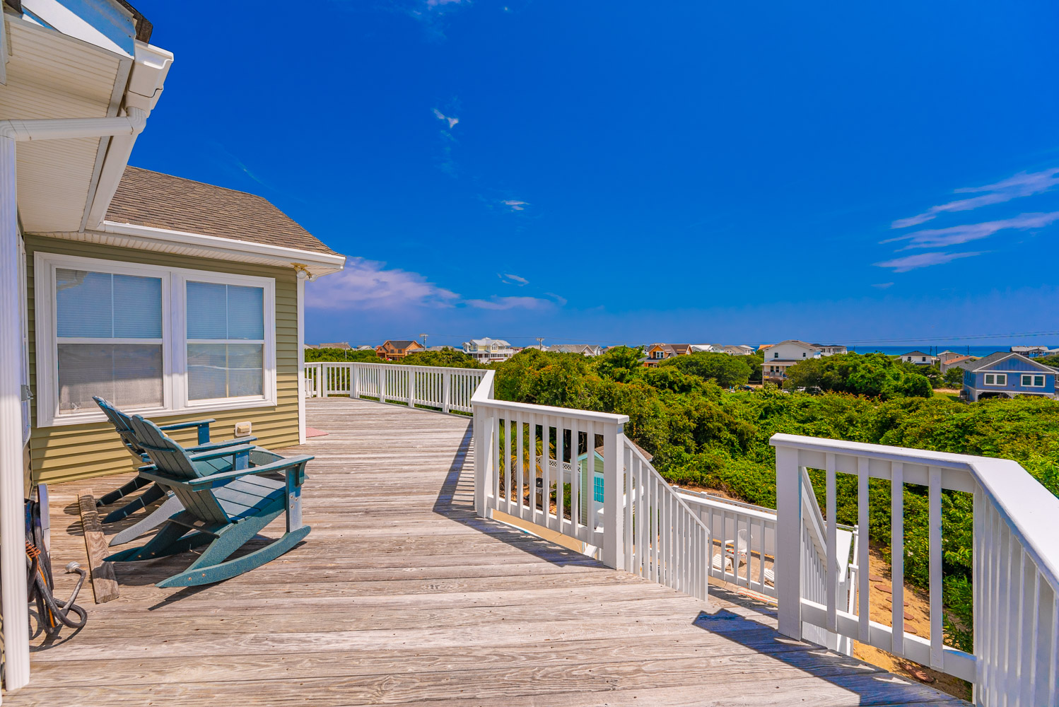 Top Level: Nicely Decorated Living, TV, DVD, Blu-Ray, Stereo, Ocean/Golf Course Views, Kitchen Area w/Bar Seating for Four (4), Access to Screen Porch w/Table/Chairs, Small Seating Cove, Half Bath, Private Suite w/Queen, TV, Full Bath w/Jacuzzi, Separate Walk-In Shower, and Sun Deck w/Ocean Views.