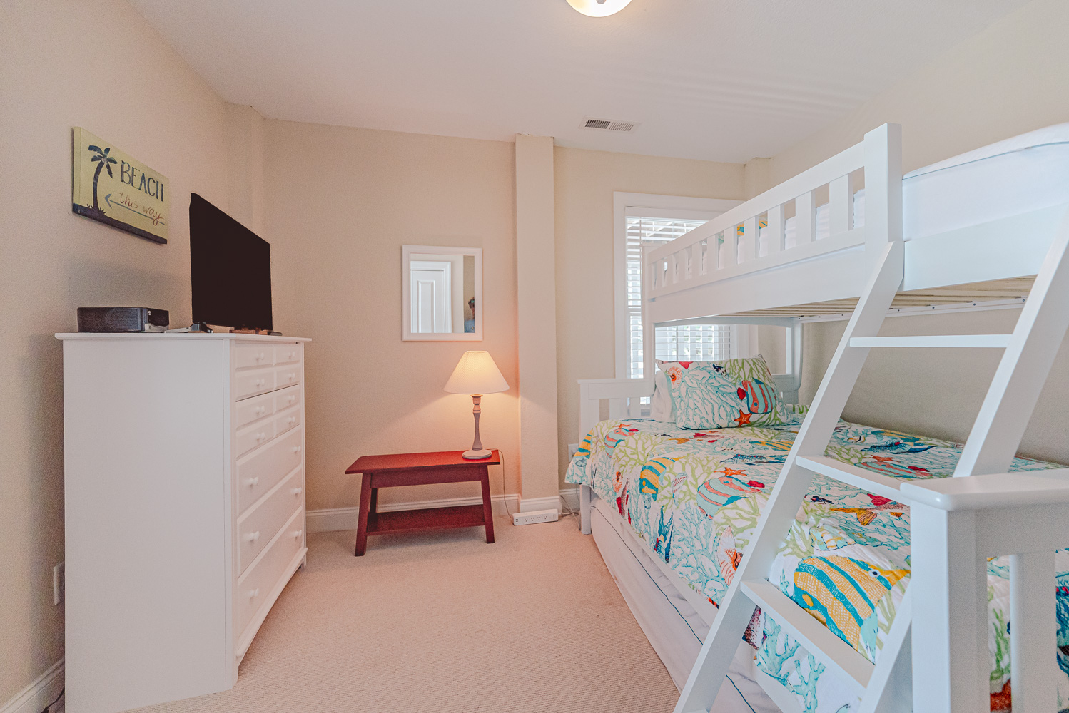Mid Level: 3 Bedrooms (Private Suite w/King, TV, Full Bath; 1 w/Queen, TV; 1 w/2 Singles, TV), Hall Full Bath, Den, TV, 2 Covered Decks, and Nice Golf Course Views.