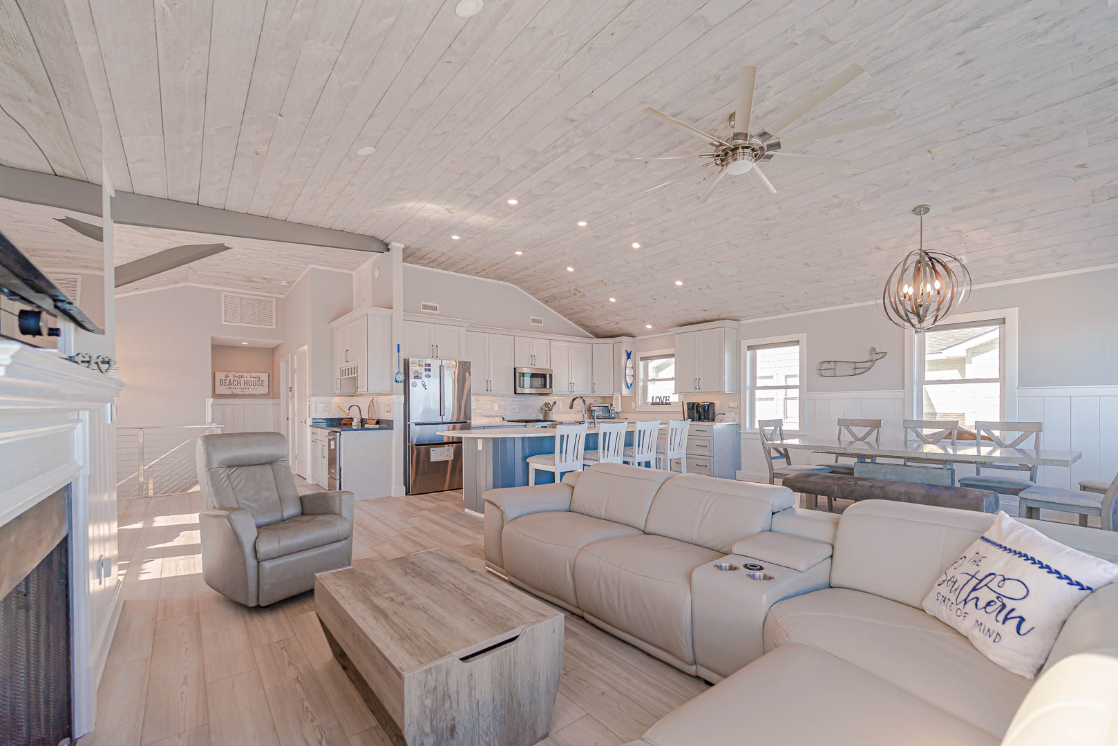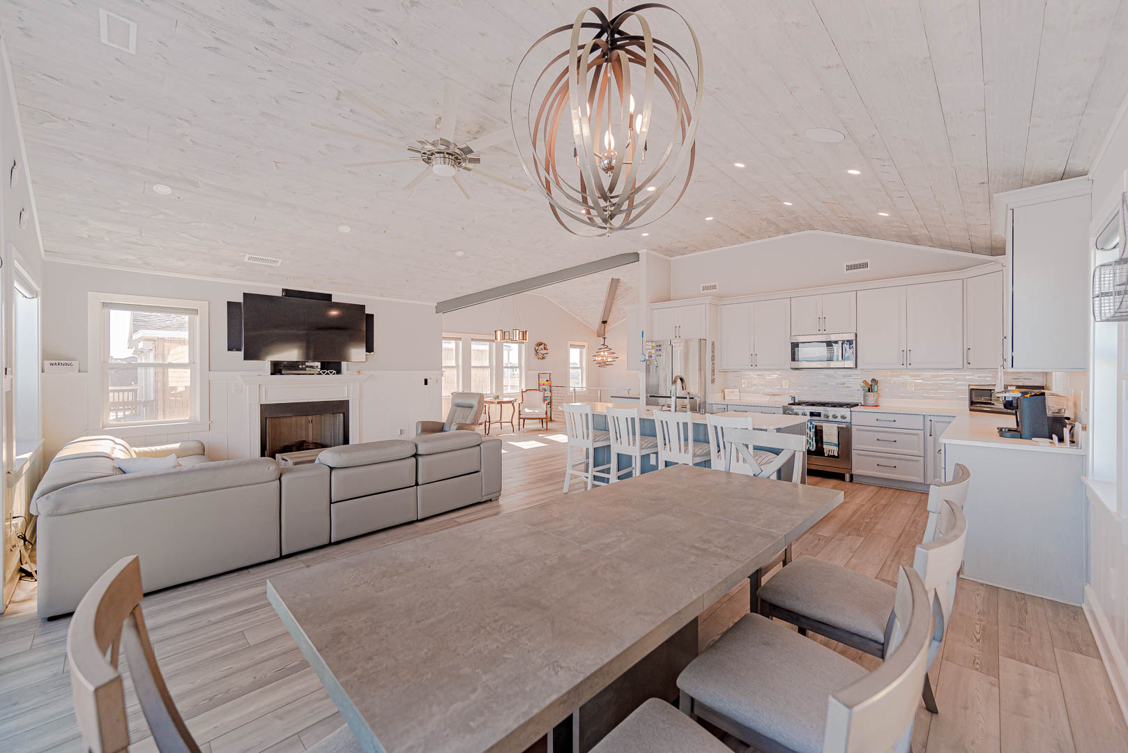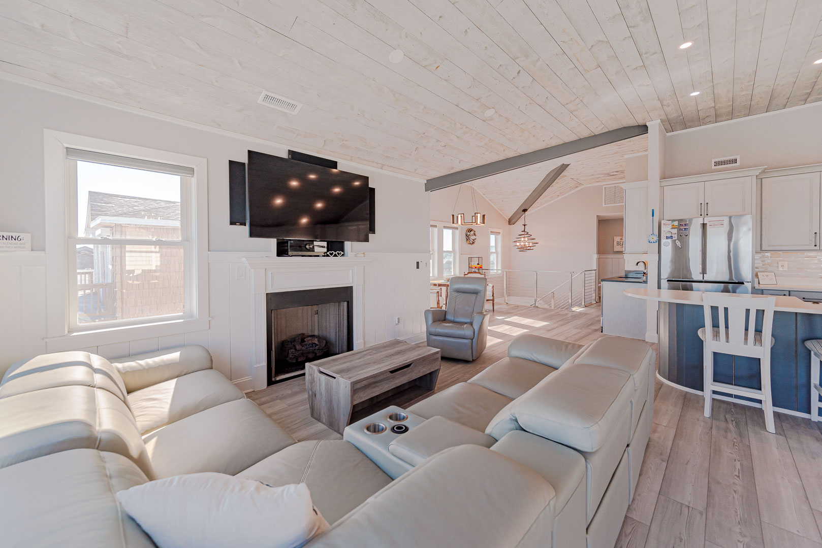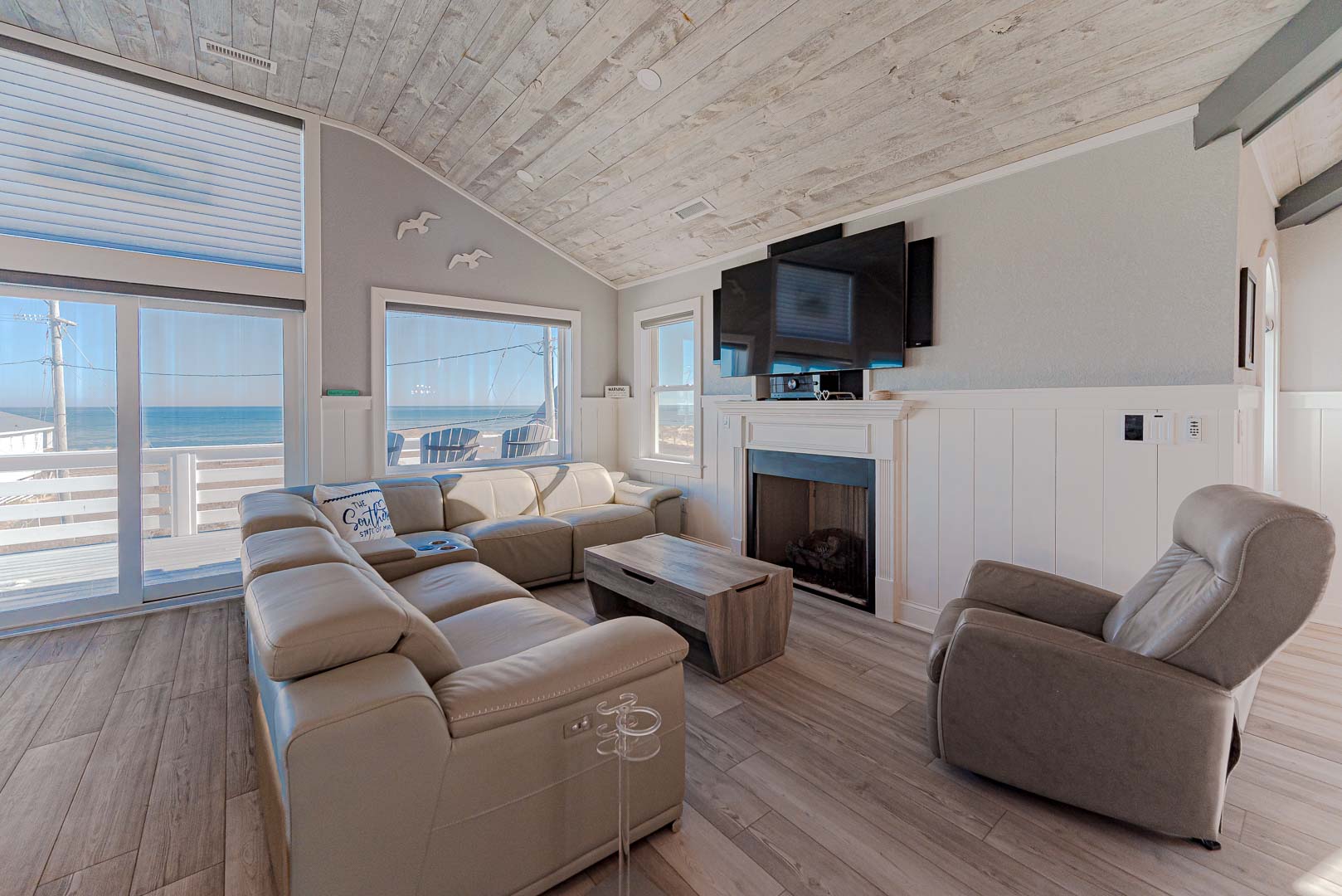 Top Level: Beautifully Decorated, Open Living Area, Large TV, Grand Ocean Views, Cathedral Ceiling, Gas Fireplace, Electric Window Shades; Fully Equipped Kitchen, Stainless Steel Appliances, Gas Range, Island Bar w/Seating for Four (4); Lounge Area w/Wet Bar, Free Standing Ice Maker; Dining Area w/Seating for Ten (10); Half Bath; Private Suite w/King, TV, Walk-In Closet, Full Bath, Heated Tile Floor, Walk-In Shower (No Lip); and Sun Deck w/Deck Furniture, Magnificent Ocean Views.