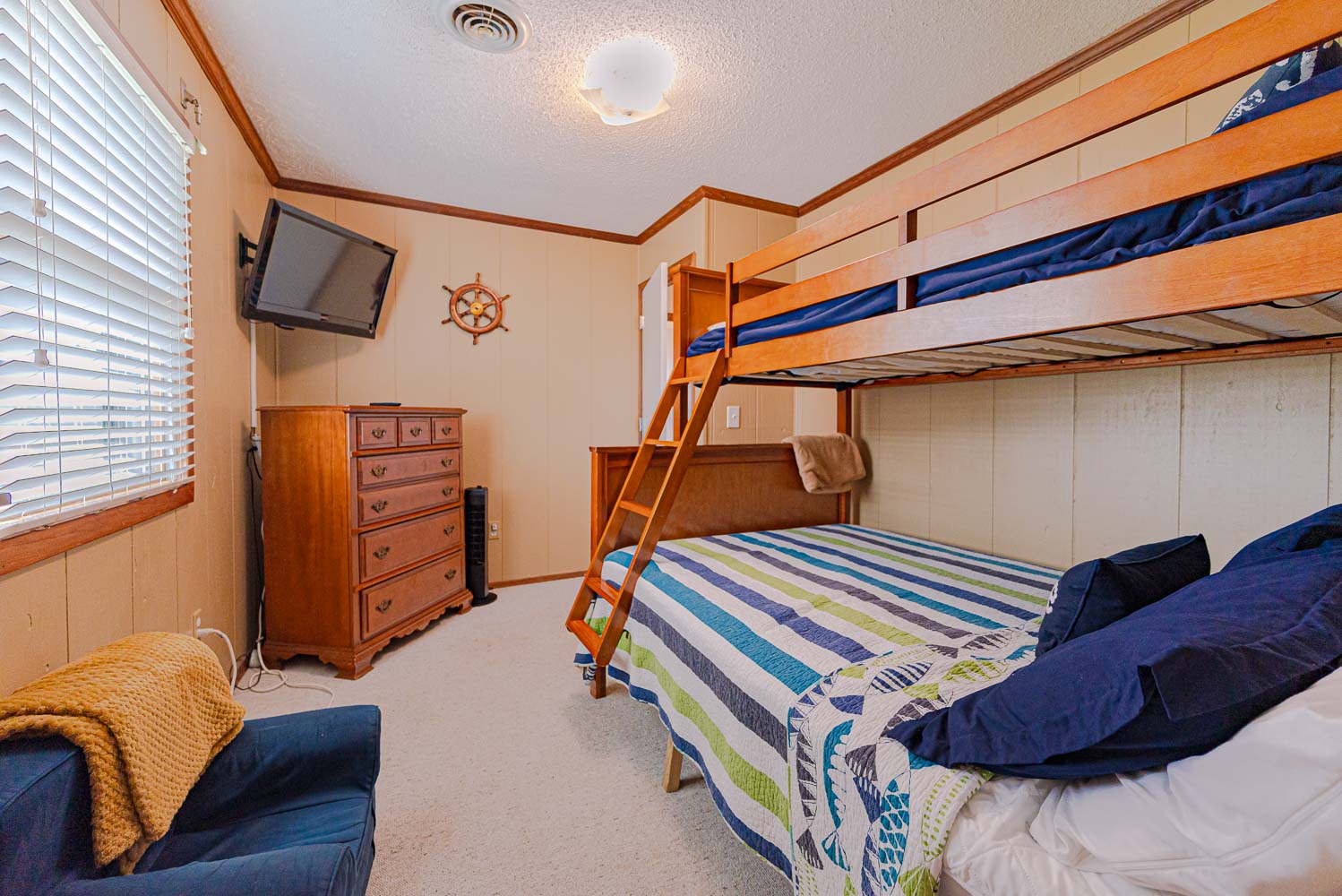 Main Level: Living/Dining/Kitchen Area, TV, DVD, 4 Bedrooms (1 Private Suite w/King & TV, Full Bath, 2 w/Queens & TV, 1 w/Duo Bunk & TV), Full Hall Bath, & Access to Wrap Around Covered Deck w/Deck Furniture.