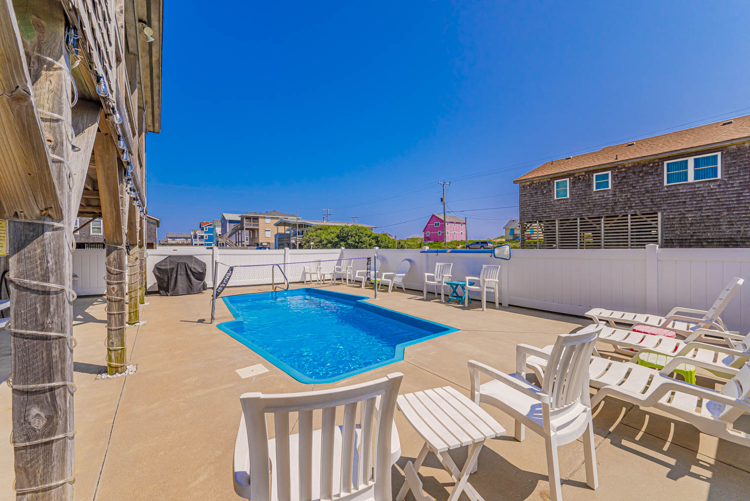 Ground Level: Parking for 4 Cars, Storage Area, Washer/Dryer, Half Bath, Steps to Main Level Covered Entry, & Access to Private Swimming Pool - Open Seasonally, w/Pool Deck & Furniture.