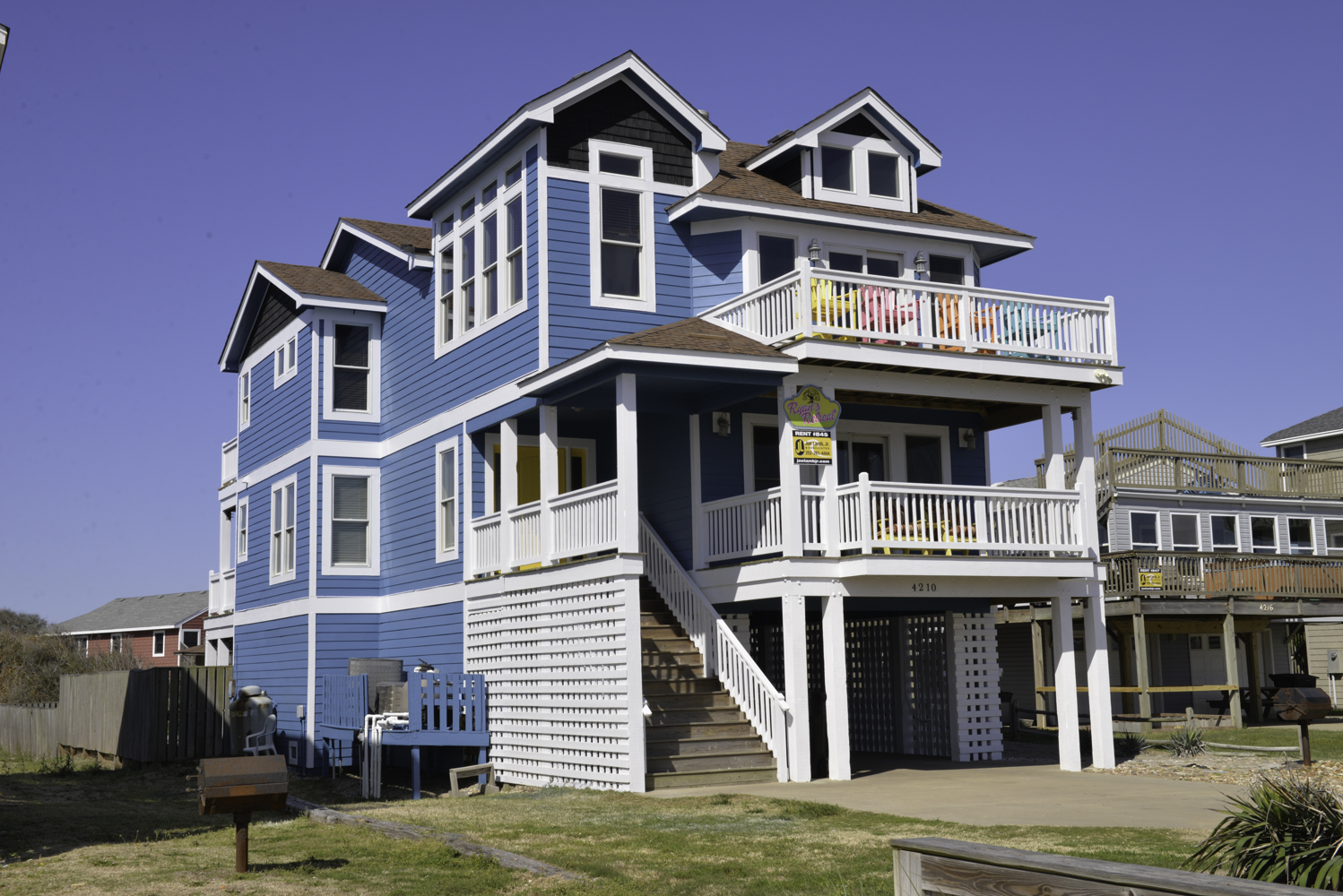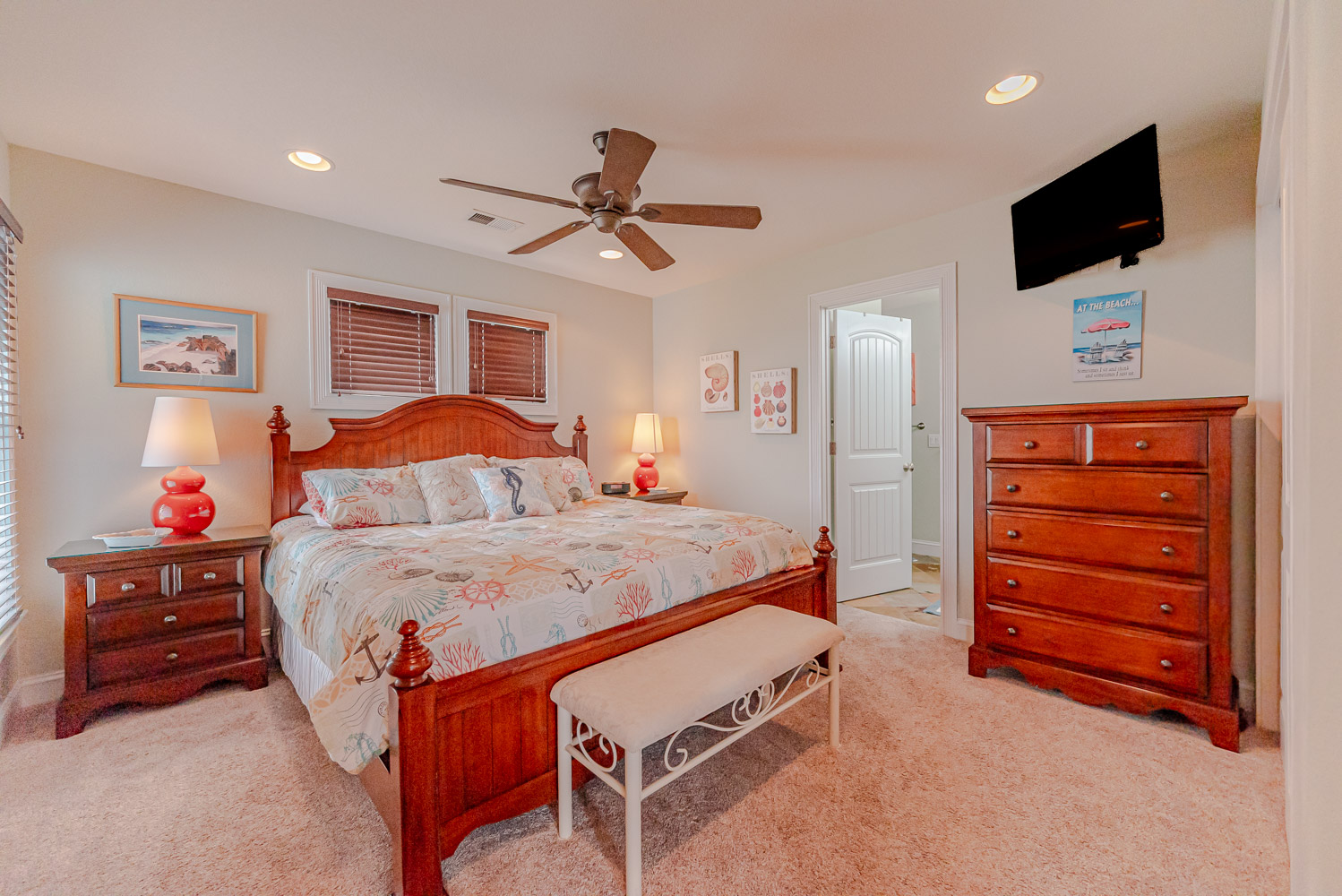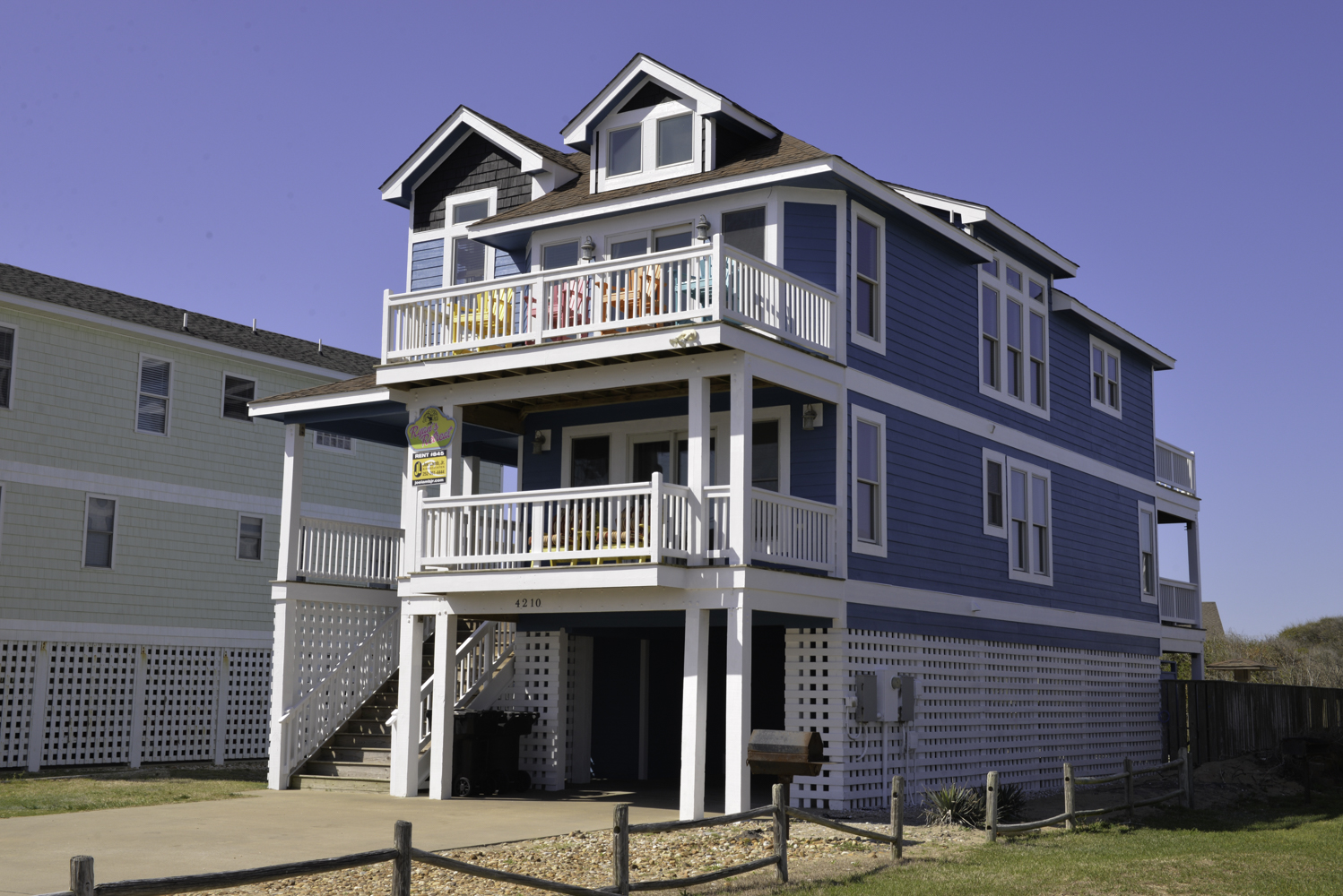 Mid Level: 3 Bedrooms (Private Suite w/King, TV, Full Bath w/Walk-In Shower, Access to Covered Deck w/Ocean Views and Deck Furniture; 1 w/Queen, TV; 1 w/Duo Bunk w/Trundle, TV), Full Hall Bath w/Tub/Shower, Den w/Theater Seating, Large Flat Panel TV, Back Covered Deck w/Hot Tub Overlooking Pool Area, and Ocean Facing Covered Deck w/Ocean Views and Deck Furniture.