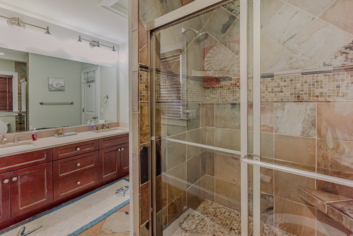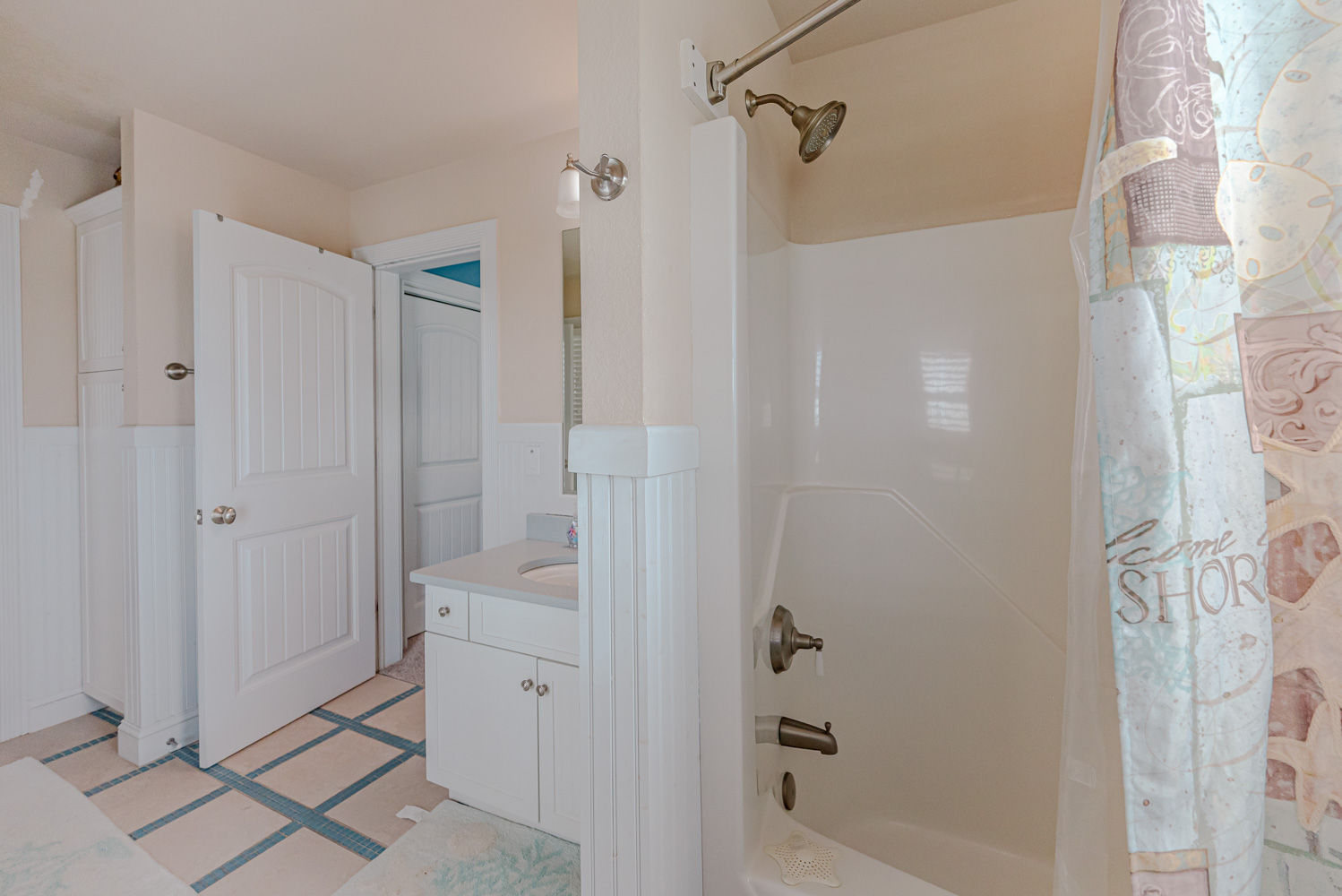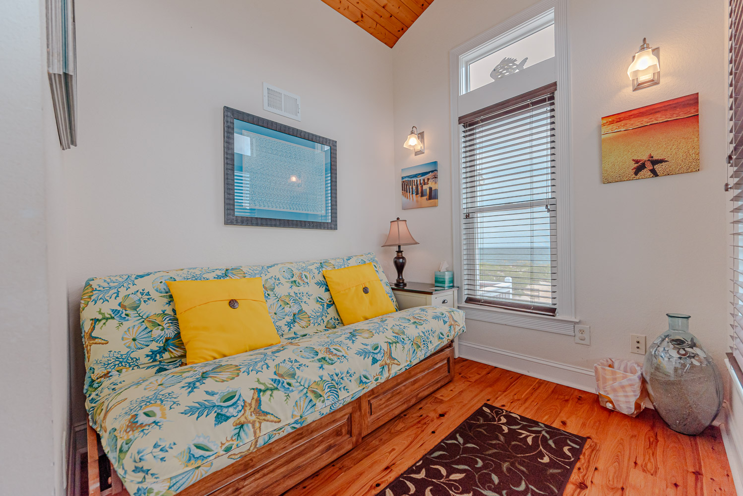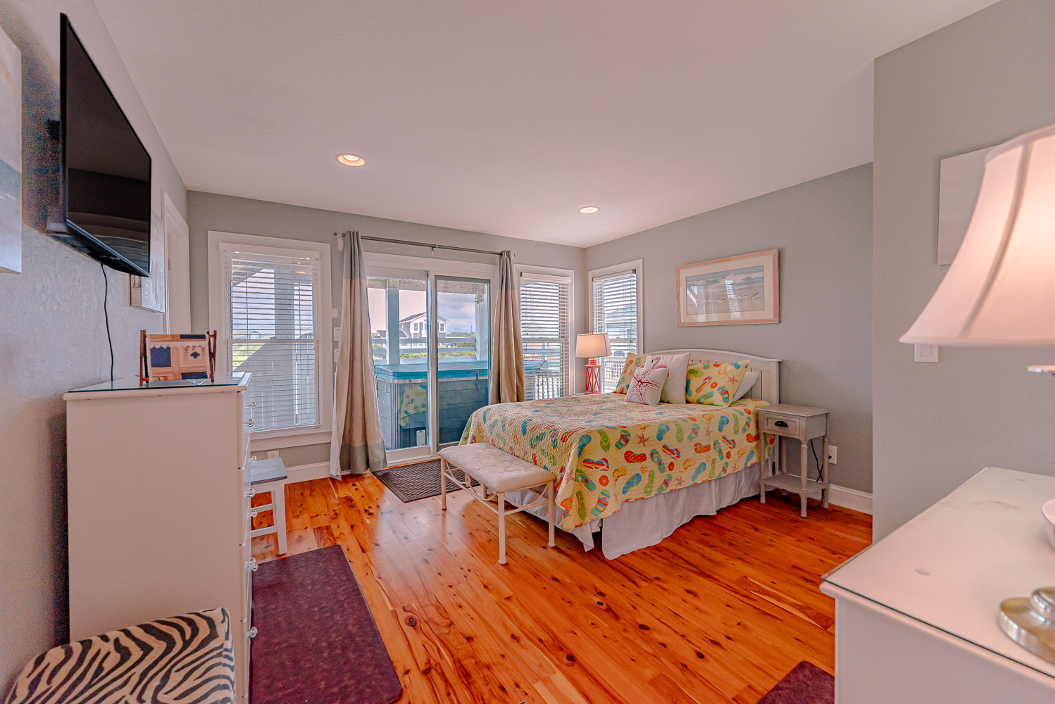 Mid Level: 3 Bedrooms (Private Suite w/King, TV, Full Bath w/Walk-In Shower, Access to Covered Deck w/Ocean Views and Deck Furniture; 1 w/Queen, TV; 1 w/Duo Bunk w/Trundle, TV), Full Hall Bath w/Tub/Shower, Den w/Theater Seating, Large Flat Panel TV, Back Covered Deck w/Hot Tub Overlooking Pool Area, and Ocean Facing Covered Deck w/Ocean Views and Deck Furniture.