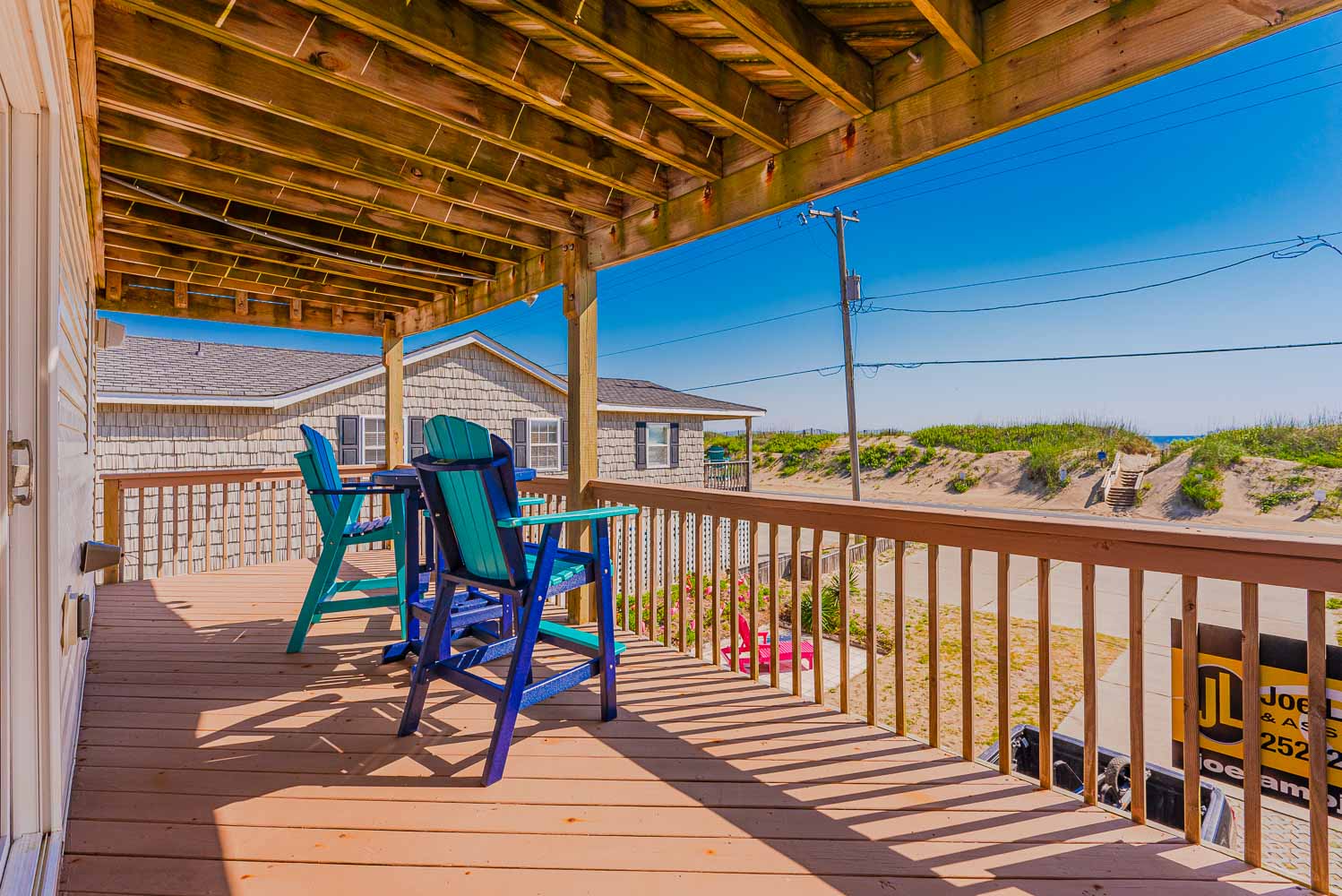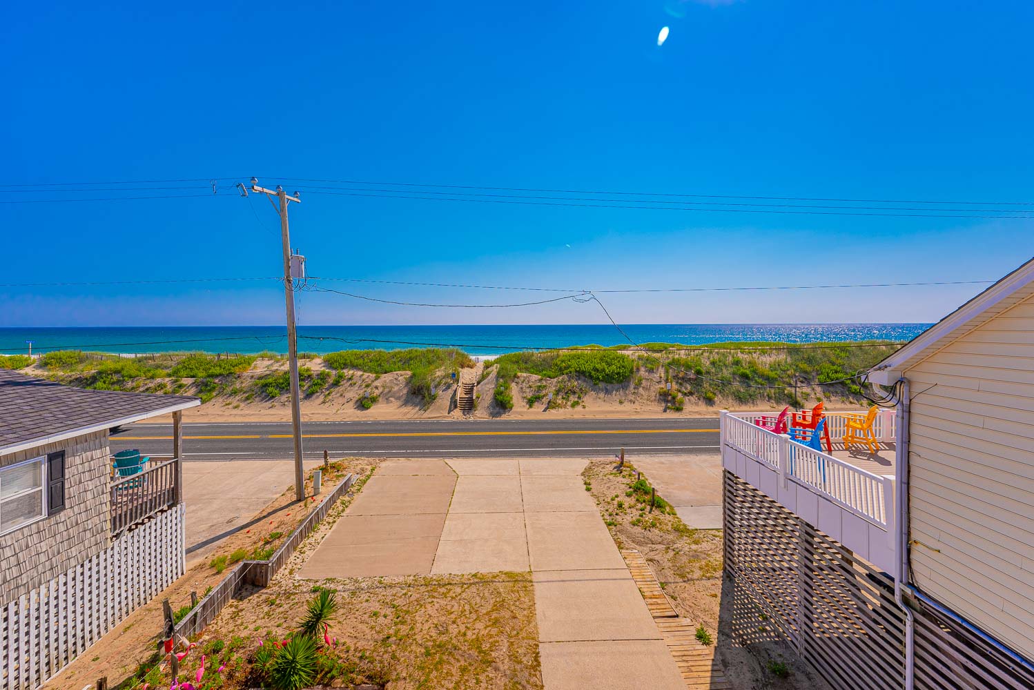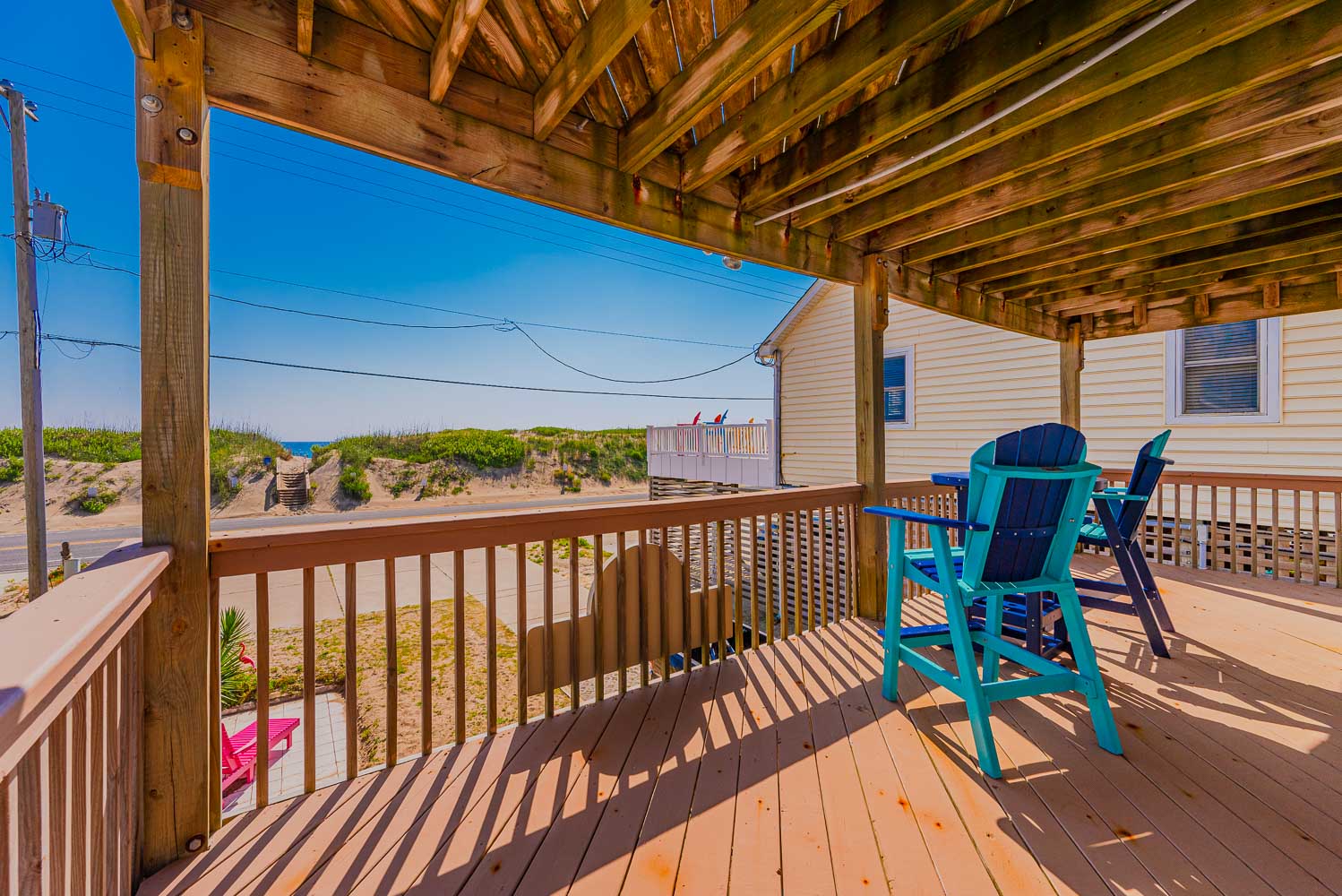 When you come to the beach to vacation at the "Laundry Mat" you're at the beach, w/unobstructed Ocean Views & Direct Beach Access only 70 feet away. No packing the car to find your access, just walk across the Beach Road & you are there! Enjoy the OBX Beach Life at this modern, fresh, & meticulously maintained Semi-Oceanfront home. You will love the endless, unobstructed Ocean Views that rival most any Oceanfront home. Enjoy a peaceful stroll along the Kitty Hawk beach, lounge in the sand with a good book or frolic in the surf with friends and family, this home has everything you will need for a memorable stay. After a day on the beach, relax in the Hot Tub and soothe your cares away. Beautifully decorated & such a cool location, your family is going to be thrilled.